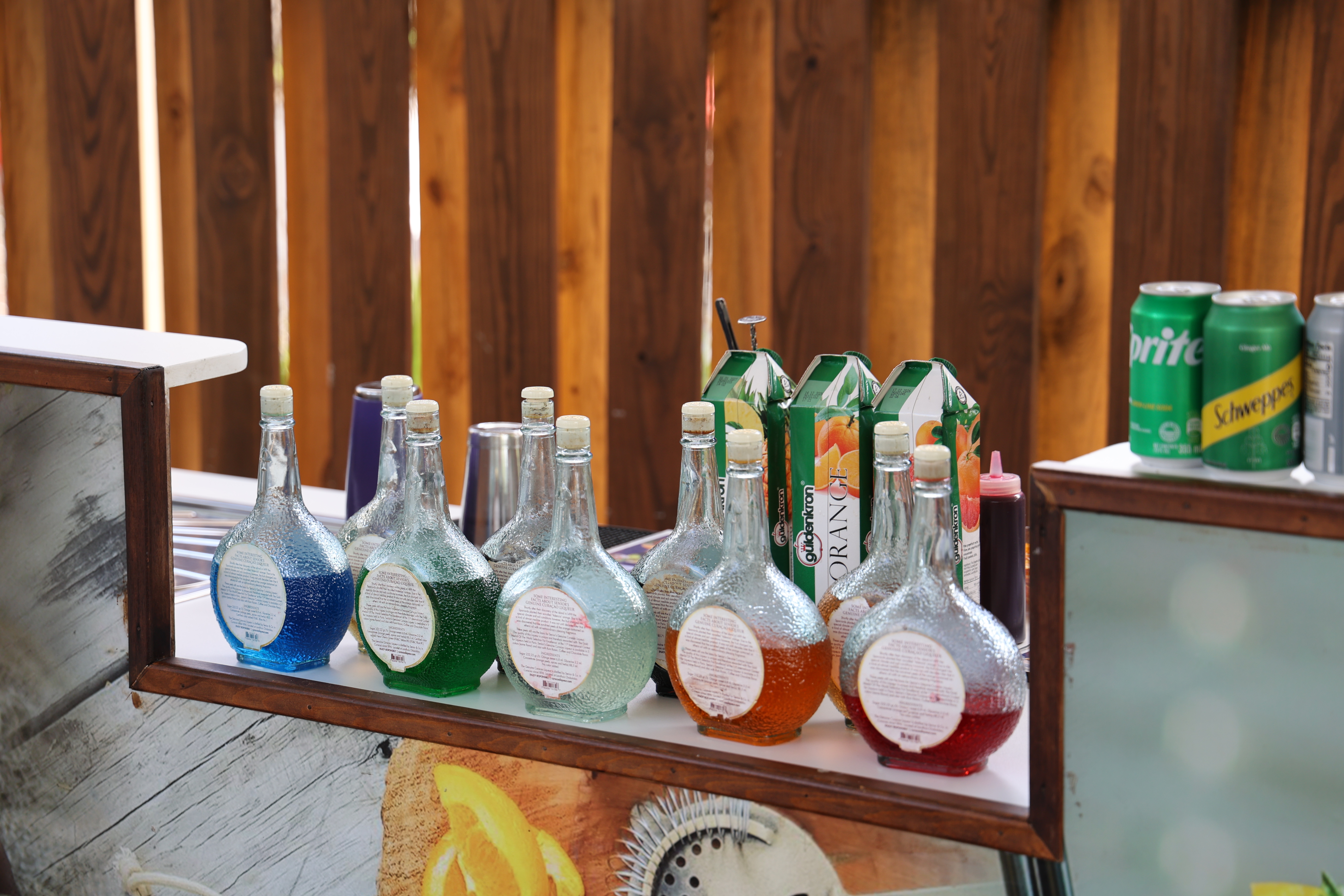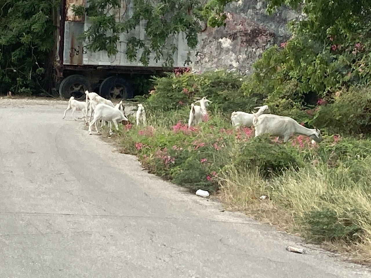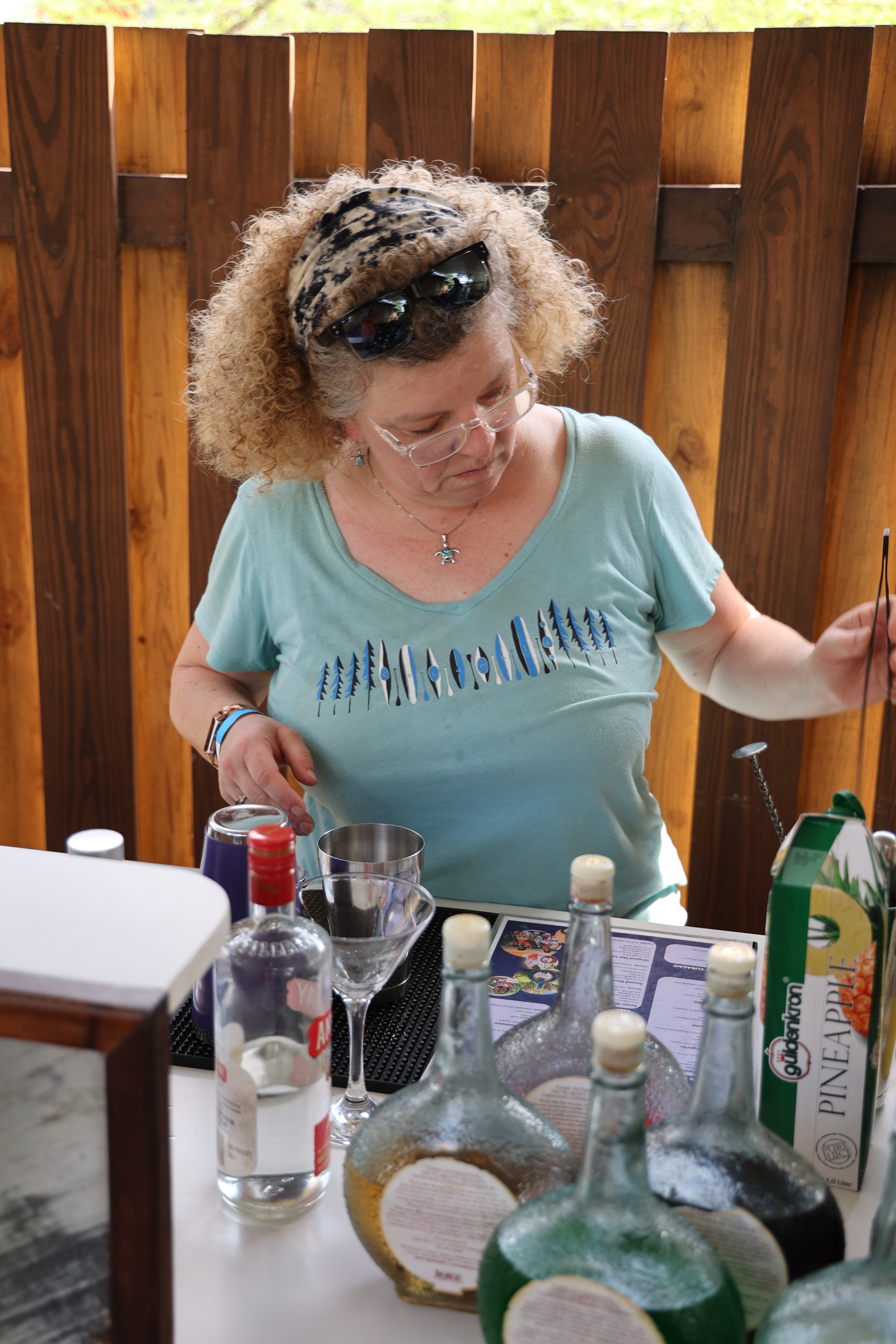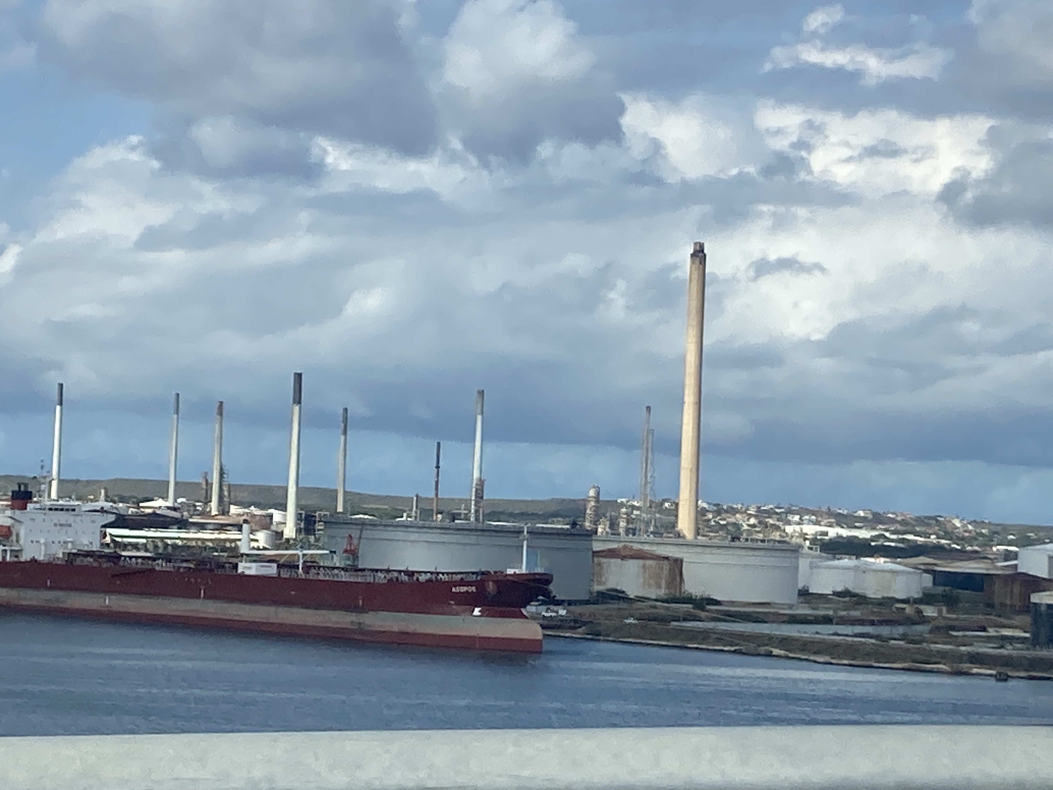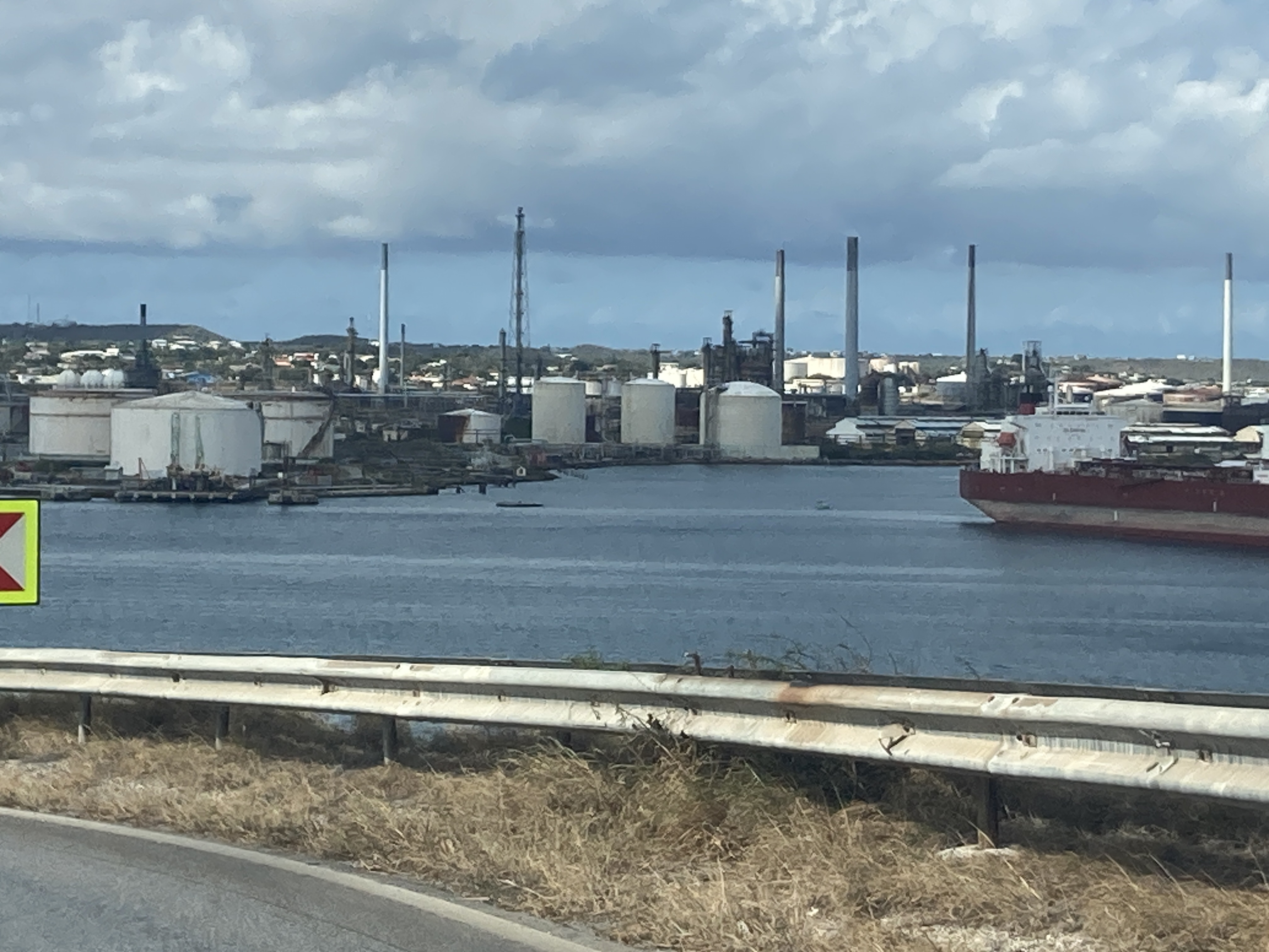 We had a 2 pm reservation at the Chobolobo Distillery, where they make the Blue Curacao liquor. We got there early, checked in, had our courtesy beverage and looked around a bit. Then we had the tour - led by Eli. He was excellent, and explained the whole process and history. The liquor is made from dried Lahara orange peels, and spices from Asia. The bottle itself is manufactured in Spain from recycled glass, made to resemble an orange in both shape and texture. The cork is made in Portugal and the seal is made in the US. The bottle labels are still stuck on by hand. But the liquor is still made in Curacao. The are multiple colors that are the same flavor, but colored differently to make different drinks. There are also additional flavors, including Chocolate, Coffee, Rum-Raisin, and Tamarind. We got to sample them all while we were there. Greta liked the tamarind and the rum-raisin the best and Mike liked the chocolate and coffee flavors. As part of our tour package, we also were presented with many different drink recipes using the Curacao liquors, and then were able to make and drink two. Our tour guide for this part was Imaisha and she was also great. She demonstrated all the tools we may need for making the drinks, how to use a mixing cup, and invited us all up to try out whatever recipes we wanted. Mike made a tamarind mule and a cucumber delight. Greta made the Red Lady Romance and the Tamarind Sunset. It was a LOT of fun! We left with a bottle of the coffee flavor liqour to have in our room.