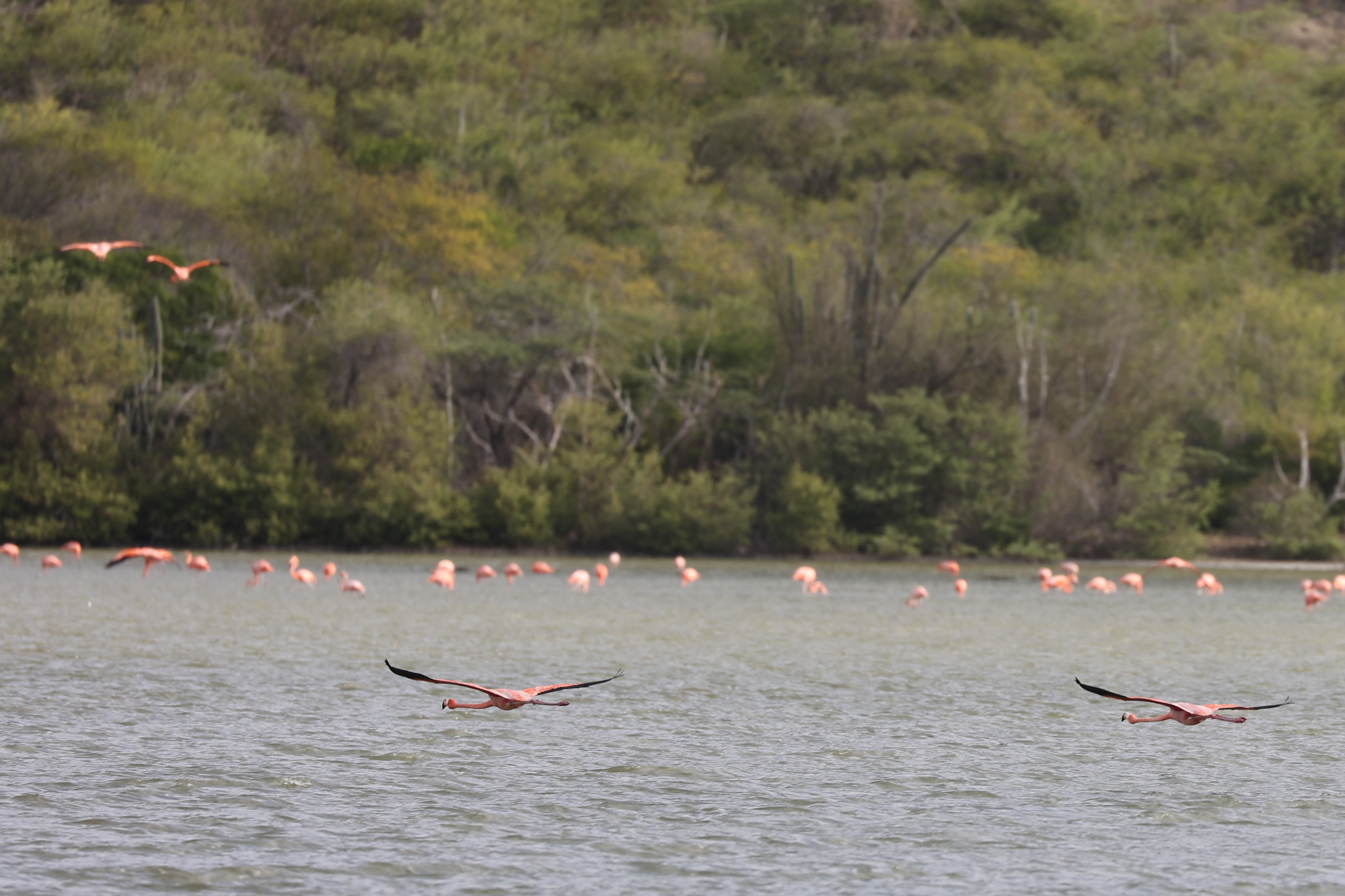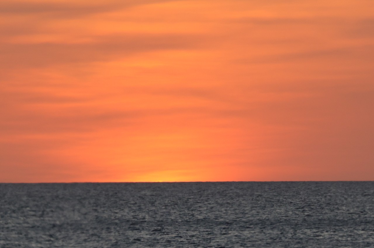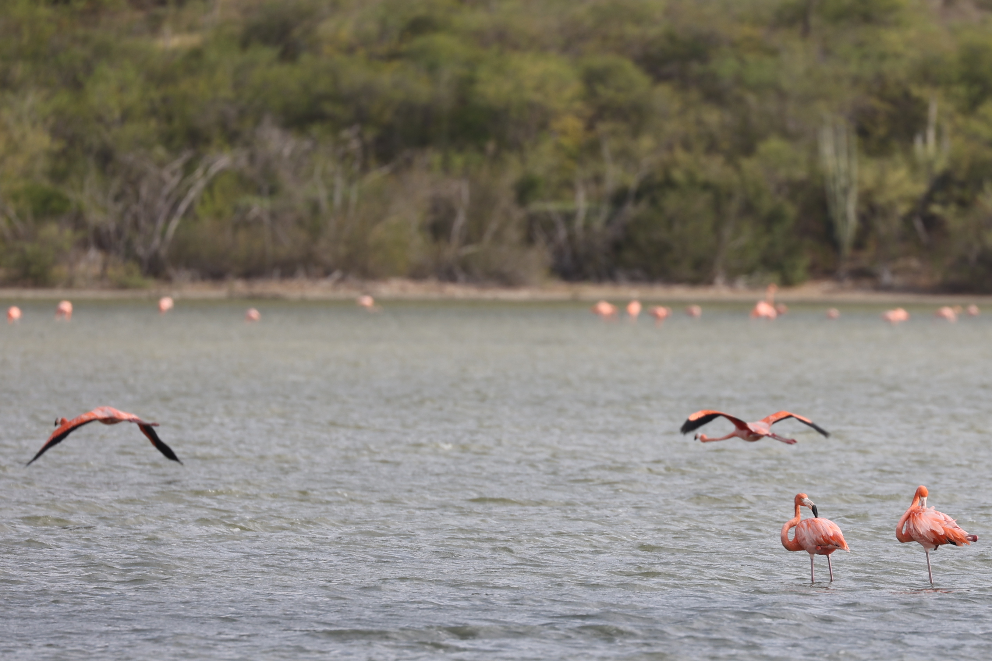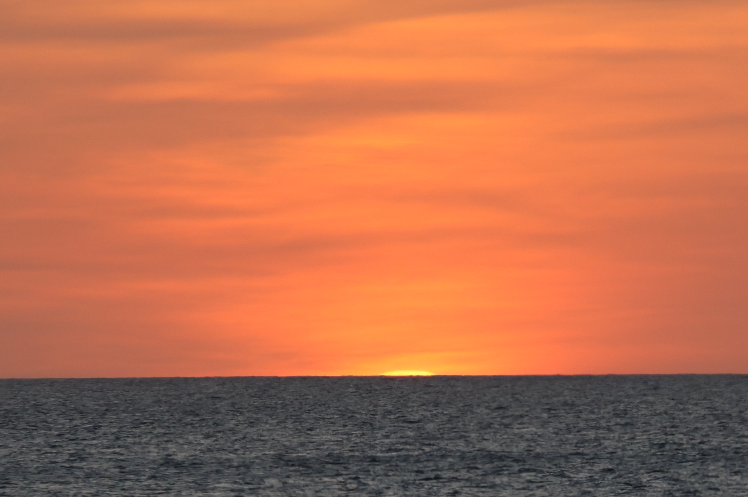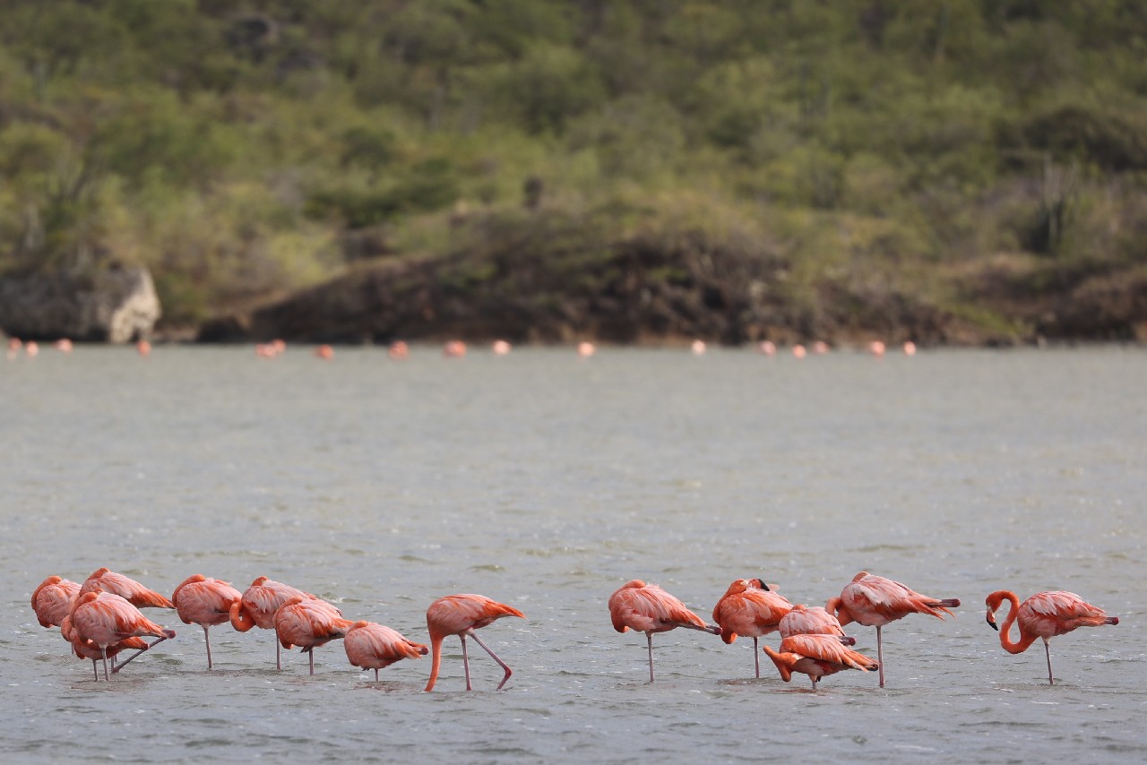 From there, we stopped back at the hotel for a quick moment and then headed back out. We drove up further up the western shoreline, and had to take a picture of the city sign for Sint Michiel - complete with a dog who felt it was an excellent place to wait. We also were able to stop and see a large water inlet where flamingos can be found. And we found them! Most were further off shore, but some were close enough for Mike to get excellent pictures with the zoom lens. We then drove to the shoreline to see the sunset, but that was a couple hours off yet. So we navigated to a place further up the shore (with Google maps that were downloaded offline, we weren't using phone coverage). At one point, we commmented how the road looked brand new or at least newly paved. Then after by-passing the turn off for a gated community, we realized we were driving "off the map". Apparently the road was so new, it was not yet on Google. We turned around and drove toward the gated community - that happened to be where the sea-front restaraunt was located. We had to stop at a guard shack but after explaining we were headed for the restaurant, they waved us through. There was parking and pictures of condos for sale, and houses you could build and buy. They were NOT cheap to say the least! We walked down to the shoreline and looked at the water for a bit. The restaurant there was rather expensive and we weren't quite ready for dinner yet. We walked back up the stairs to Koraal Rooftop Terrace, and had a couple of beers and bitterballen. From there we watched the sunset - perfect.