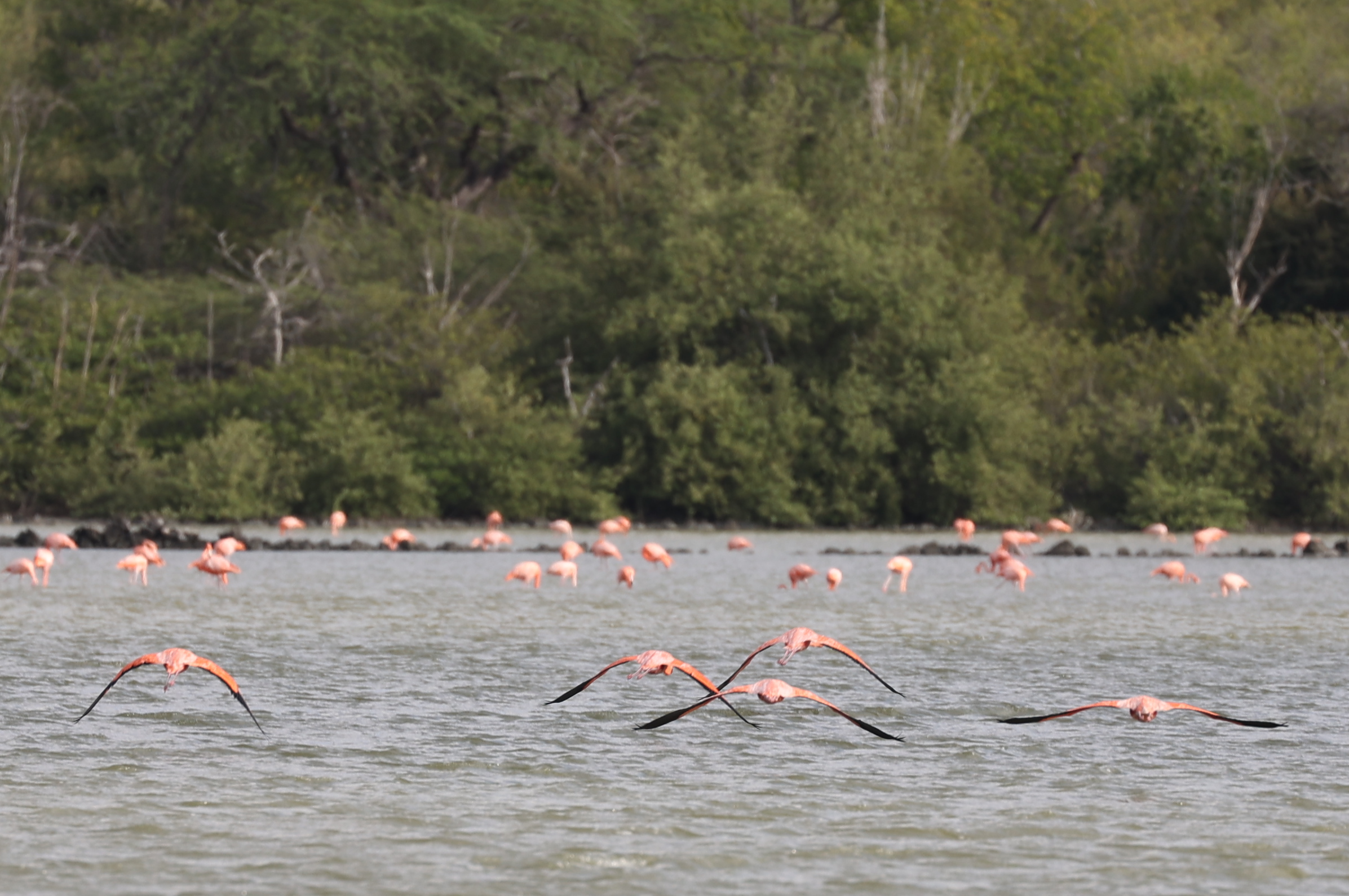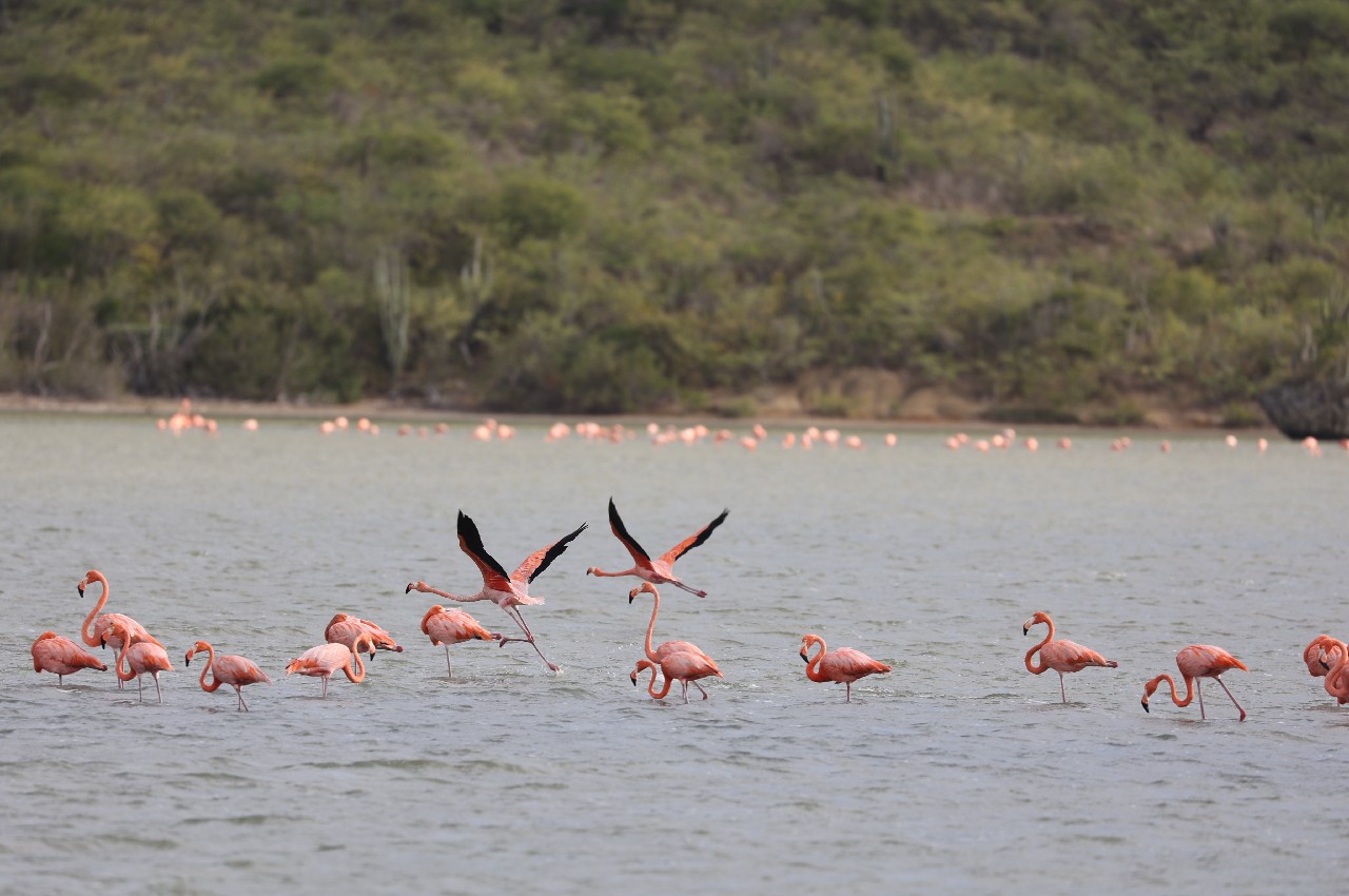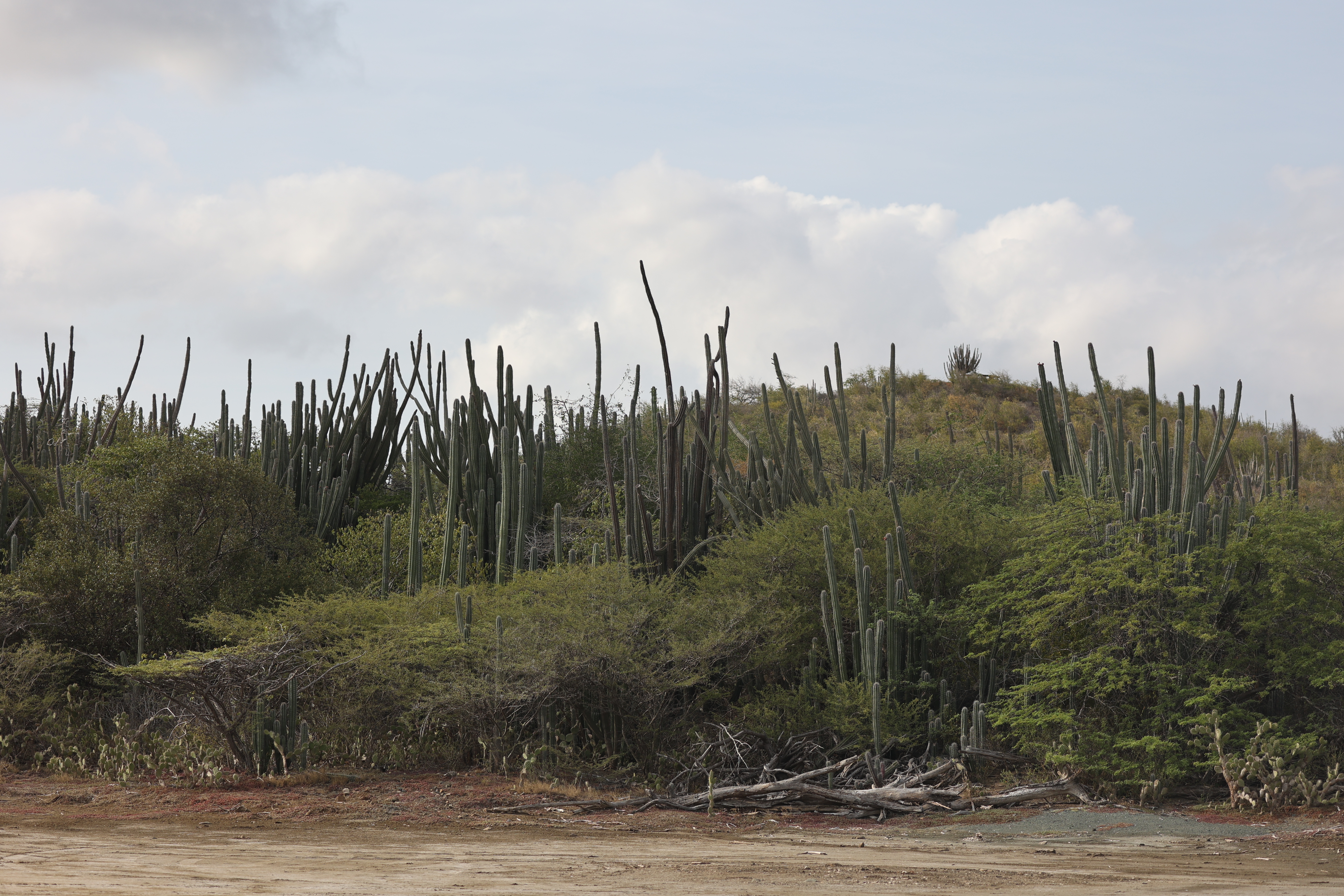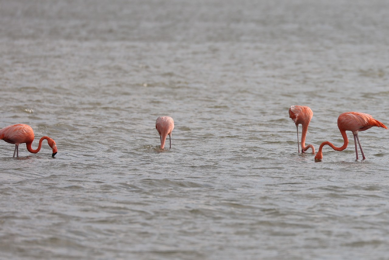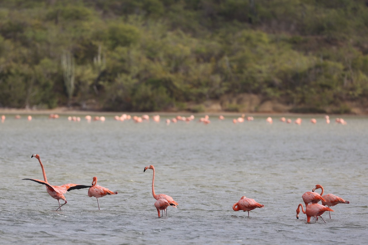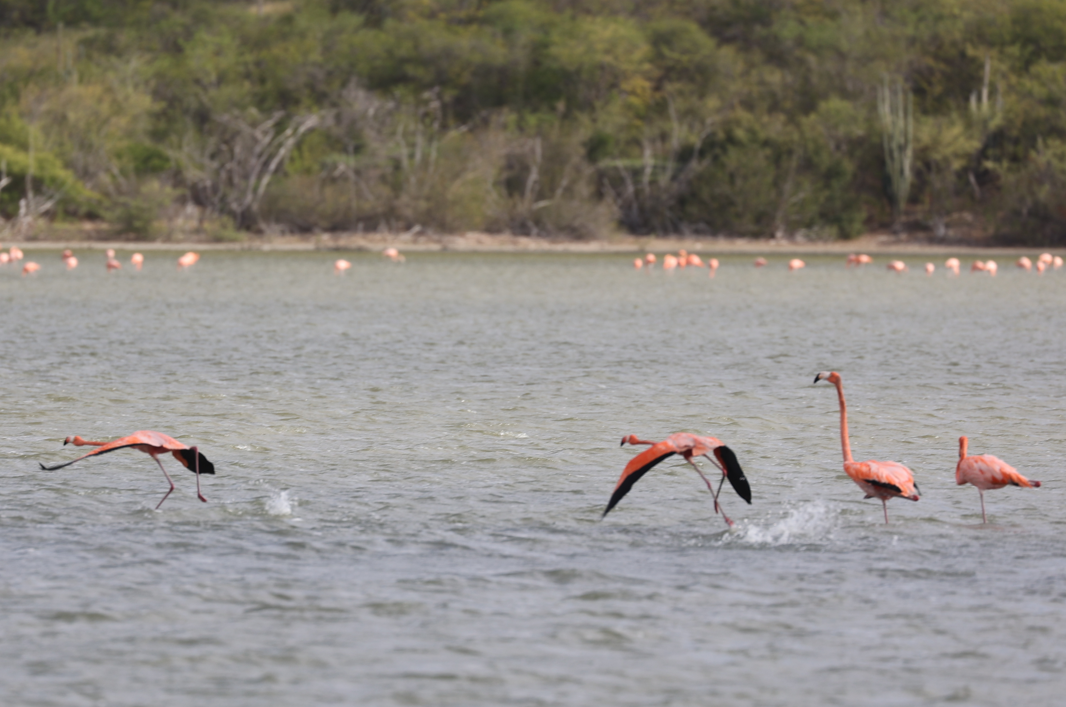 From there, we stopped back at the hotel for a quick moment and then headed back out. We drove up further up the western shoreline, and had to take a picture of the city sign for Sint Michiel - complete with a dog who felt it was an excellent place to wait. We also were able to stop and see a large water inlet where flamingos can be found. And we found them! Most were further off shore, but some were close enough for Mike to get excellent pictures with the zoom lens. We then drove to the shoreline to see the sunset, but that was a couple hours off yet. So we navigated to a place further up the shore (with Google maps that were downloaded offline, we weren't using phone coverage). At one point, we commmented how the road looked brand new or at least newly paved. Then after by-passing the turn off for a gated community, we realized we were driving "off the map". Apparently the road was so new, it was not yet on Google. We turned around and drove toward the gated community - that happened to be where the sea-front restaraunt was located. We had to stop at a guard shack but after explaining we were headed for the restaurant, they waved us through. There was parking and pictures of condos for sale, and houses you could build and buy. They were NOT cheap to say the least! We walked down to the shoreline and looked at the water for a bit. The restaurant there was rather expensive and we weren't quite ready for dinner yet. We walked back up the stairs to Koraal Rooftop Terrace, and had a couple of beers and bitterballen. From there we watched the sunset - perfect.