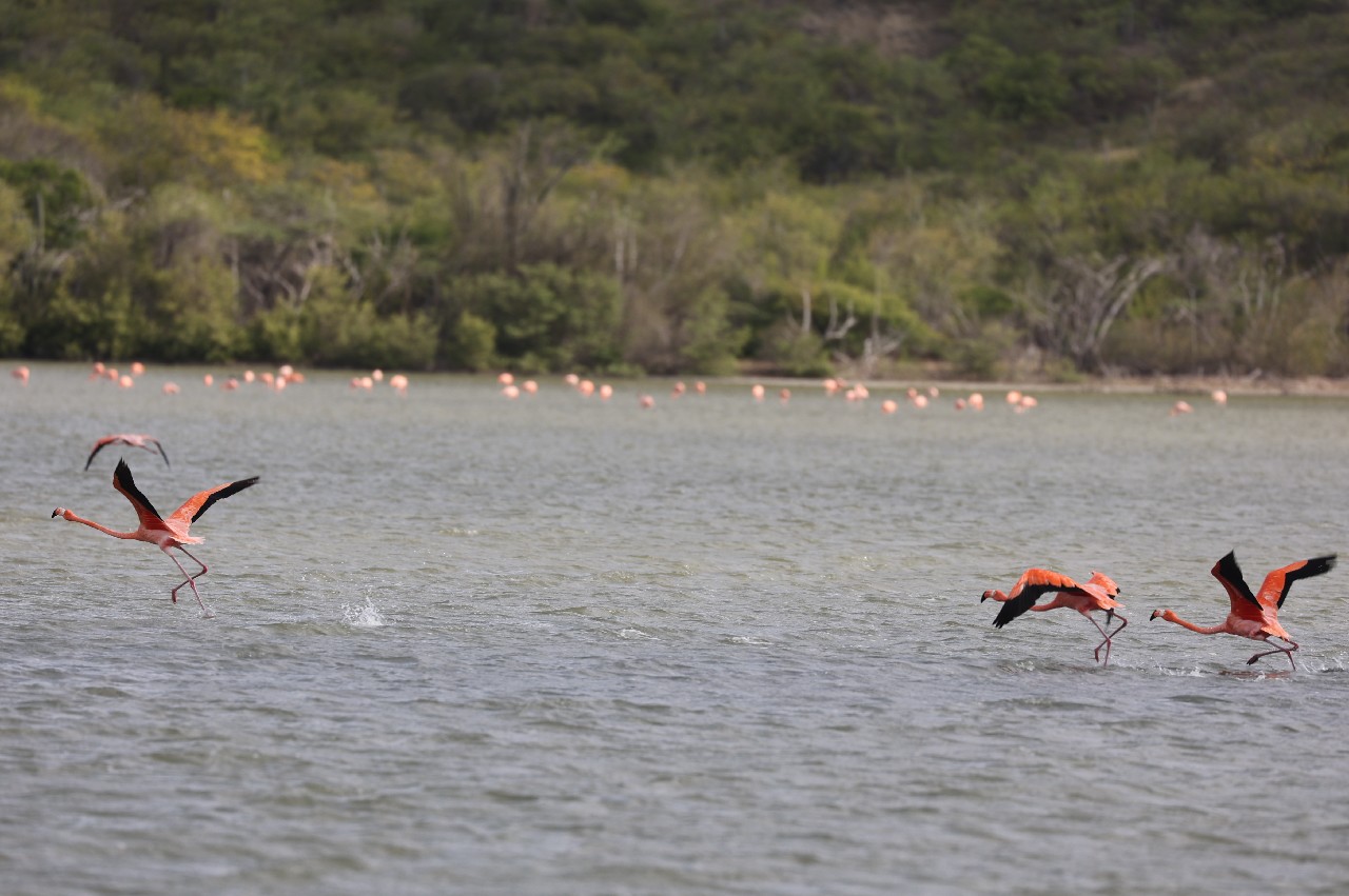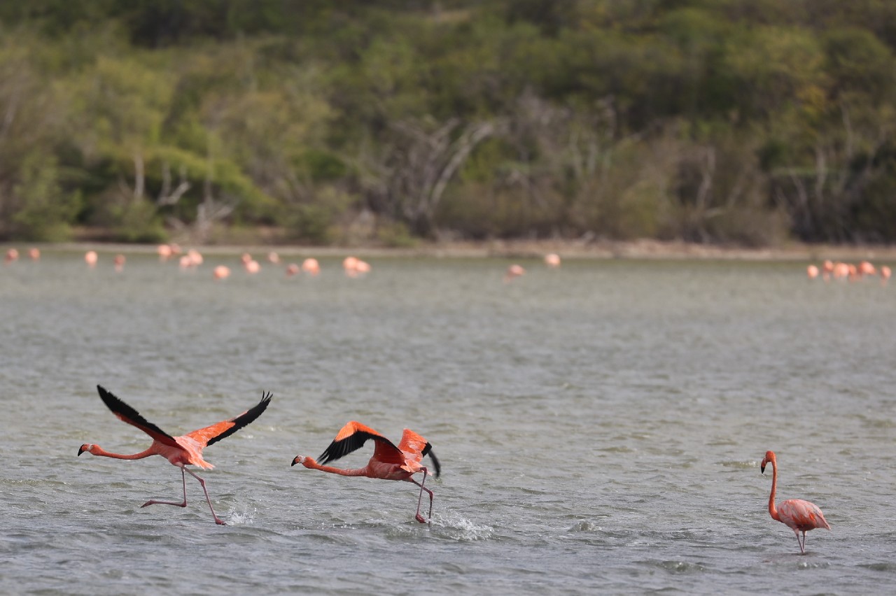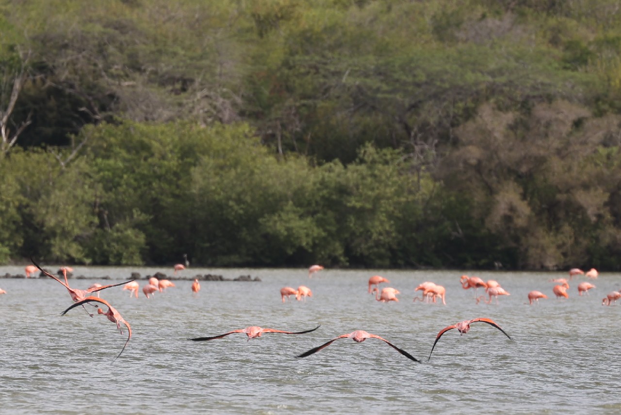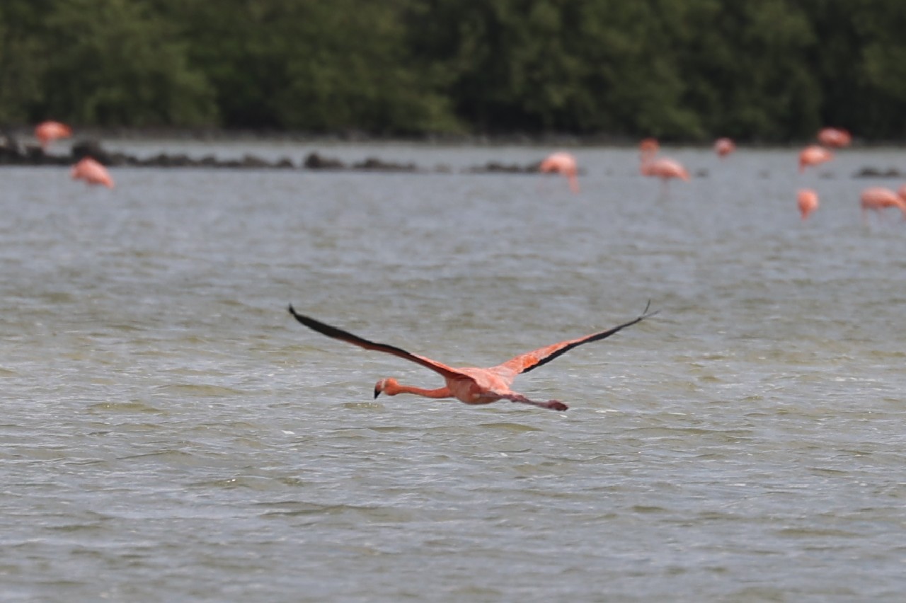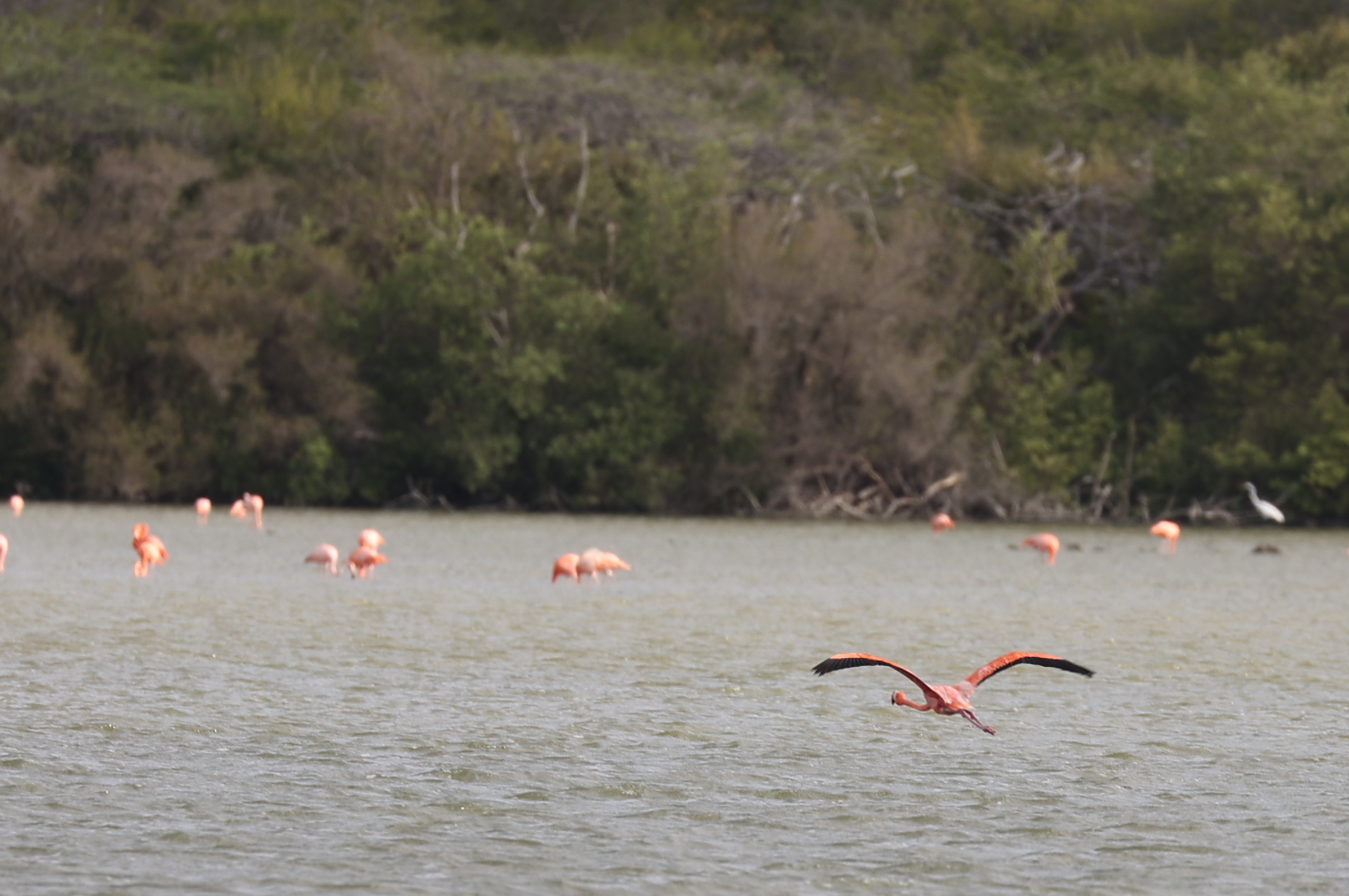 From there, we stopped back at the hotel for a quick moment and then headed back out. We drove up further up the western shoreline, and had to take a picture of the city sign for Sint Michiel - complete with a dog who felt it was an excellent place to wait. We also were able to stop and see a large water inlet where flamingos can be found. And we found them! Most were further off shore, but some were close enough for Mike to get excellent pictures with the zoom lens. We then drove to the shoreline to see the sunset, but that was a couple hours off yet. So we navigated to a place further up the shore (with Google maps that were downloaded offline, we weren't using phone coverage). At one point, we commmented how the road looked brand new or at least newly paved. Then after by-passing the turn off for a gated community, we realized we were driving "off the map". Apparently the road was so new, it was not yet on Google. We turned around and drove toward the gated community - that happened to be where the sea-front restaraunt was located. We had to stop at a guard shack but after explaining we were headed for the restaurant, they waved us through. There was parking and pictures of condos for sale, and houses you could build and buy. They were NOT cheap to say the least! We walked down to the shoreline and looked at the water for a bit. The restaurant there was rather expensive and we weren't quite ready for dinner yet. We walked back up the stairs to Koraal Rooftop Terrace, and had a couple of beers and bitterballen. From there we watched the sunset - perfect.
