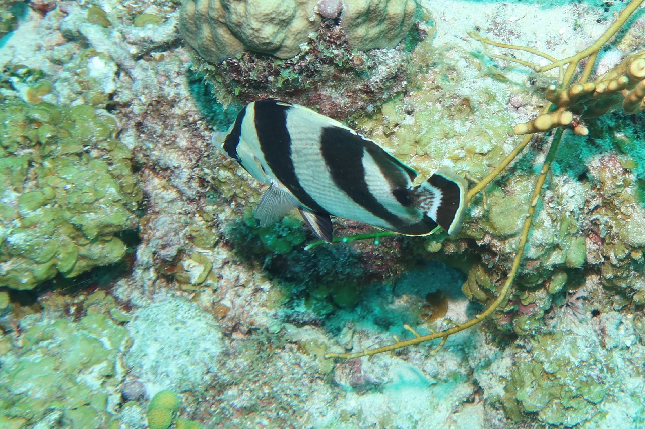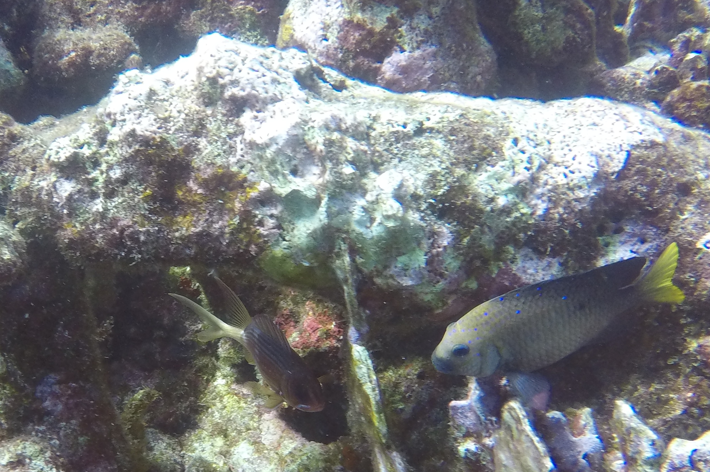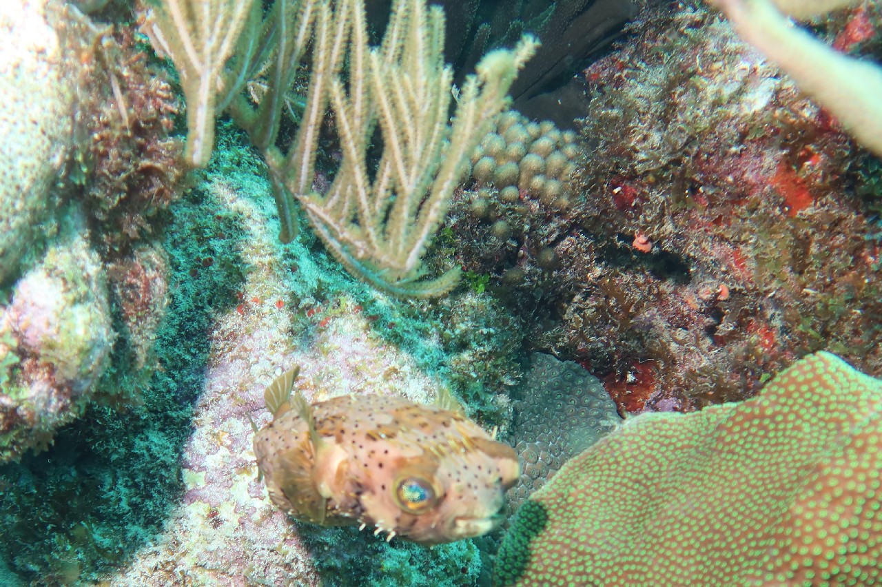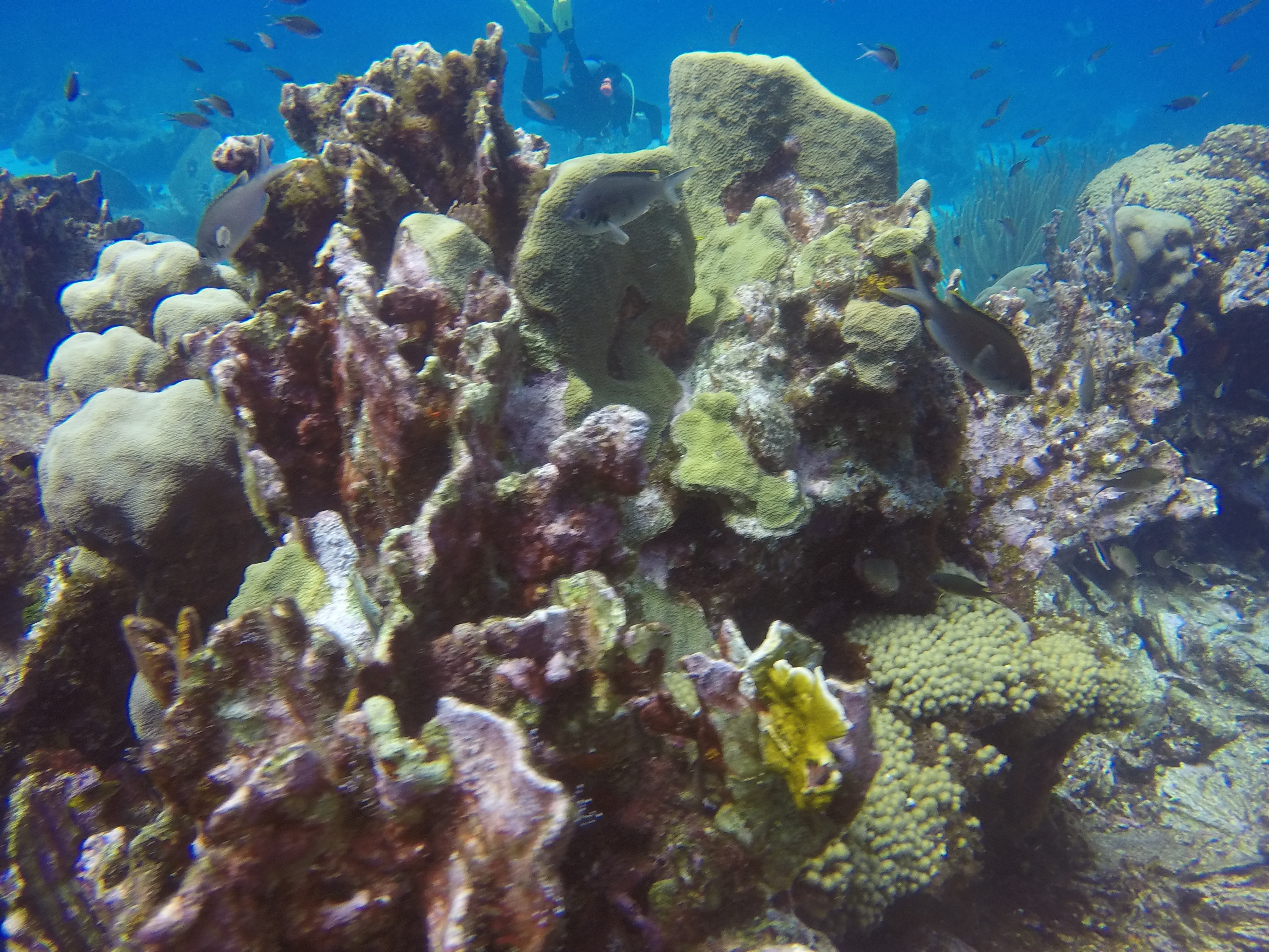The first stop was Small Wall, which Alex said was his favorite. We swam up and then back down part of the wall. The coral looked very healthy here and we were pleasantly surprised at the number of different fish we saw. The boat took us back to Ocean Encounters for a short time and then we headed out for a second dive at Shipwreck Point. There you could see a few pieces of long lost ship parts, including a propeller and anchor. There used to be part of a ship as well, but has been moved to be part of the Underwater Aquarium.