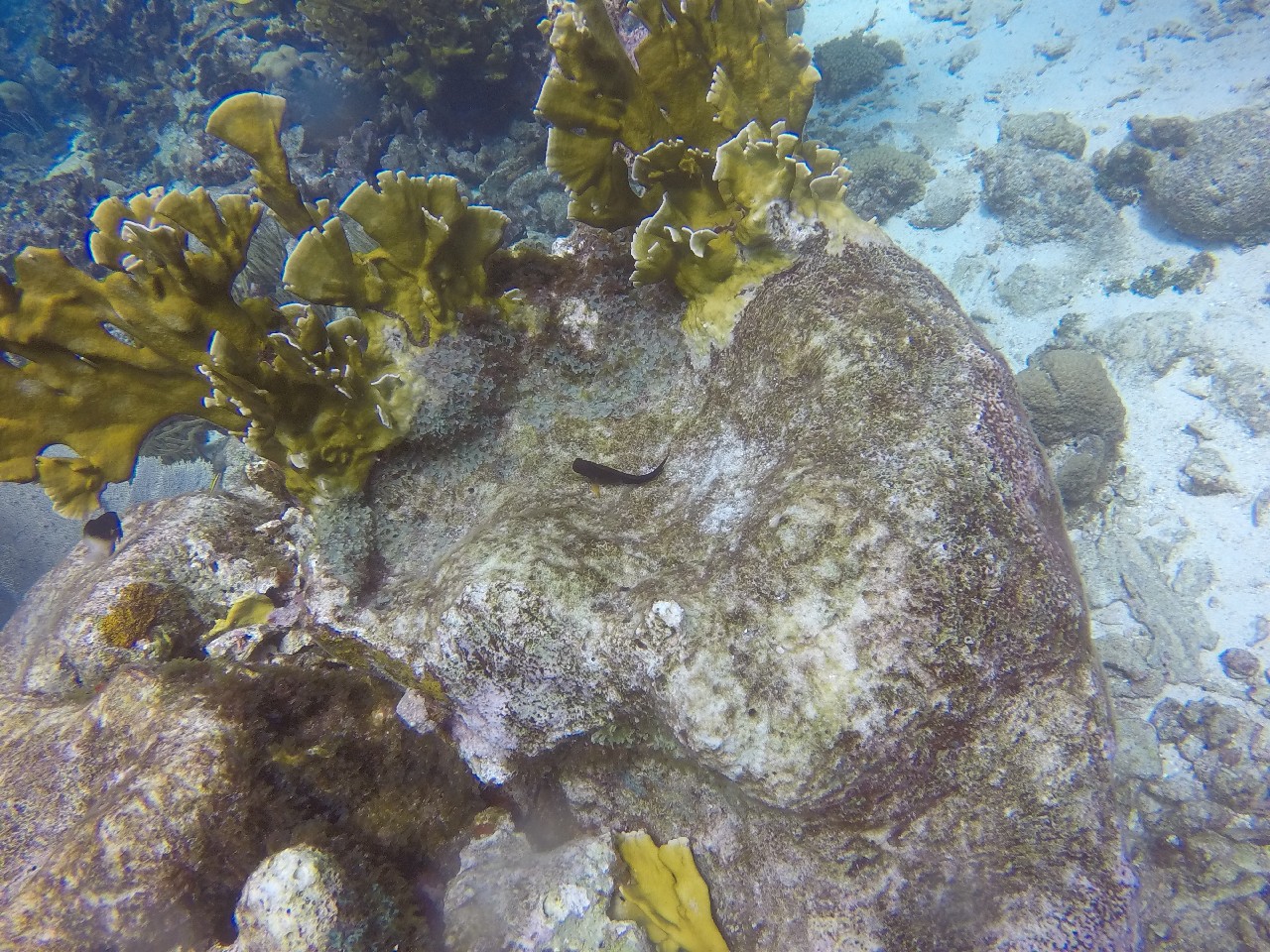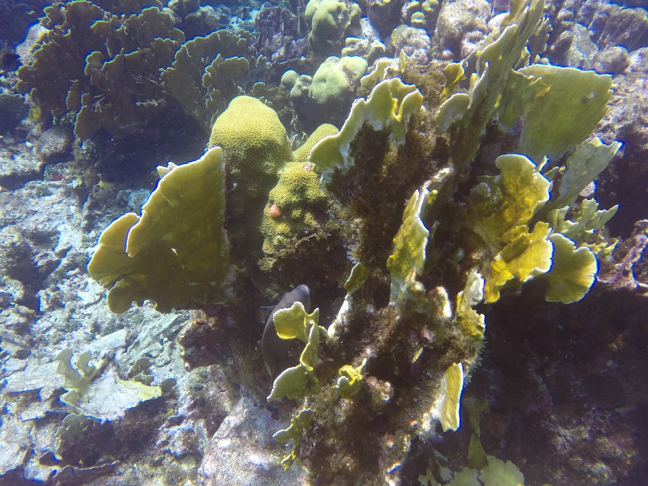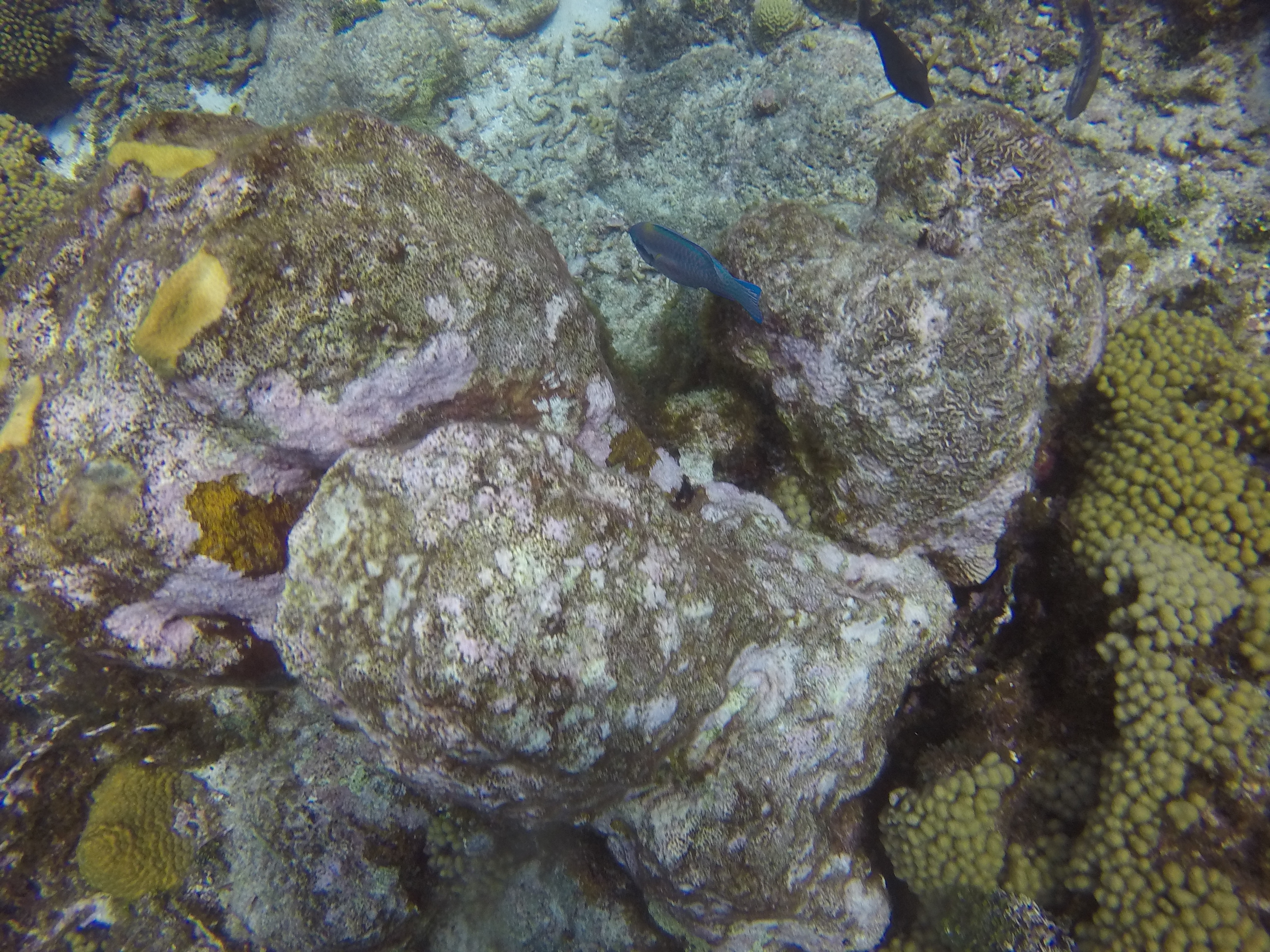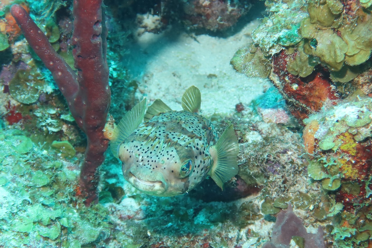 The first stop was Small Wall, which Alex said was his favorite. We swam up and then back down part of the wall. The coral looked very healthy here and we were pleasantly surprised at the number of different fish we saw. The boat took us back to Ocean Encounters for a short time and then we headed out for a second dive at Shipwreck Point. There you could see a few pieces of long lost ship parts, including a propeller and anchor. There used to be part of a ship as well, but has been moved to be part of the Underwater Aquarium.
