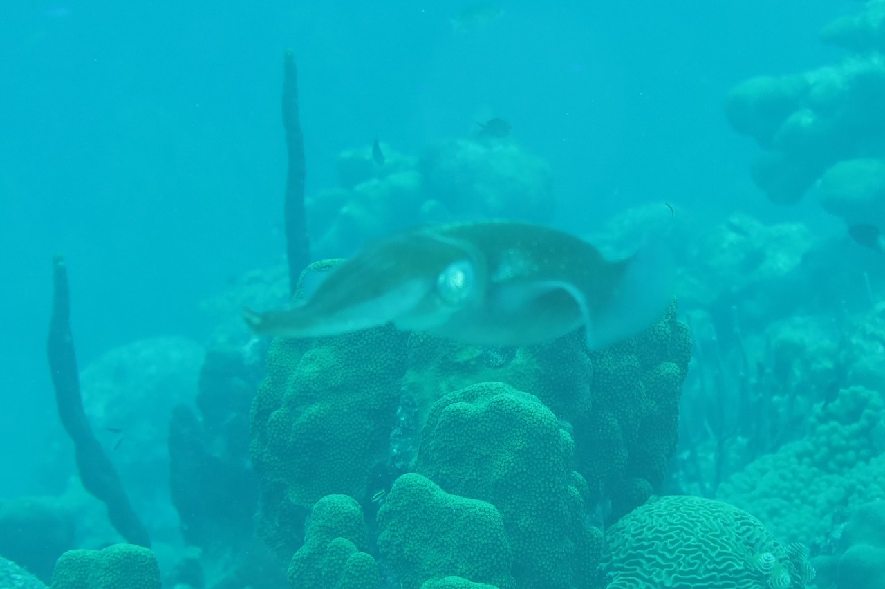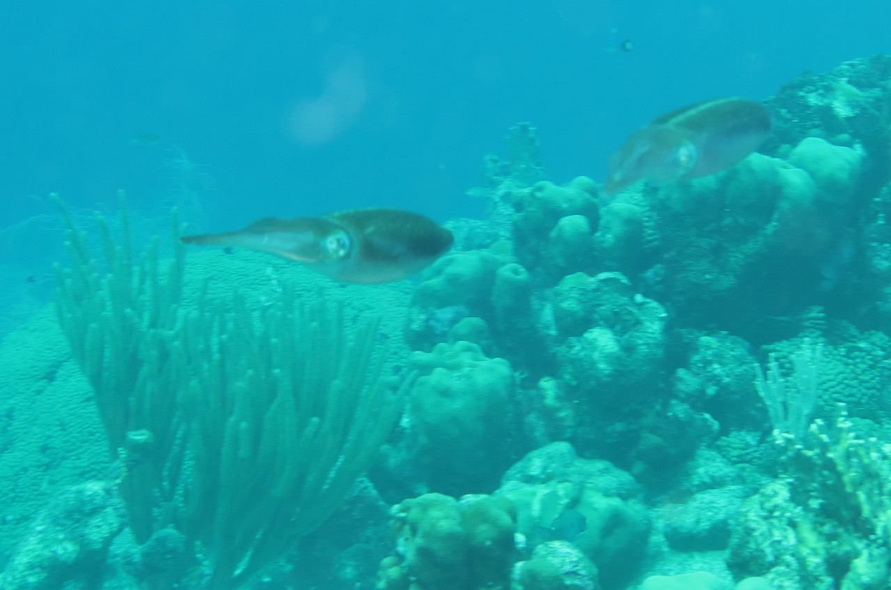Both dives were amazing! We saw so many fish plus a couple of squid - those were a first for us! We also saw smooth trunk fish, spotted cow fish, lobster, shrimp, parrot fish, angel fish, a couple of scorpion fish (so hard to see!!) - the list went on & on. Mike's camera battery died near the end of the second dive, but he got a lot of amazing pictures all the same. Greta had the Go-Pro and used it for some video and a few pictures.