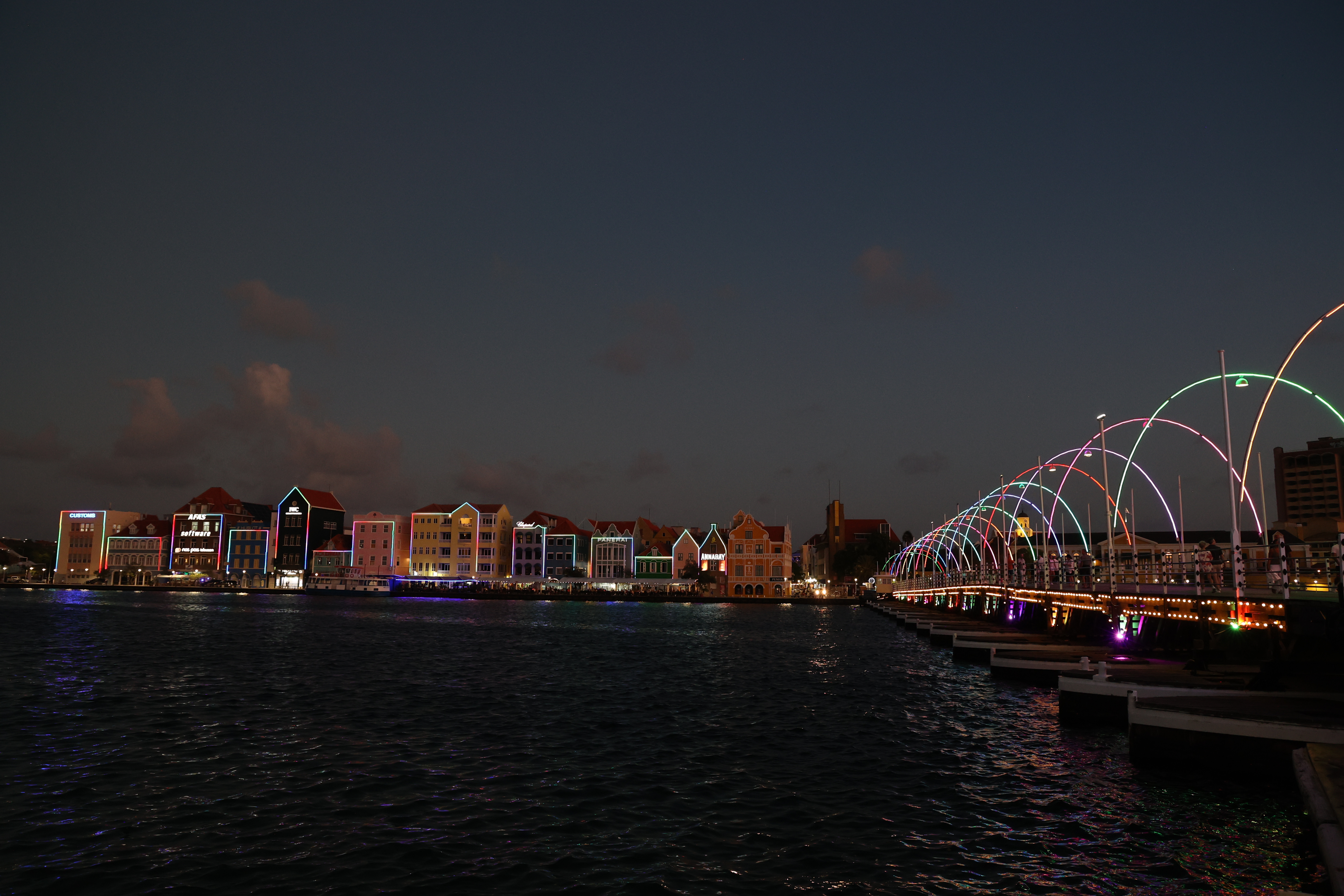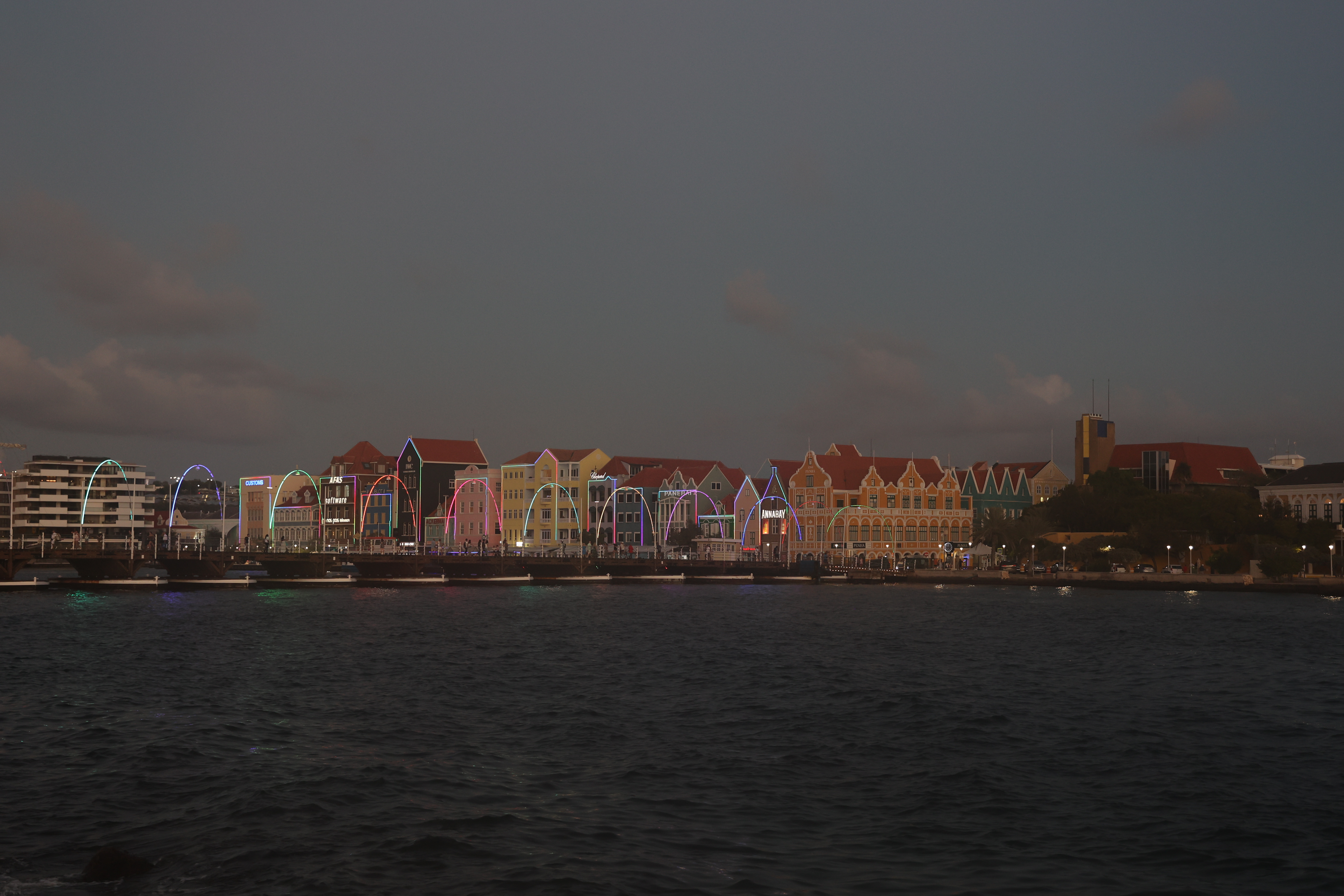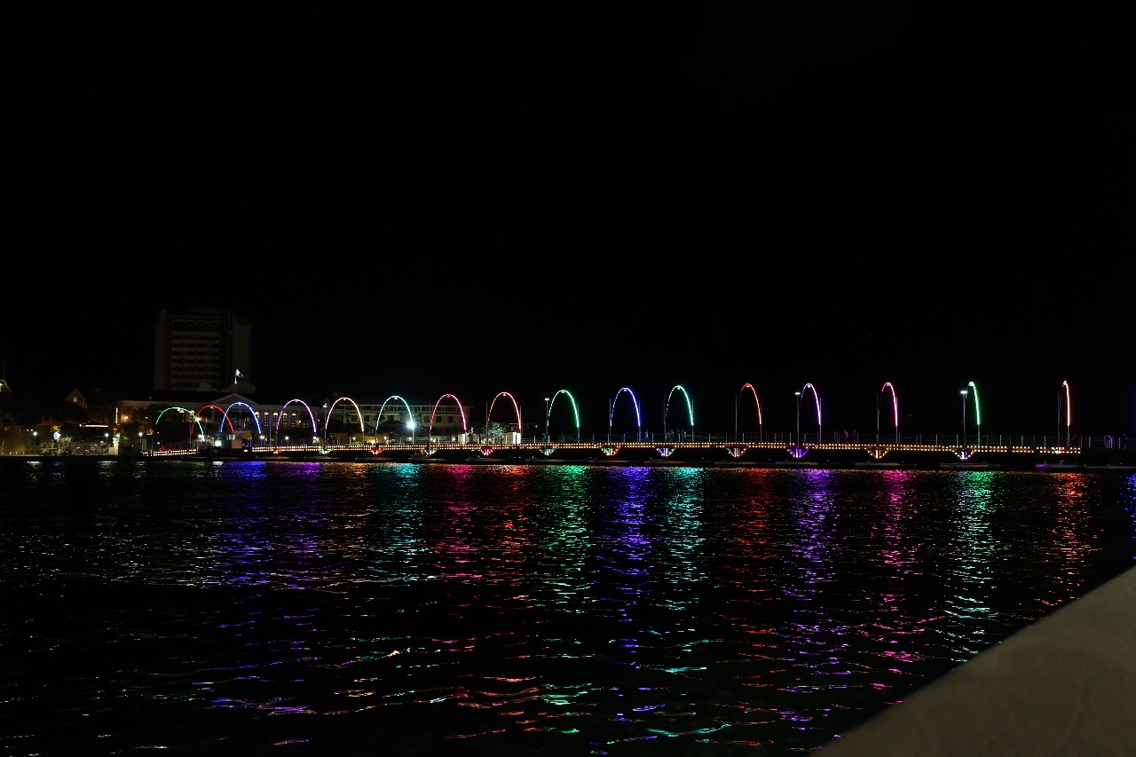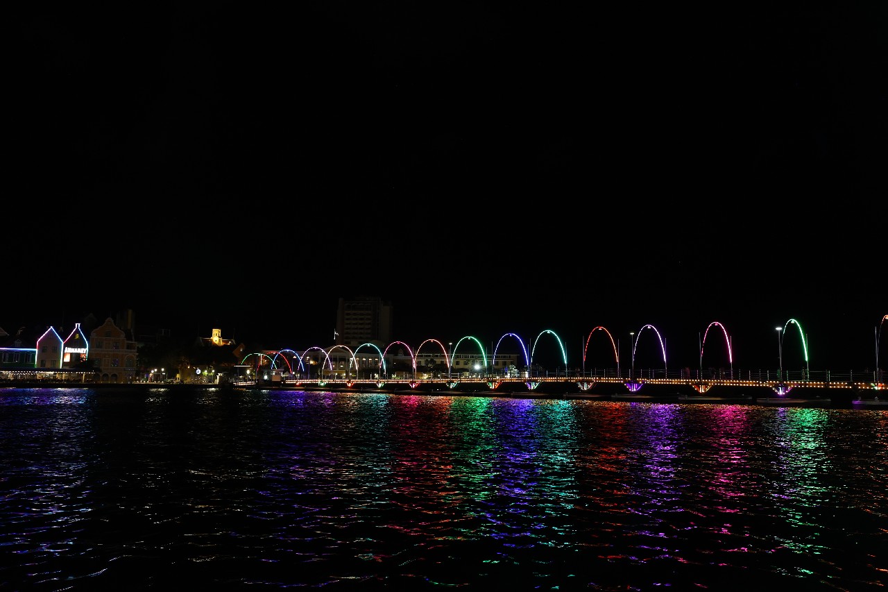 We walked down to the Queen Emma Bridge and Mike got some more pictures. We walked along the waterway until we started up a hill and found what we figured out later was the old cruise ship terminal. The new one is right outside of our hotel. From there, we got to Maira's Kitchen a bit early, but they were still able to seat us outside in a covered patio. Mike ordered the goat stoba, which is a native Curacao dish. It's a bit like stew, and was accompanied by some pickled veggies, rice, and a salsa-like sambal; it was excellent. Greta ordered the Red Snapper filet that came with veggies and fries; not as good as Mike's but still excellent. After that we walked down to our hotel, watched a little bit of the Olympics and called it a night.