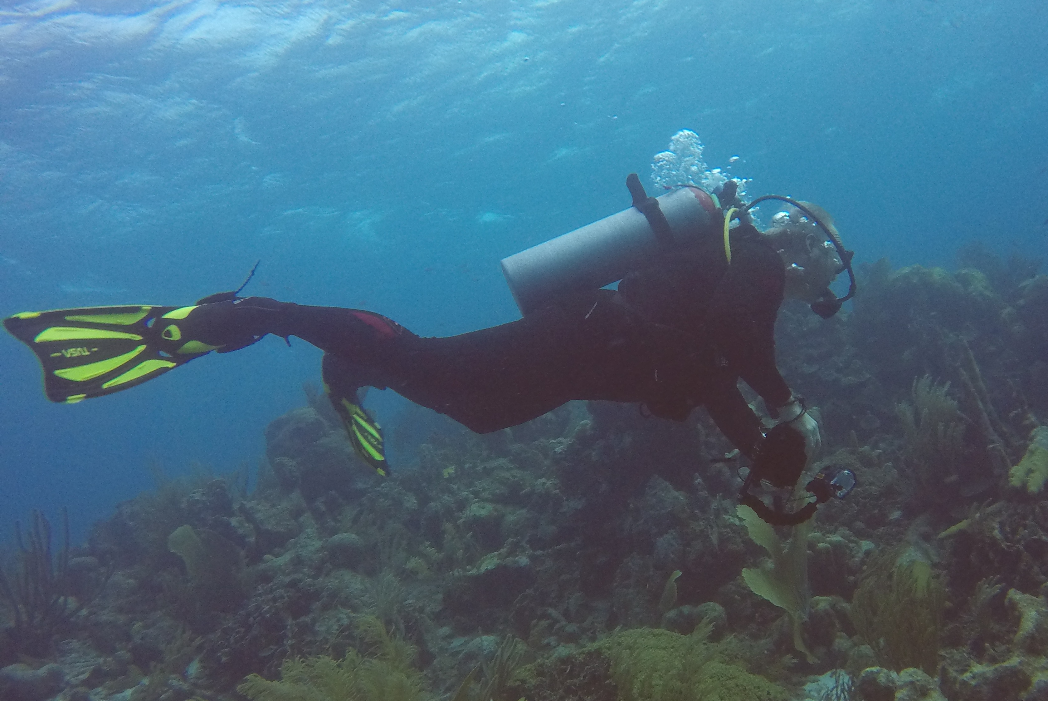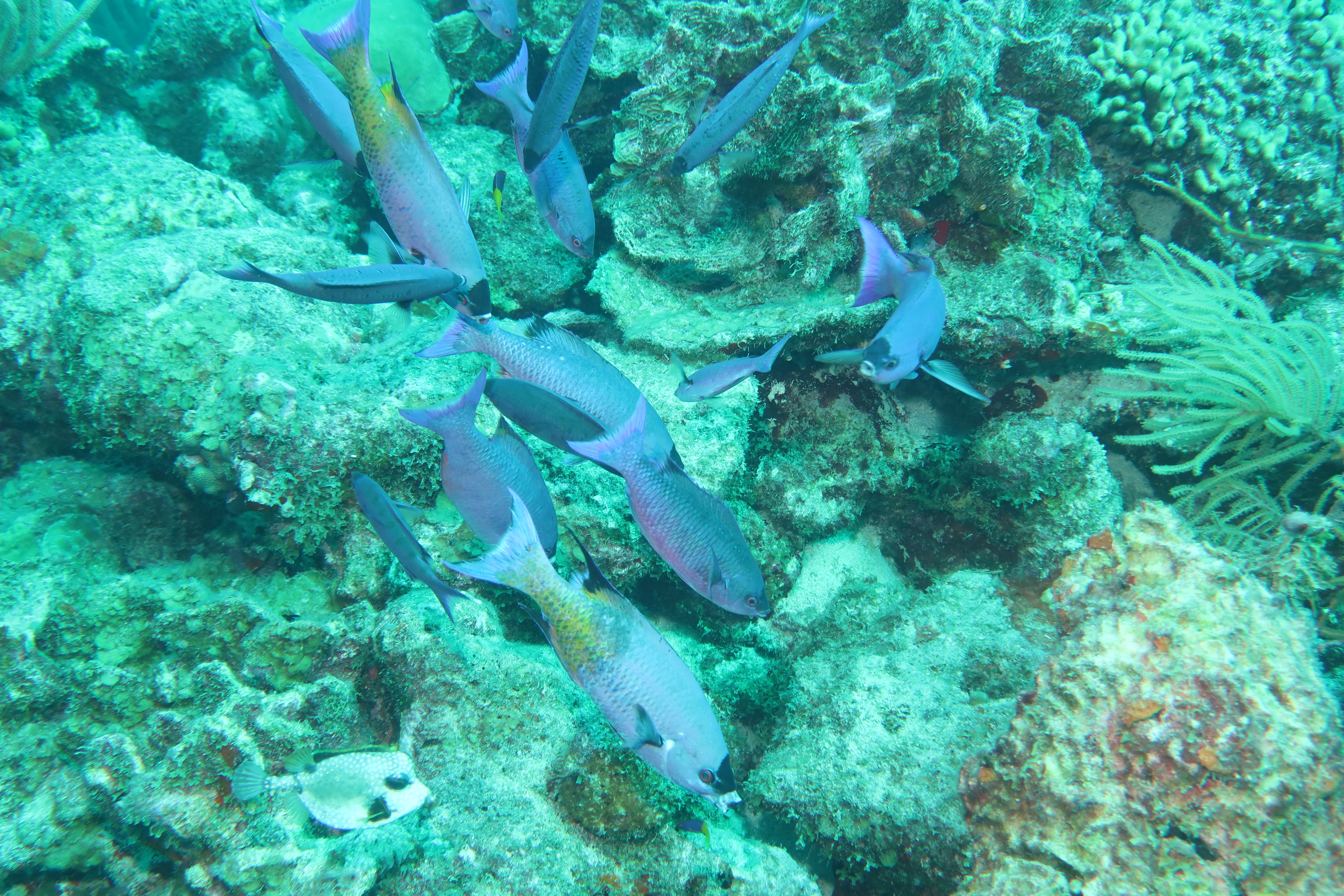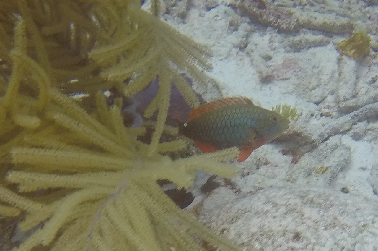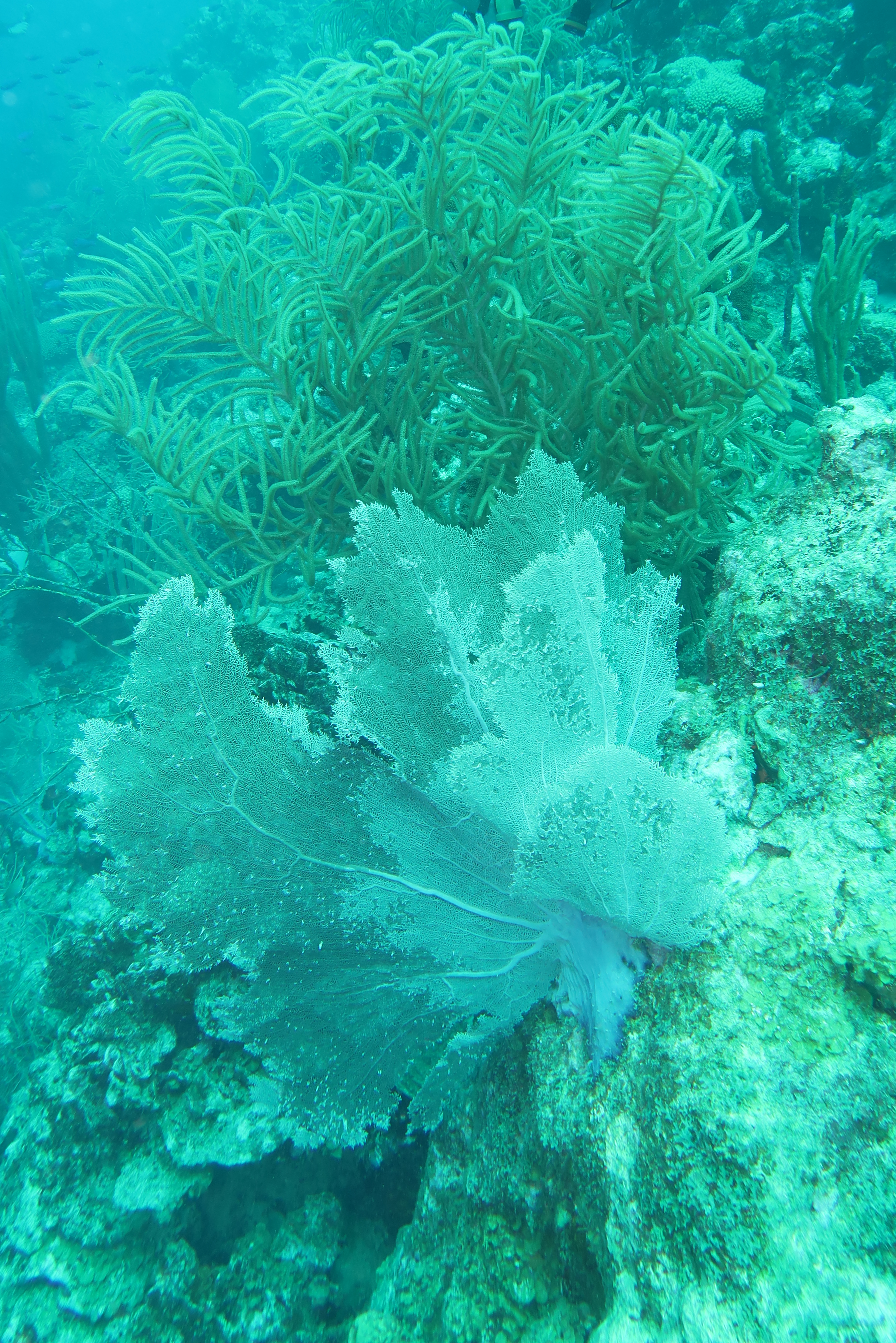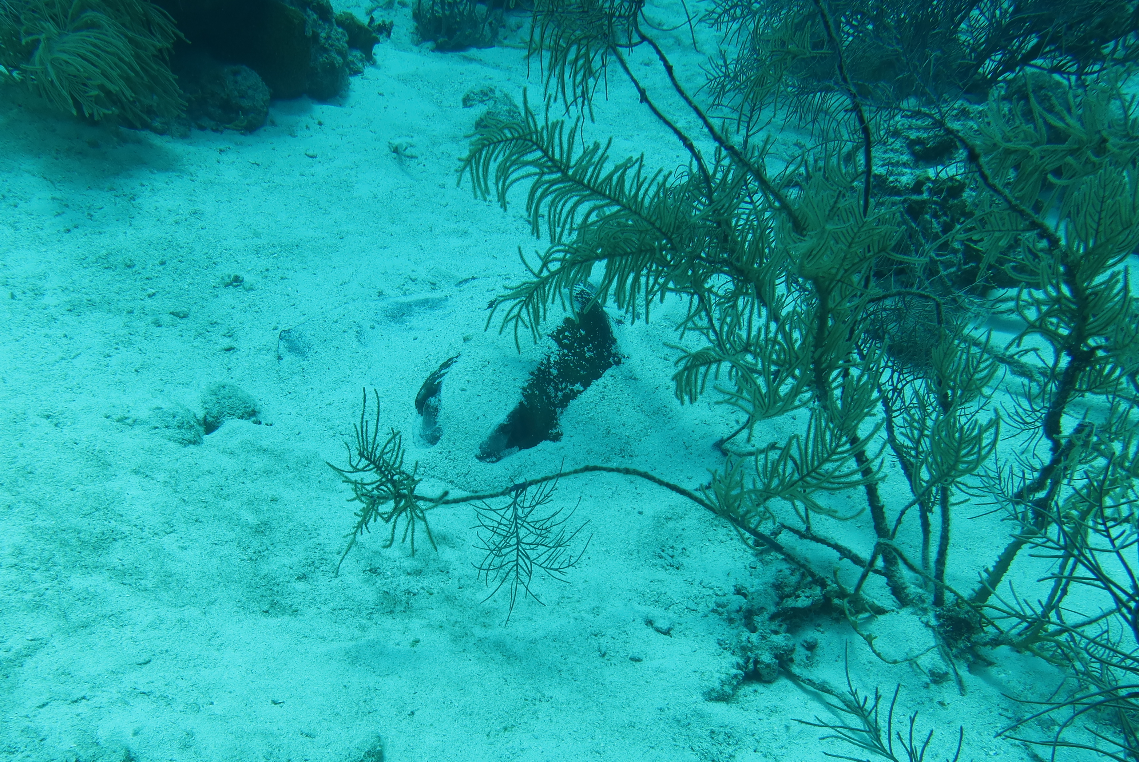 We had two dives - Smokey's and Newport. Both were near the south end of the island, beyond where anyone is settled, so the coral is healthy and underwater is pristine. The visibility this week has been OK - not the greatest, but you can still see quite a ways. There was rough water and extra wind last week that had everything stirred up. Today we saw a little bit of everything. Mike saw a red fish with white spots on both dives - he got a picture of it at one point but the DM couldn't ID it and it wasn't in the fish book. We also saw a very large southern sting ray that was resting on the bottom. It watched us all swim over it but didn't move. It was easily 6ish feet long but partially buried in the sand. That was quite the highlight. We also saw a Princess Triggerfish a ways off, a couple different adult drums, some Flamingo Tounges (snails), and the list goes on & on. Both dives had so much different life in them, they were really impressive. Back on shore, we had to go to the desk to get a partial refund from the night dive (as it was changed from a boat dive to shore dive) and we used the credit to buy lion-fish-fin earrings for Greta. That's now 87 dives for each of us.