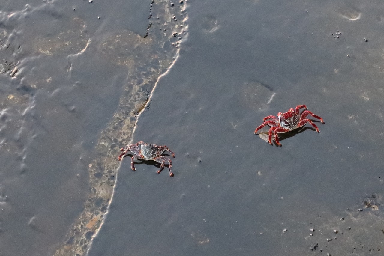 We cooled off for a couple hours and had some cheese, mustard & crackers. We made reservations at La Boheme in Punda for 7:30 but decided to leave the room early (around 6) to have a drink while watching the sunset from the pool area of the hotel. What we didn't realize until we got there was that the two cruise ships in port were directly in the way of the setting sun. From what we could tell, nowhere would allow us to watch the sun without walking way out of our or else driving somewhere. We walked into the Rif Fort next door to see if we could at least get to the top level and the manager at the "Steak & Ribs" restaurant waved us up. We were seated at a wonderful ocean side table but the cruise ships still blocked the sunset. We were entertained by crabs scuttling and chasing each other down below and looking out at the water, though, and enjoyed a cool drink while the sun set behind the ships.