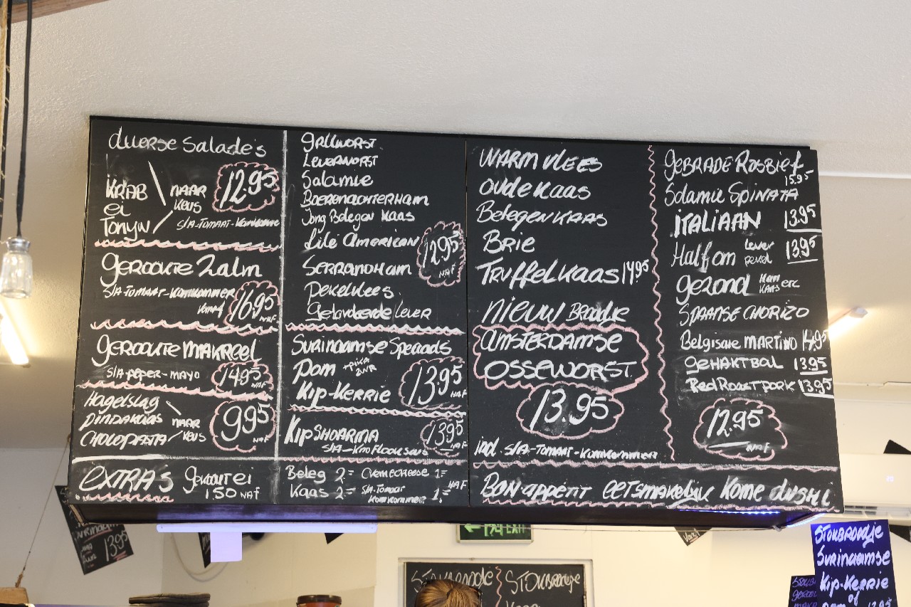 Valentine's Day & our last full day on the island. We headed out for breakfast. The first place we stopped at was a pick-up place only (no seating) so we opted to try Mijn Broodje just down the road. What a find that was! It a little sandwich shop that was VERY Dutch. All the menus on the walls were in Dutch, so Mike handled the ordering. Greta had a roast-beef and hard-boiled egg sandwich with OJ. Mike had a chicken curry sandwich with coffee. The freshly-made bread was amazing, and made wonderful sandwiches. If we would have found this place earlier, it would have been hard not to go every day!