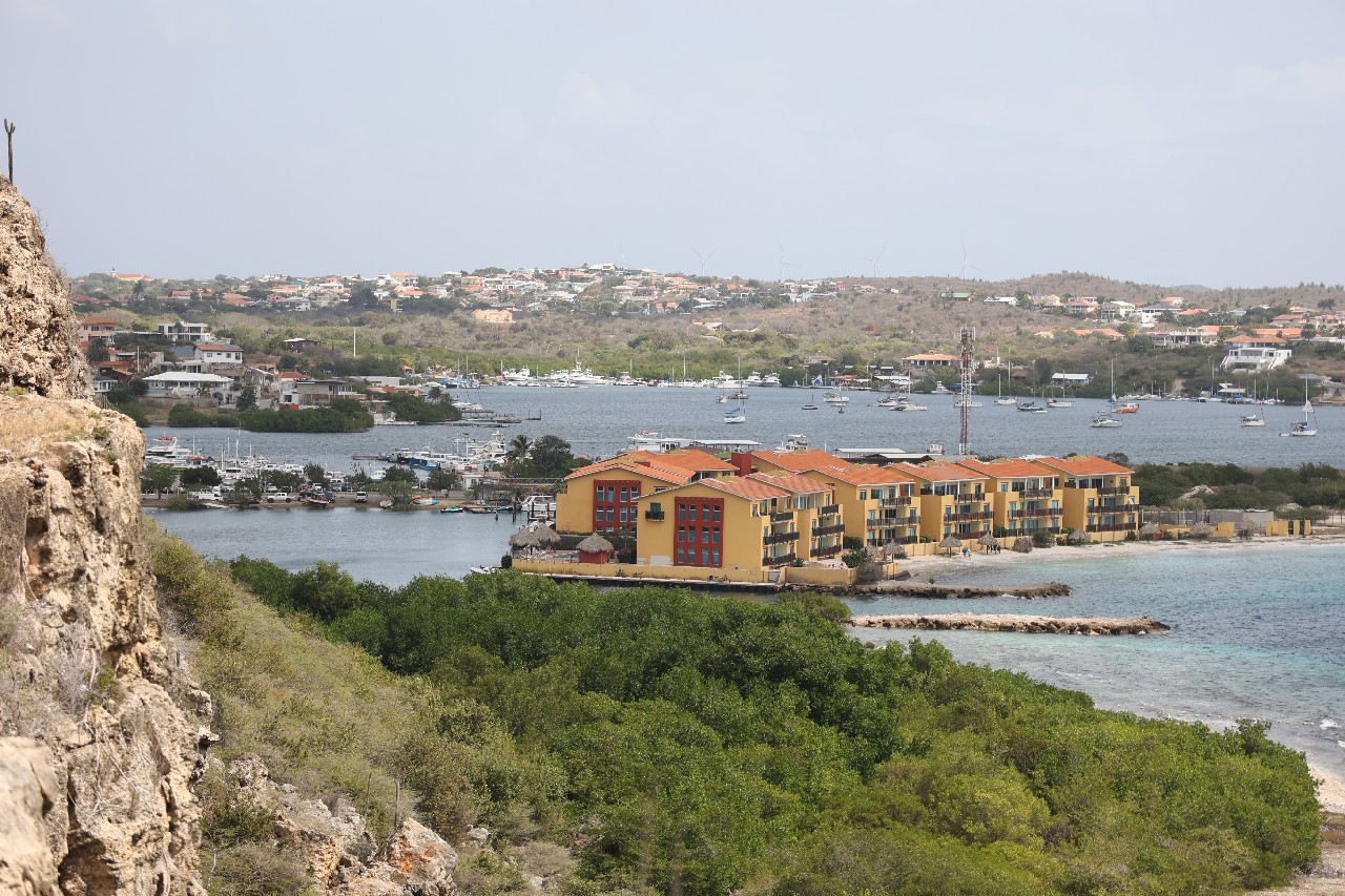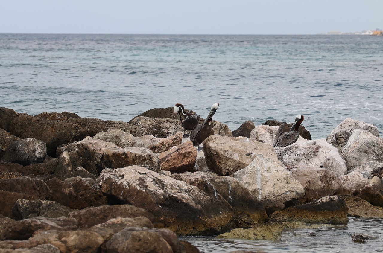 After that, we wanted to try drive the southern part of the island. Our first stop was the beach town of Jan Thiel. We walked around at the beach area for a bit and got some pictures of pelicans on the rocks. Our next plan was to drive to the area of the Sandals Resort, and the cities of Santa Barbara and Newport. This did not turn out very well. The Sandals resort area had a guard shack that wouldn't let you through if you weren't staying there unless you paid a $25 fee. The fee was reimbursable if you ate at one of the restaurants but we'd just had breakfast and weren't really interesting, so we thought we'd bypass that. But as far as we could tell, both Santa Barbara and Newport were only accessible by private roads. We'd read that a lot of the island was privately owned but didn't realize that extended to the cities.