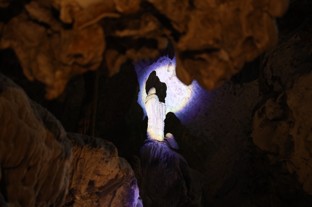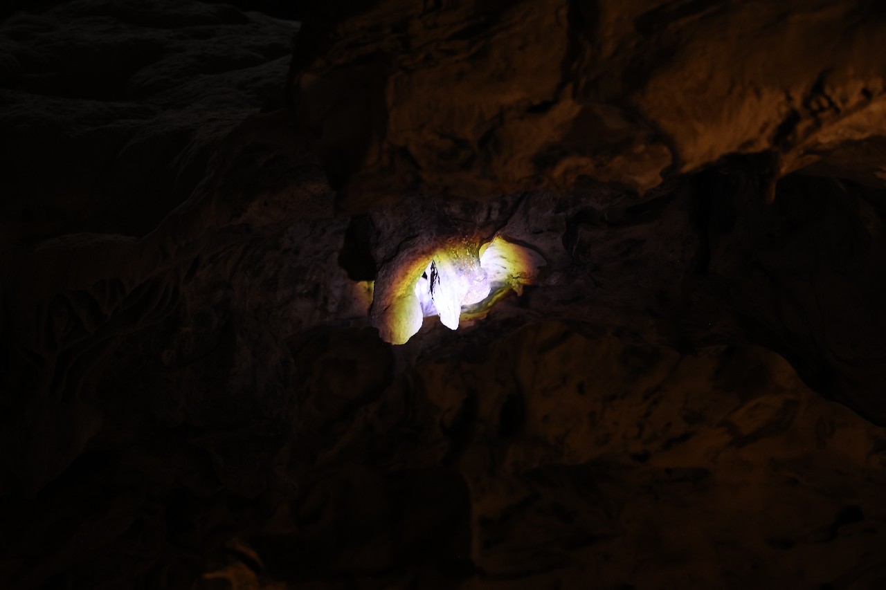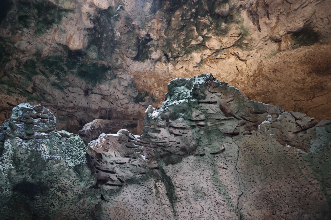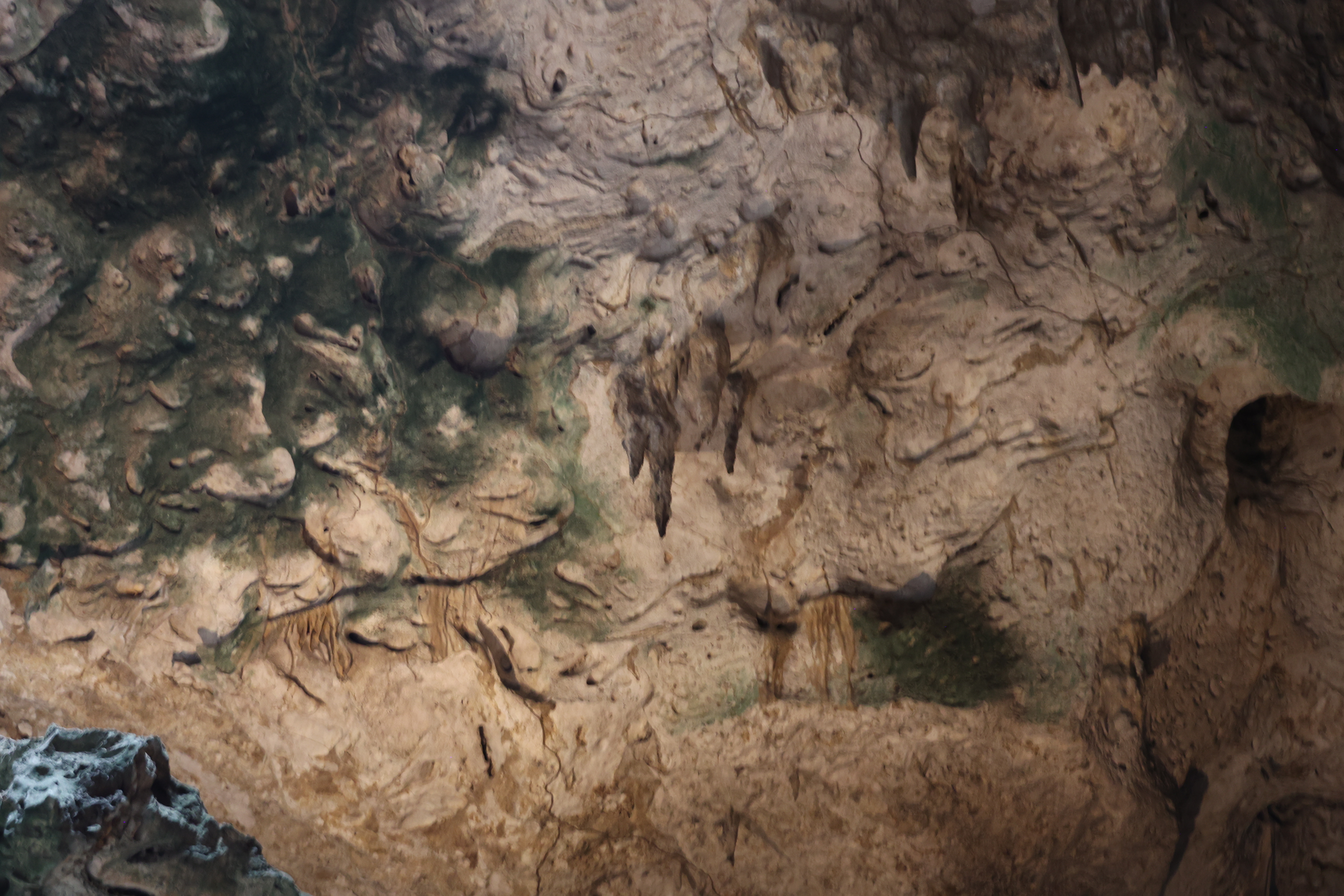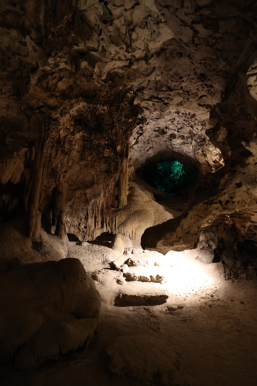 We bought tickets for the next tour and were fortunate that it was starting in 10 minutes. Right in front of the bathrooms we FINALLY got to see a big iguana. We've been surprised we haven't seen more of them, but this guy was beautiful. The tour started and we went up a number of steps to get in. Because it's all above ground, it's not as cool as underground caves we've toured before, and they had fans running throughout the tour to help with the ventilation. The cave itself is actually several miles long but the public tour is of course just a small part of that. Right after entering, we saw a colony of bats hanging from the ceiling, and sometimes we'd see one flit past. We walked through various "rooms" within the cave, including the "fantasy room" were the guide pointed out various rock formations that could be imagined to be something else, including a witch, a donkey and the Virgin Mary. It was very interesting and a very different view of the island than what we'd seen so far. Also including in the ticket price was a self-guided "Indian Walk". It was a nature trail with numbered markers next to various plants and rock formations, and you could download a guide that explain each item. After we got back to the car, we drove across the road, and were able to watch some planes taxiing after landing and took some pictures there as well.