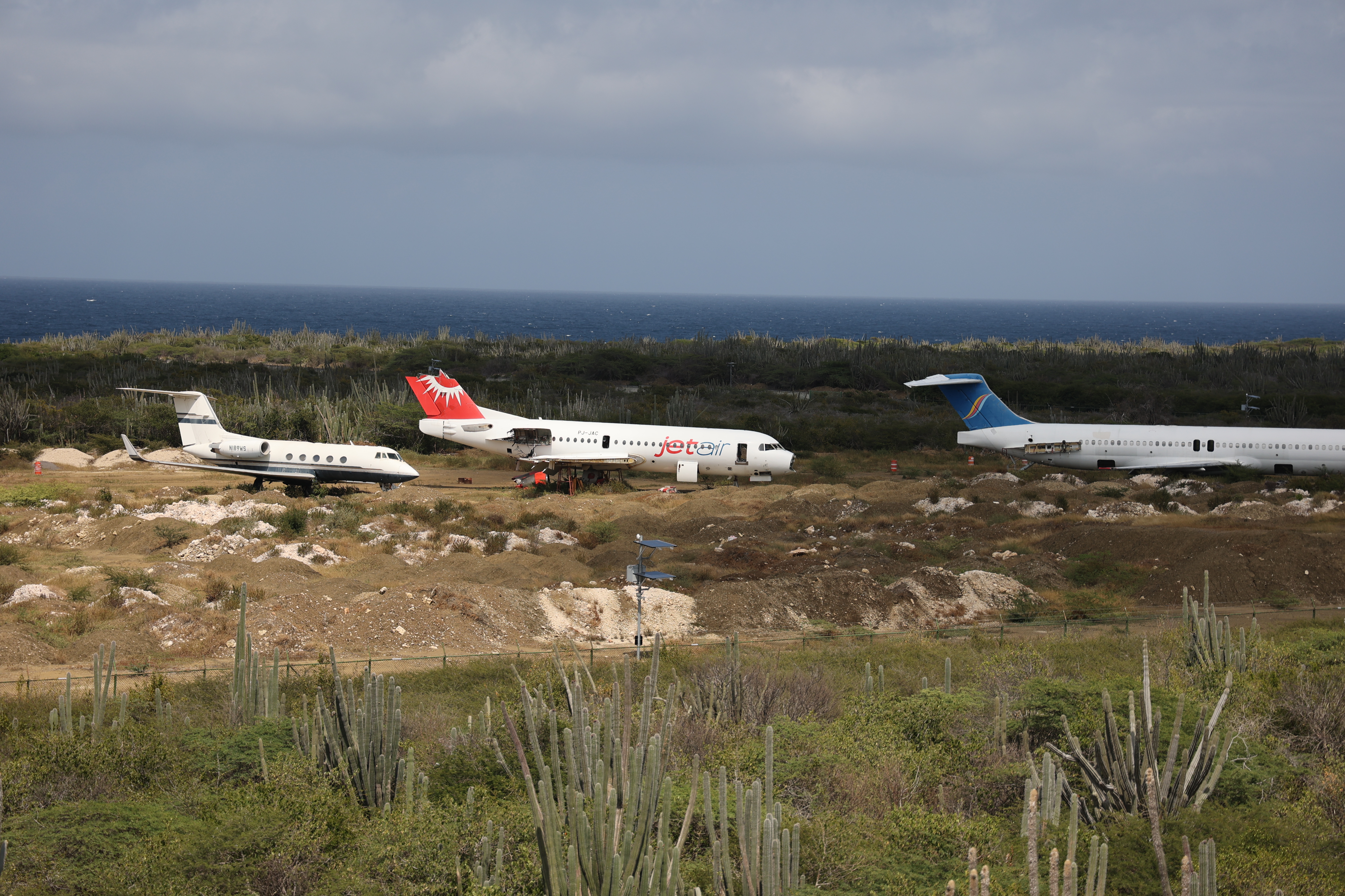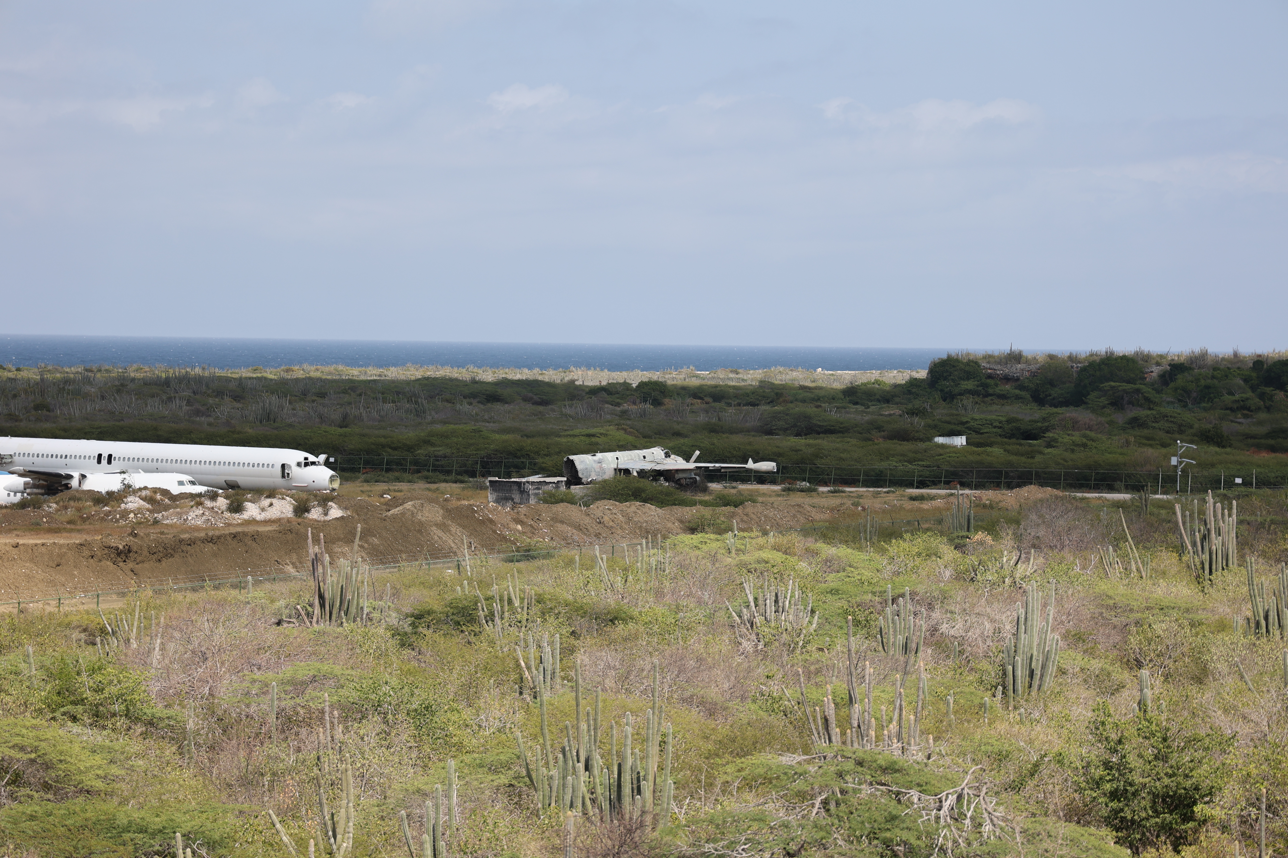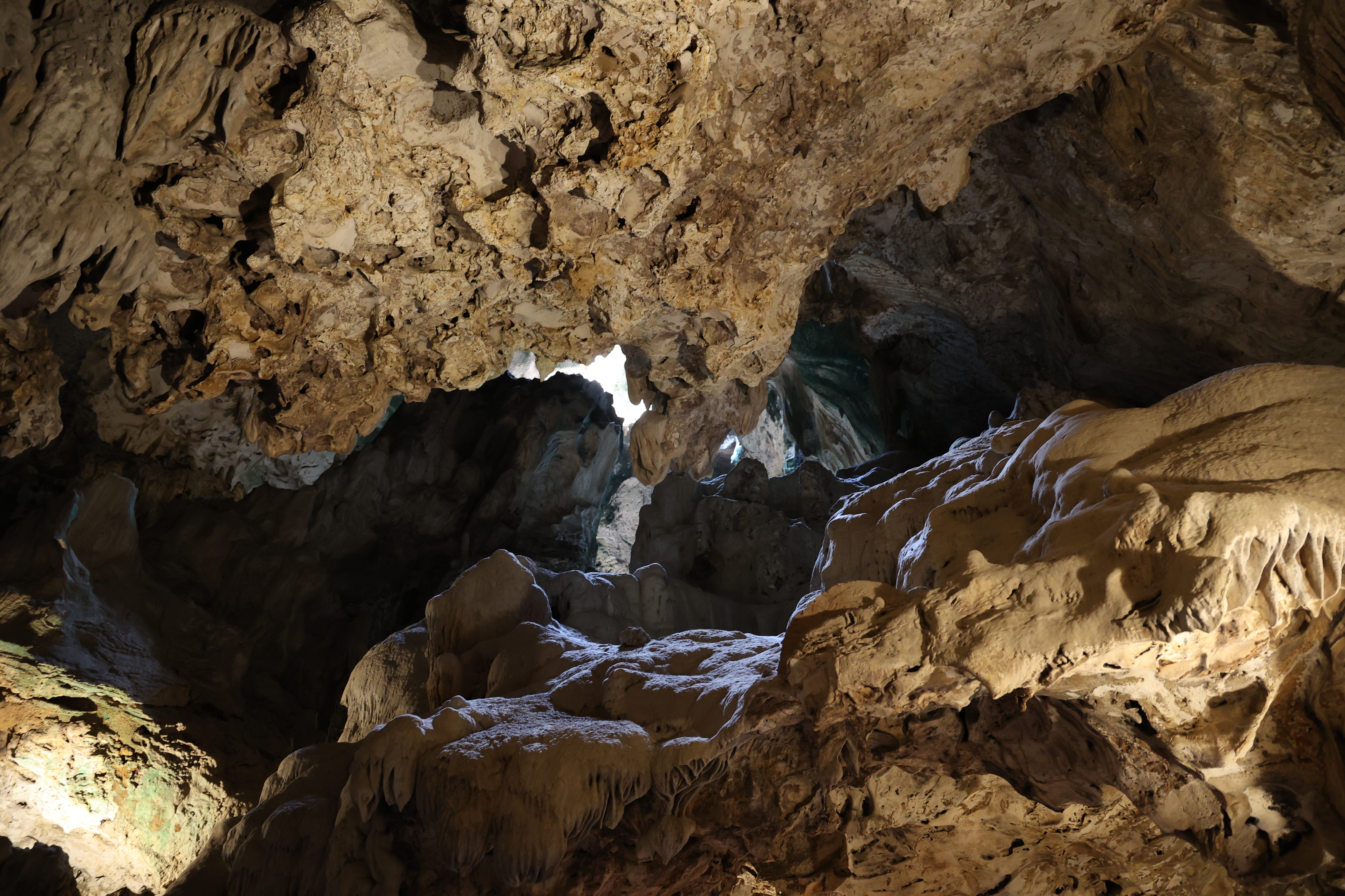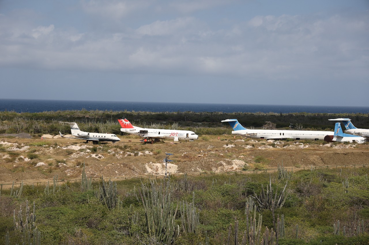 From there we attempted to drive around a bit, but it just seemed to be a maze of residential streets. Eventually we put Hato Cave into Google Maps which was near the airport. We'd assumed we'd be taken on a main road to the location for some reason, Google took us on narrow residential streets and even to a closed road. It was a lot of driving on tiny roads but eventually got to the cave. It's across the road from the far end of the runway, as well as a plane graveyard.