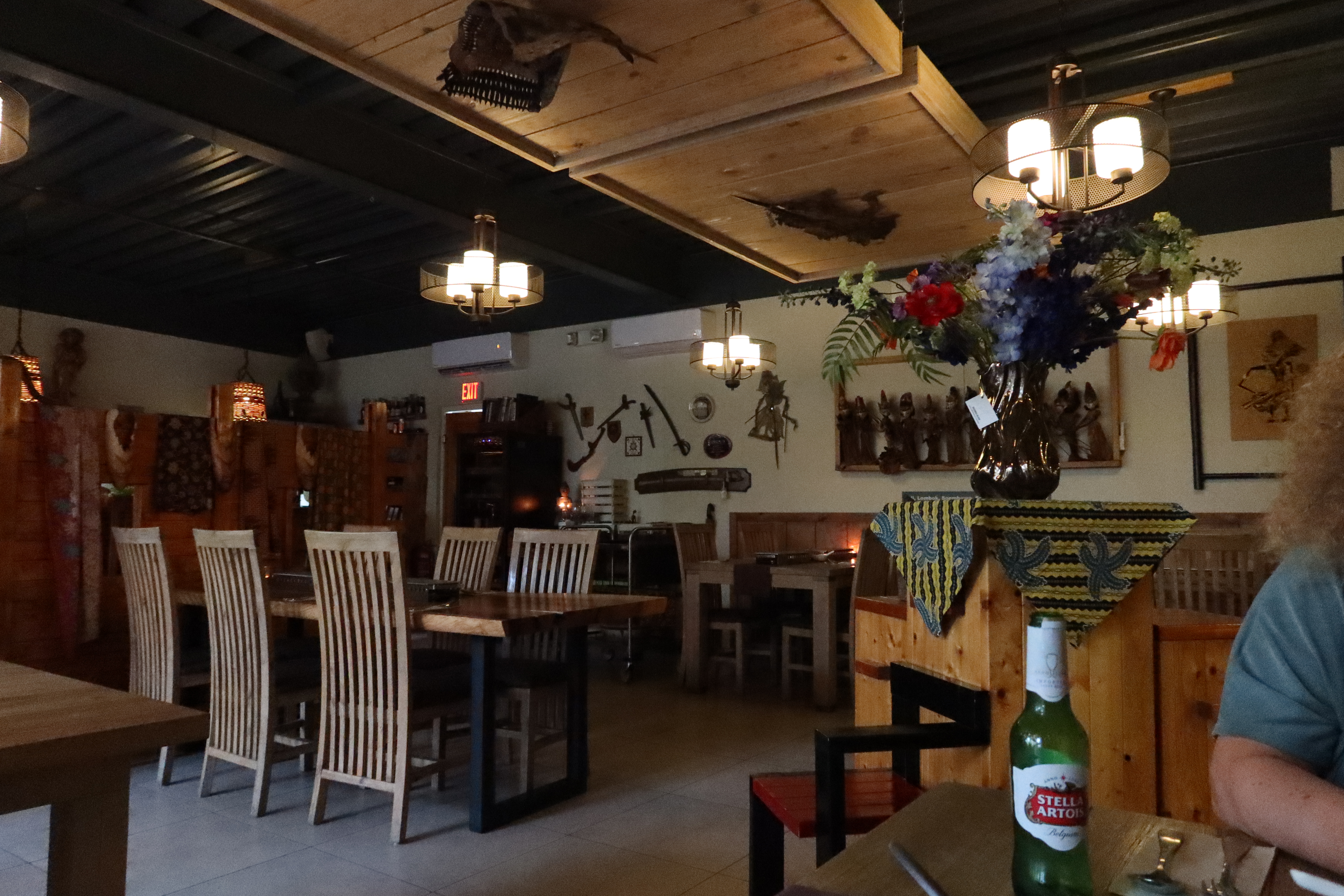 We then headed out for dinner at Batik Asli. We got there a bit early (6:15 for a 6:30 reservation) and it appeared empty. The host assured us it would be busy soon but we were surprised that no one else was there, especially since the restaurant is only open 5:30 - 8:30 pm. The host was very friendly, older Dutchman and he even made a joke about seating Greta but not Mike. There was a small appetizer - a fried roll in a small pot with sauce, and that was great start.