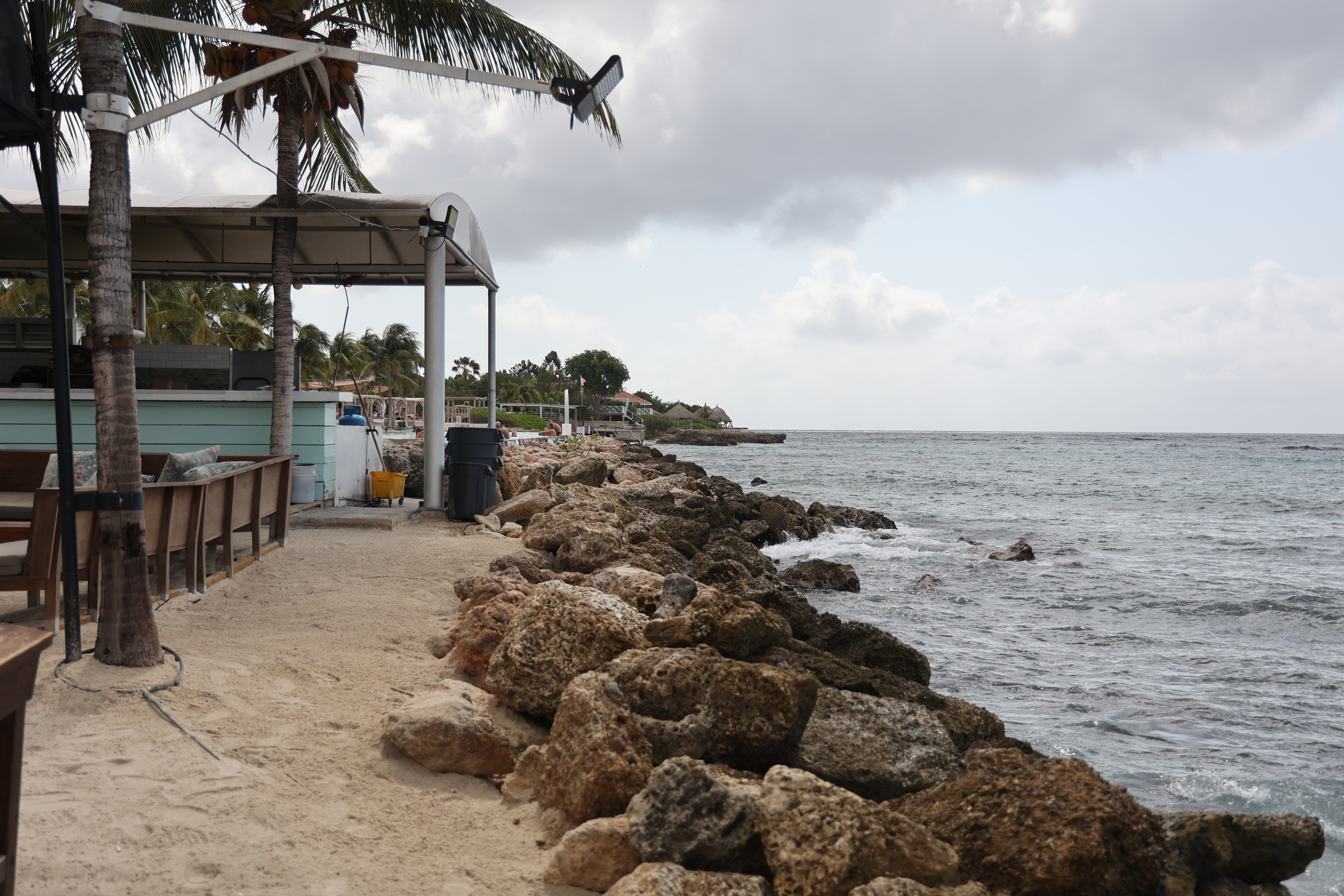 Originally at check-in, we were each given a couple small bottles of water. We'd been refilling these all along. The water in Curacao is quite good tasting and is from a large desalination plant on the island. The last couple of days, housekeeping has been leaving larger bottles for us as well. There is also a small fridge in the room so it's nice to have cold water on hand at all times.