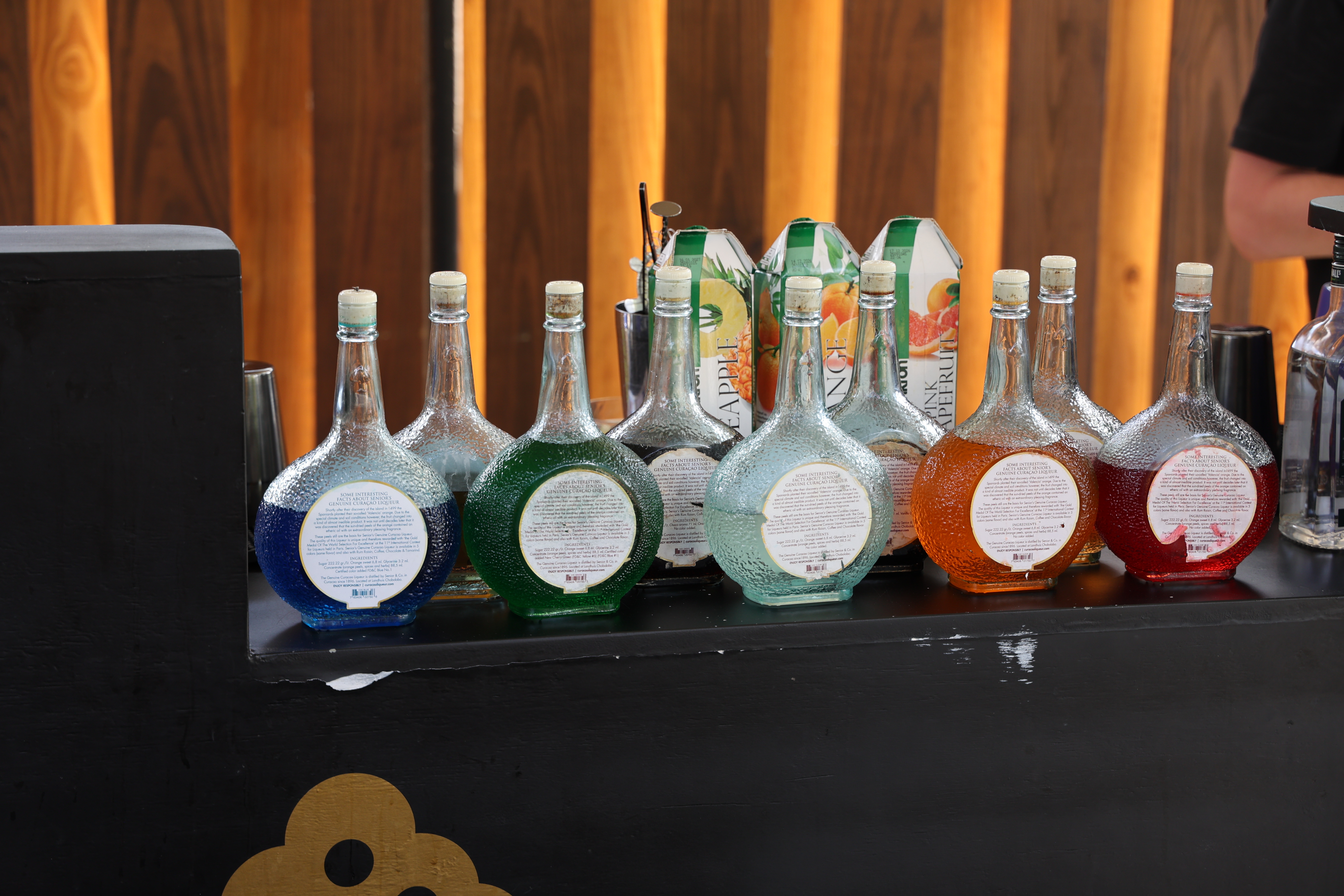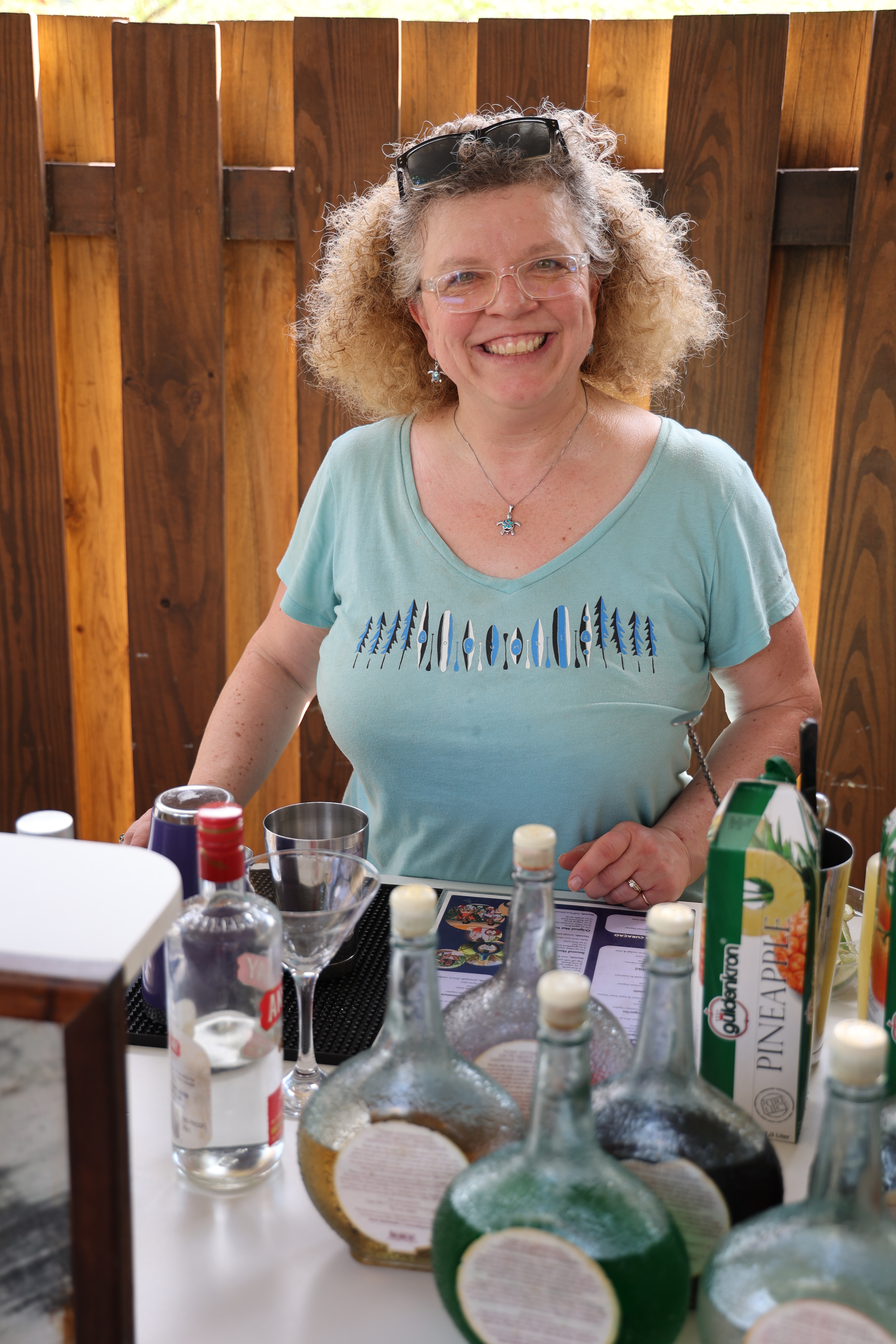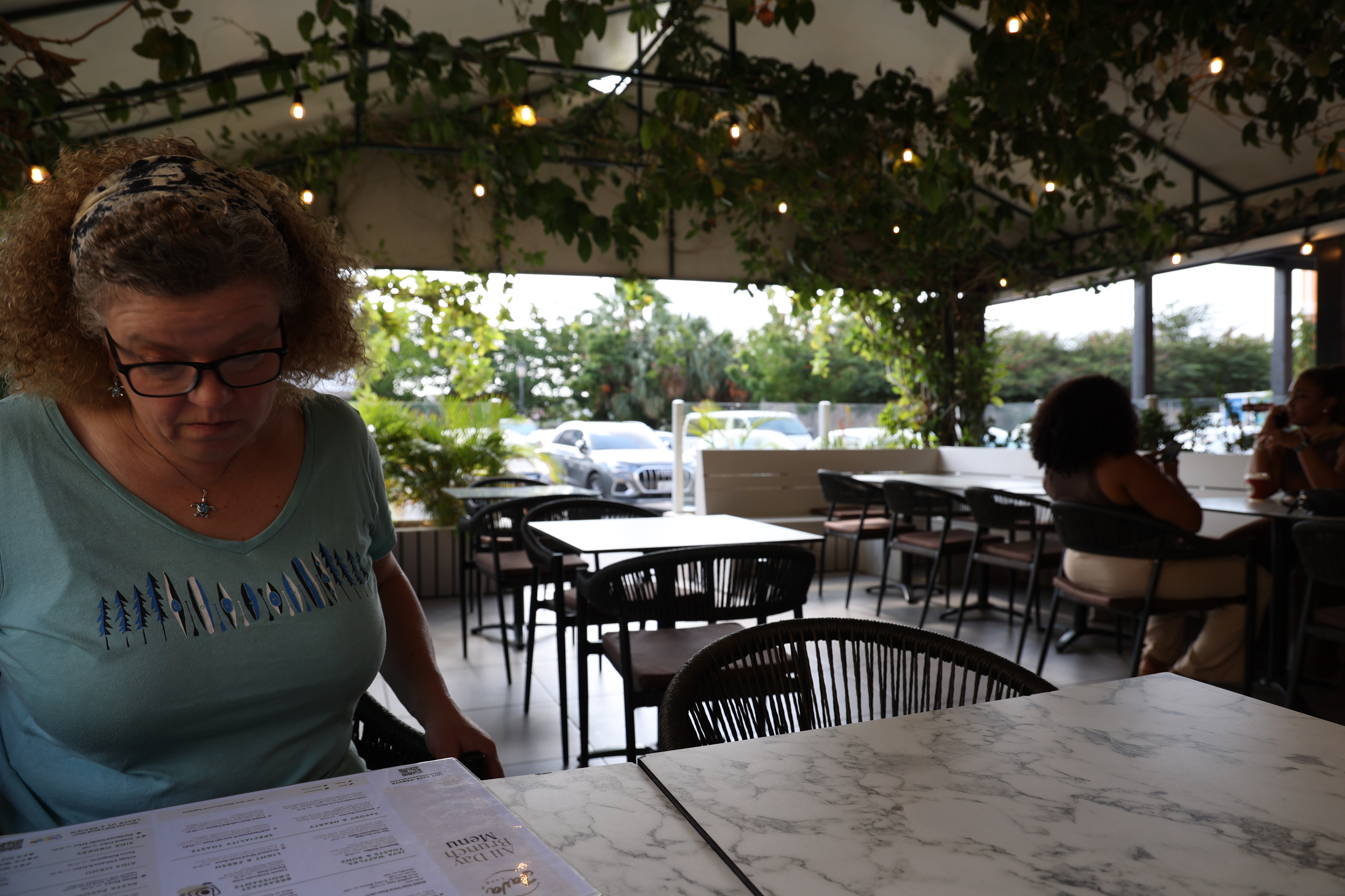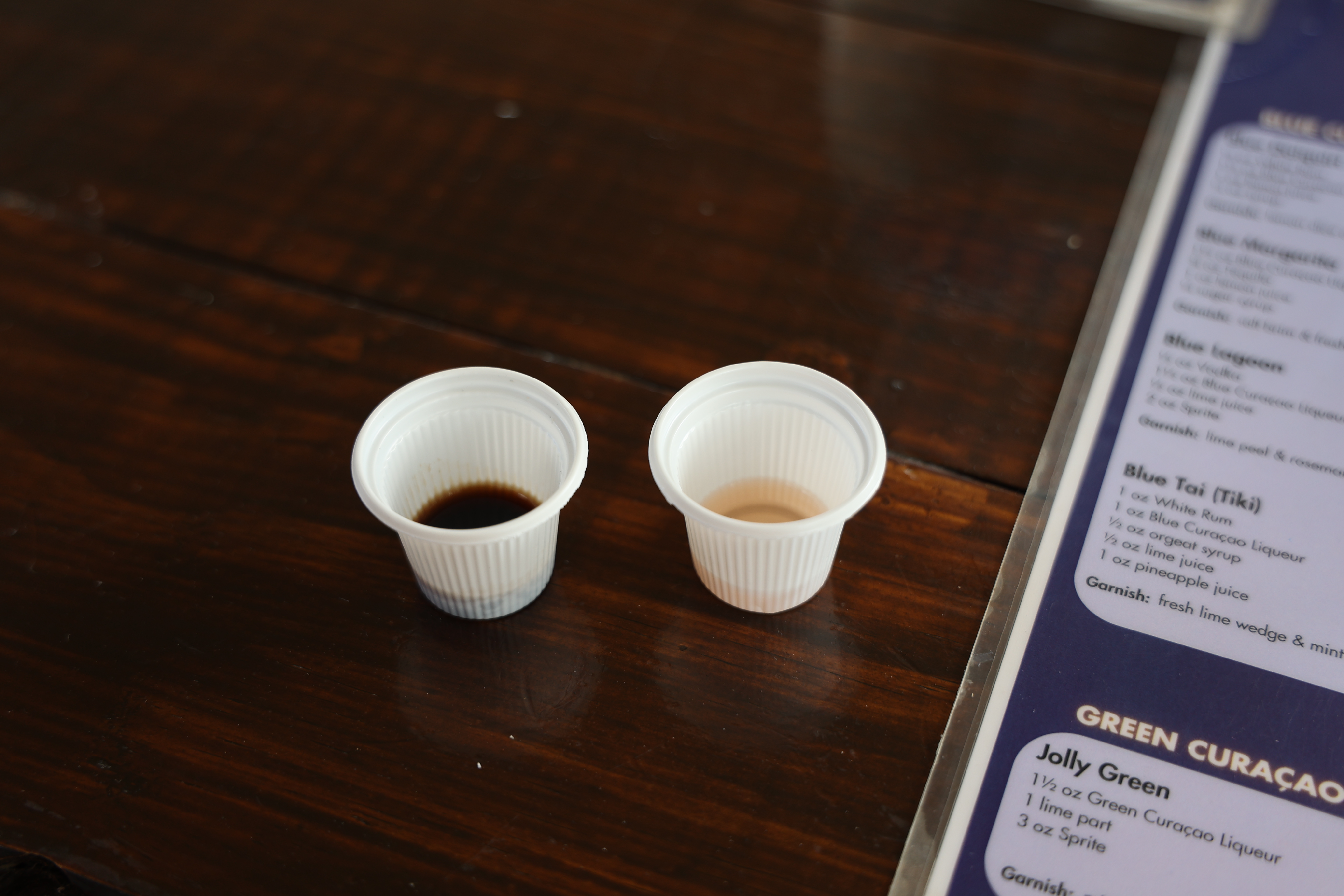 We had a 2 pm reservation at the Chobolobo Distillery, where they make the Blue Curacao liquor. We got there early, checked in, had our courtesy beverage and looked around a bit. Then we had the tour - led by Eli. He was excellent, and explained the whole process and history. The liquor is made from dried Lahara orange peels, and spices from Asia. The bottle itself is manufactured in Spain from recycled glass, made to resemble an orange in both shape and texture. The cork is made in Portugal and the seal is made in the US. The bottle labels are still stuck on by hand. But the liquor is still made in Curacao. The are multiple colors that are the same flavor, but colored differently to make different drinks. There are also additional flavors, including Chocolate, Coffee, Rum-Raisin, and Tamarind. We got to sample them all while we were there. Greta liked the tamarind and the rum-raisin the best and Mike liked the chocolate and coffee flavors. As part of our tour package, we also were presented with many different drink recipes using the Curacao liquors, and then were able to make and drink two. Our tour guide for this part was Imaisha and she was also great. She demonstrated all the tools we may need for making the drinks, how to use a mixing cup, and invited us all up to try out whatever recipes we wanted. Mike made a tamarind mule and a cucumber delight. Greta made the Red Lady Romance and the Tamarind Sunset. It was a LOT of fun! We left with a bottle of the coffee flavor liqour to have in our room.