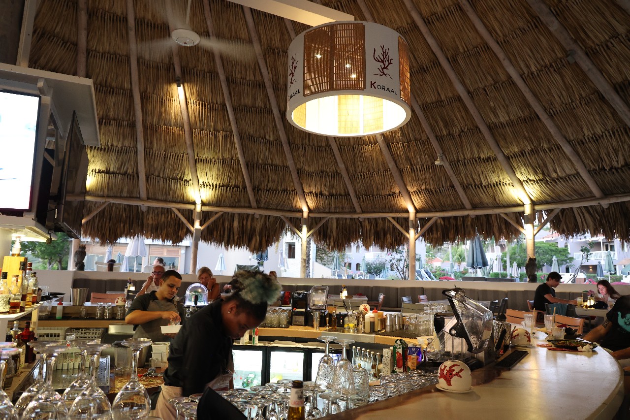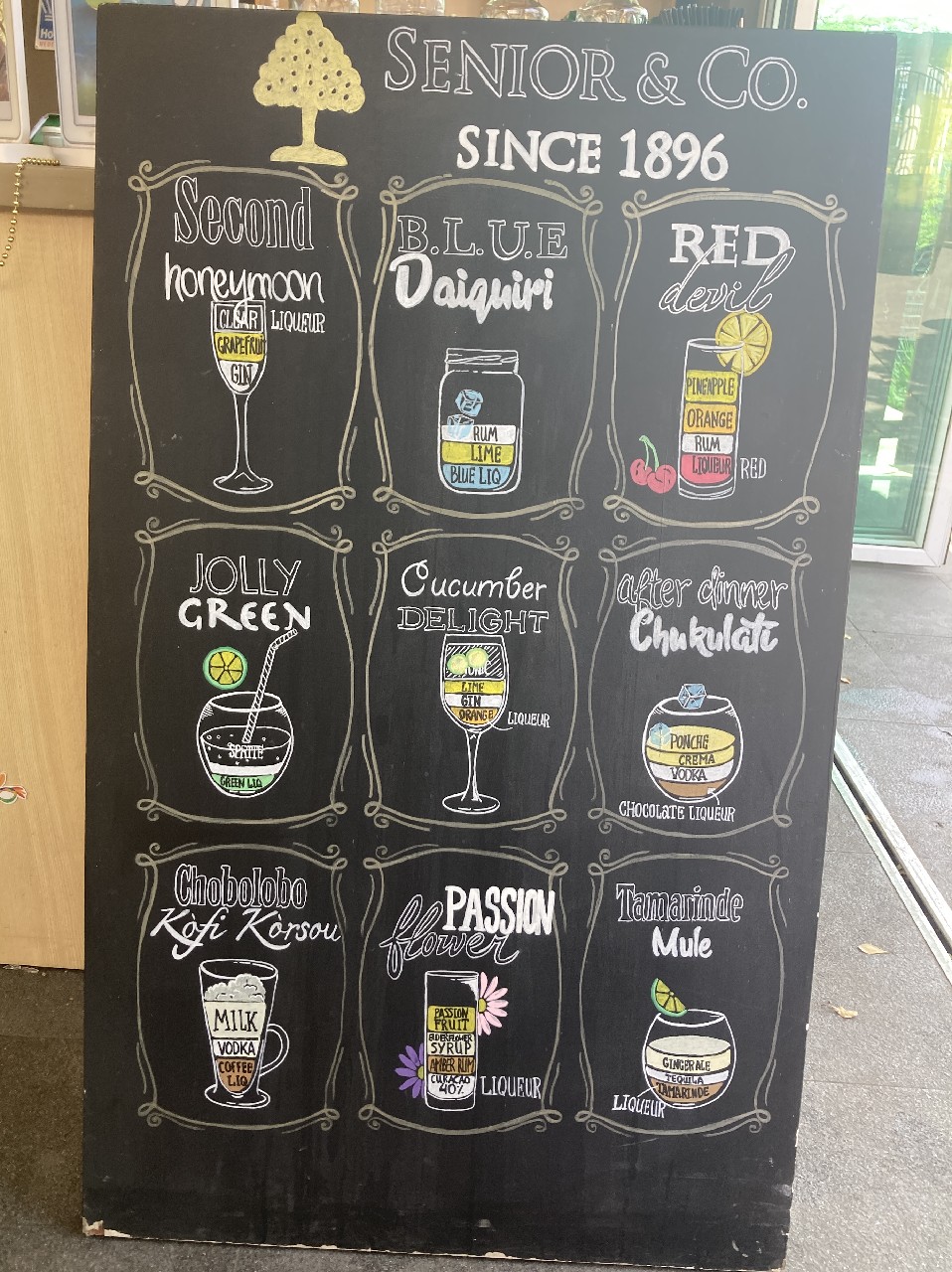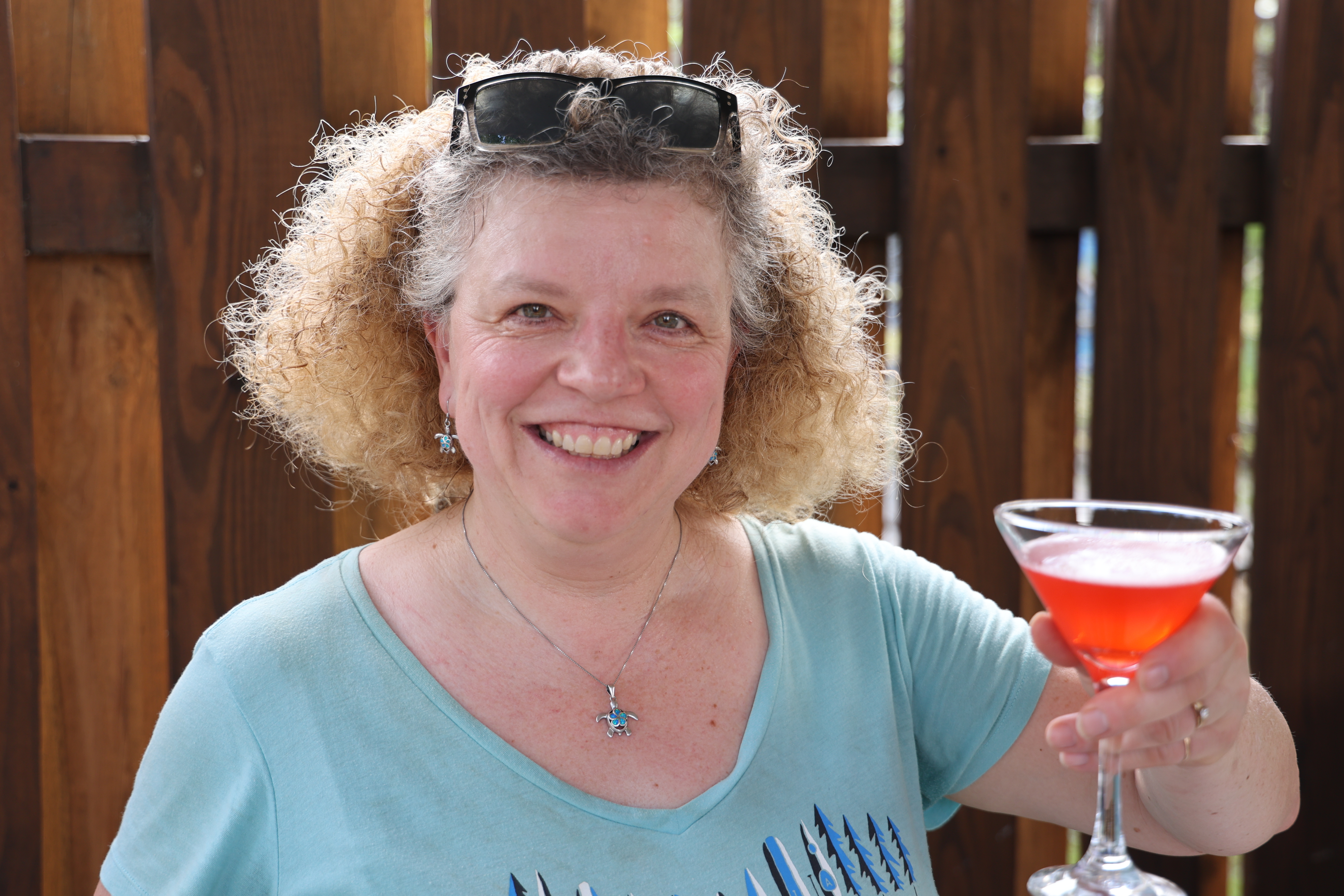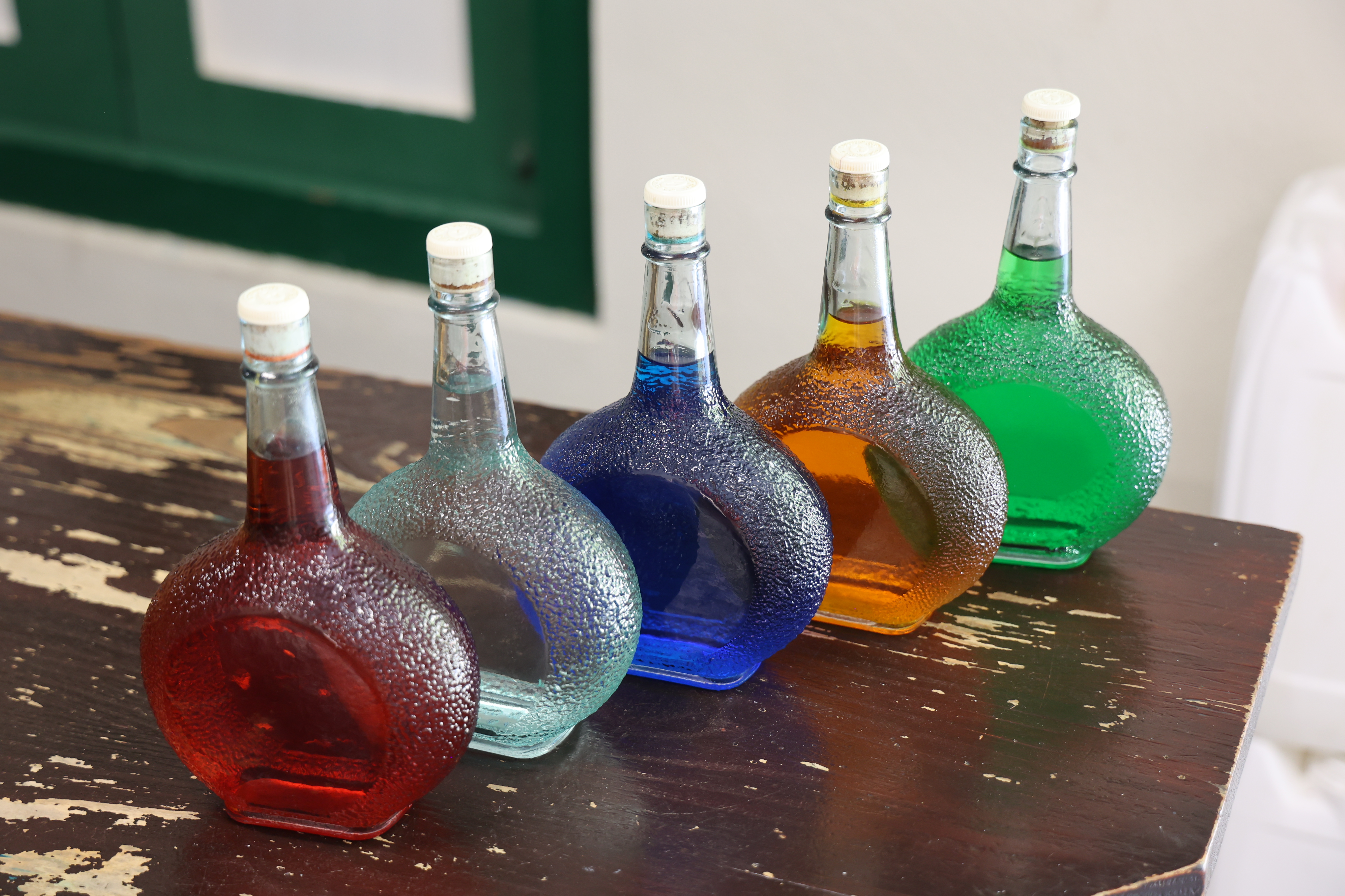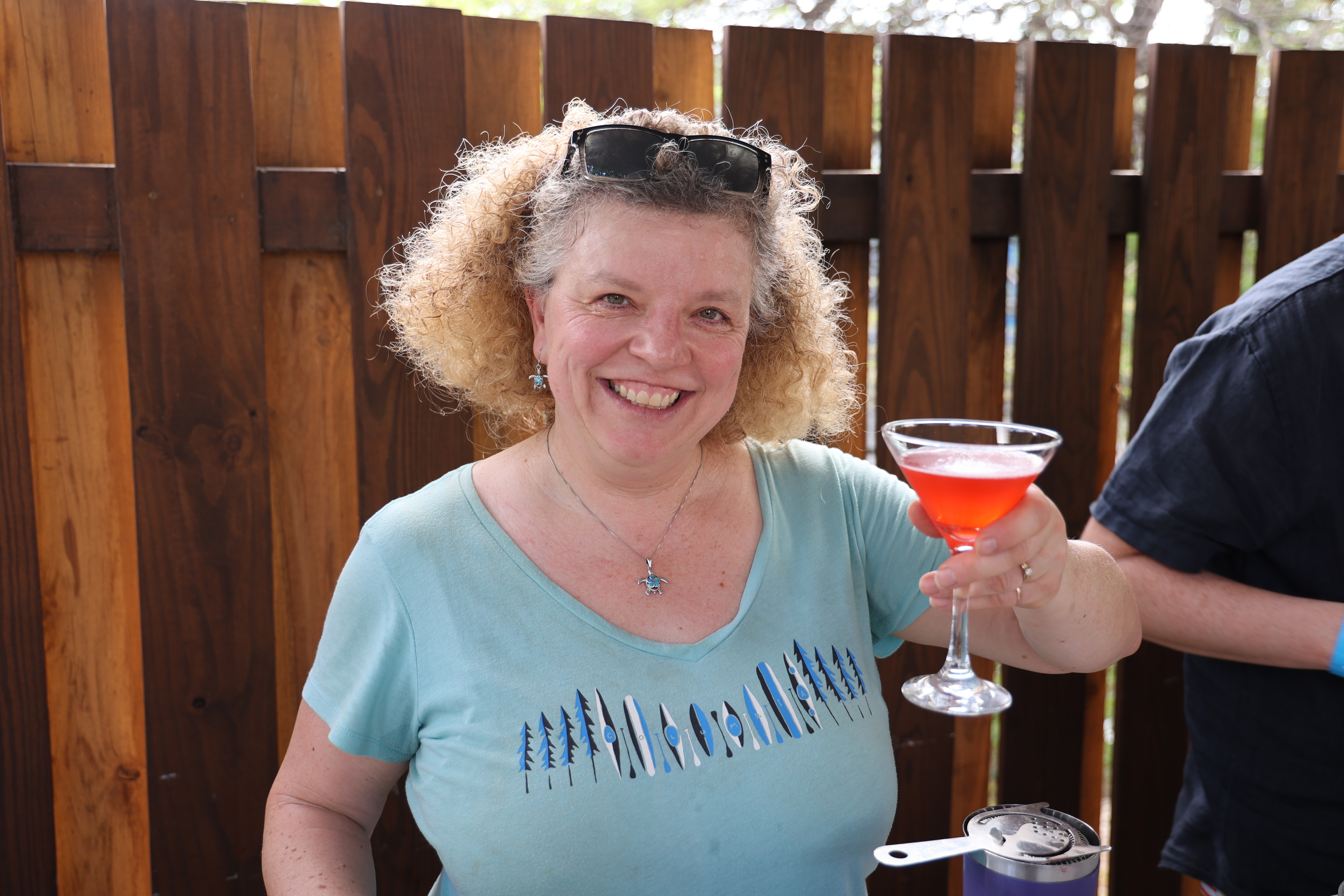 We had a 2 pm reservation at the Chobolobo Distillery, where they make the Blue Curacao liquor. We got there early, checked in, had our courtesy beverage and looked around a bit. Then we had the tour - led by Eli. He was excellent, and explained the whole process and history. The liquor is made from dried Lahara orange peels, and spices from Asia. The bottle itself is manufactured in Spain from recycled glass, made to resemble an orange in both shape and texture. The cork is made in Portugal and the seal is made in the US. The bottle labels are still stuck on by hand. But the liquor is still made in Curacao. The are multiple colors that are the same flavor, but colored differently to make different drinks. There are also additional flavors, including Chocolate, Coffee, Rum-Raisin, and Tamarind. We got to sample them all while we were there. Greta liked the tamarind and the rum-raisin the best and Mike liked the chocolate and coffee flavors. As part of our tour package, we also were presented with many different drink recipes using the Curacao liquors, and then were able to make and drink two. Our tour guide for this part was Imaisha and she was also great. She demonstrated all the tools we may need for making the drinks, how to use a mixing cup, and invited us all up to try out whatever recipes we wanted. Mike made a tamarind mule and a cucumber delight. Greta made the Red Lady Romance and the Tamarind Sunset. It was a LOT of fun! We left with a bottle of the coffee flavor liqour to have in our room.
