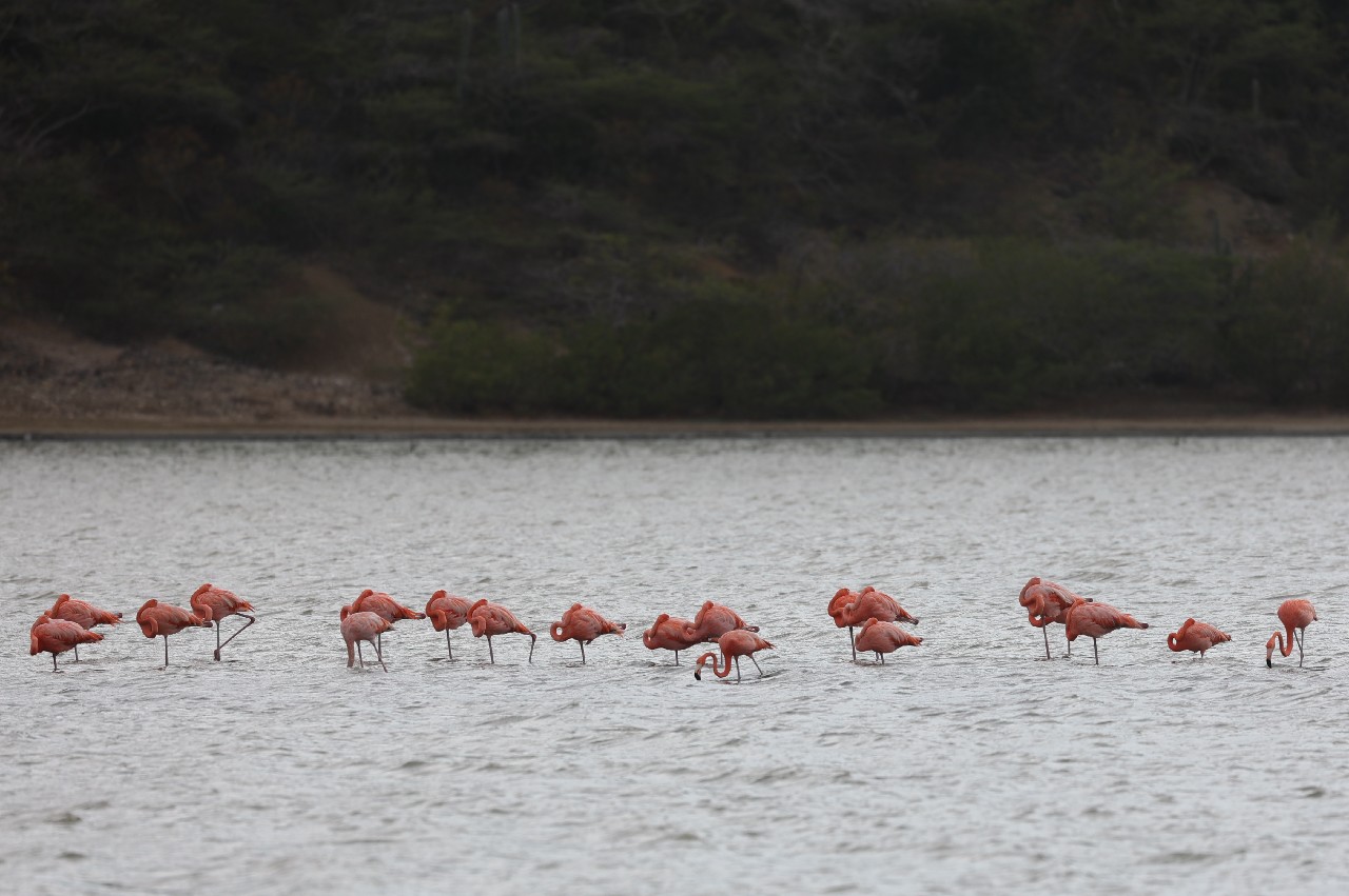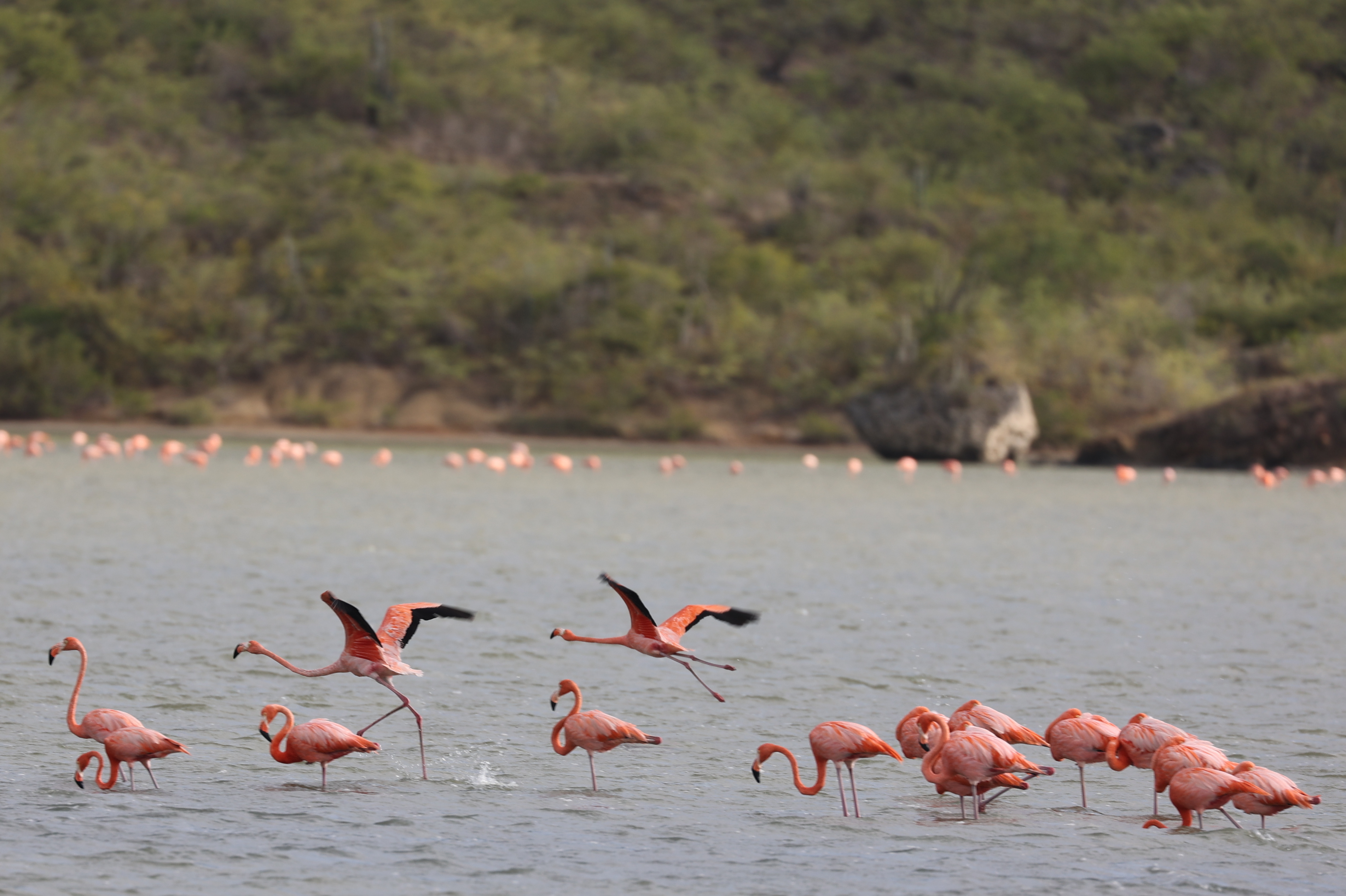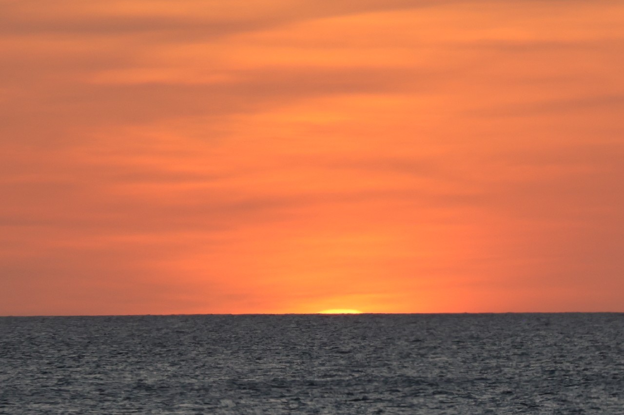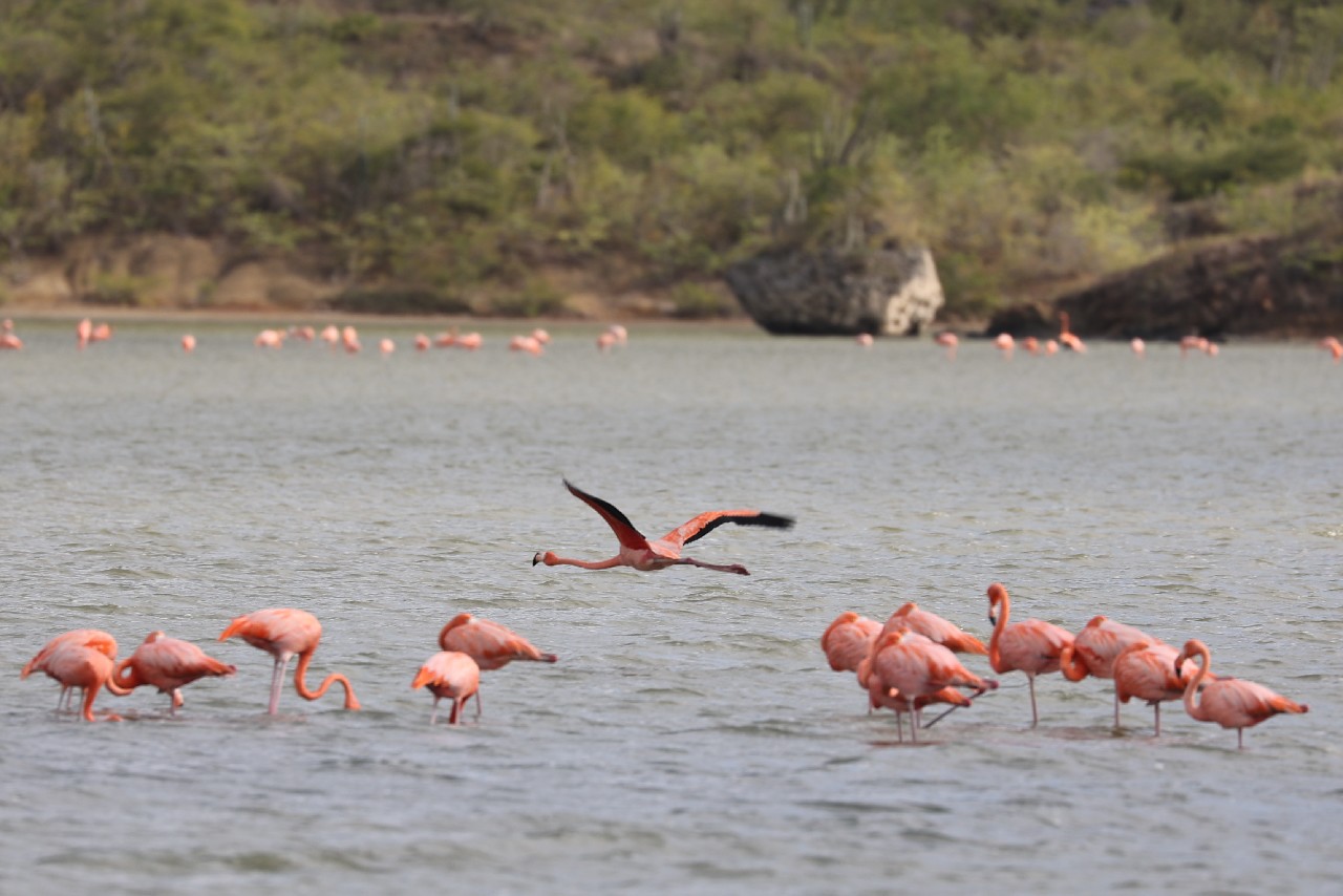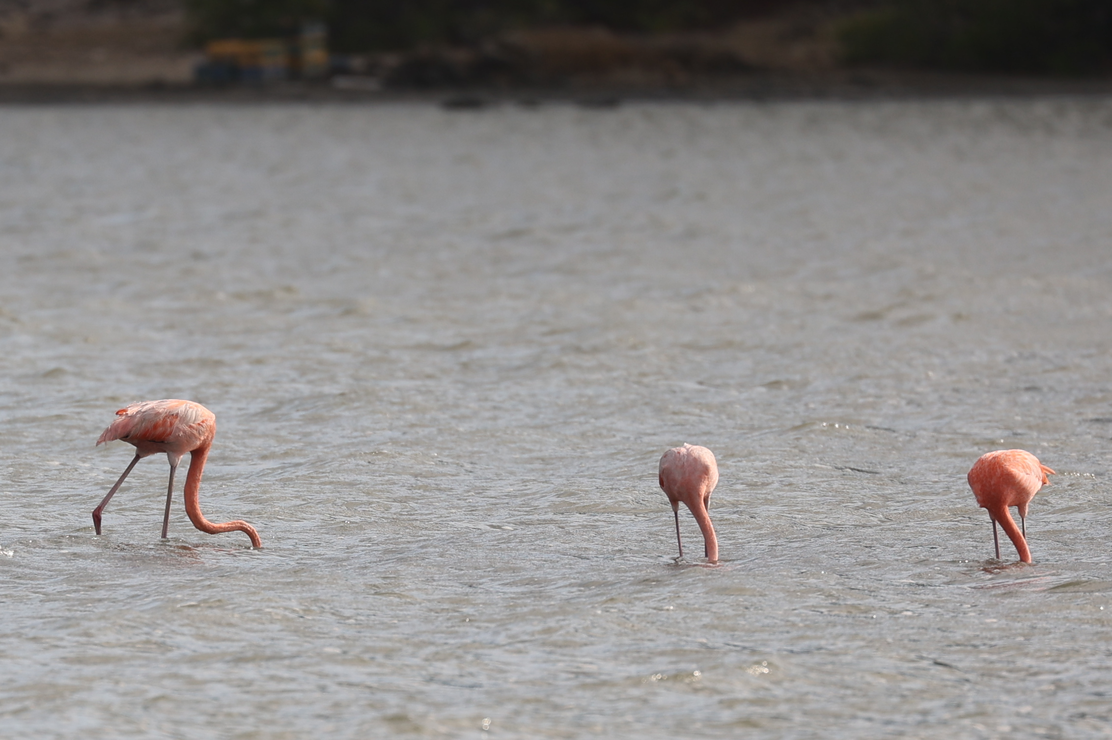 From there, we stopped back at the hotel for a quick moment and then headed back out. We drove up further up the western shoreline, and had to take a picture of the city sign for Sint Michiel - complete with a dog who felt it was an excellent place to wait. We also were able to stop and see a large water inlet where flamingos can be found. And we found them! Most were further off shore, but some were close enough for Mike to get excellent pictures with the zoom lens. We then drove to the shoreline to see the sunset, but that was a couple hours off yet. So we navigated to a place further up the shore (with Google maps that were downloaded offline, we weren't using phone coverage). At one point, we commmented how the road looked brand new or at least newly paved. Then after by-passing the turn off for a gated community, we realized we were driving "off the map". Apparently the road was so new, it was not yet on Google. We turned around and drove toward the gated community - that happened to be where the sea-front restaraunt was located. We had to stop at a guard shack but after explaining we were headed for the restaurant, they waved us through. There was parking and pictures of condos for sale, and houses you could build and buy. They were NOT cheap to say the least! We walked down to the shoreline and looked at the water for a bit. The restaurant there was rather expensive and we weren't quite ready for dinner yet. We walked back up the stairs to Koraal Rooftop Terrace, and had a couple of beers and bitterballen. From there we watched the sunset - perfect.