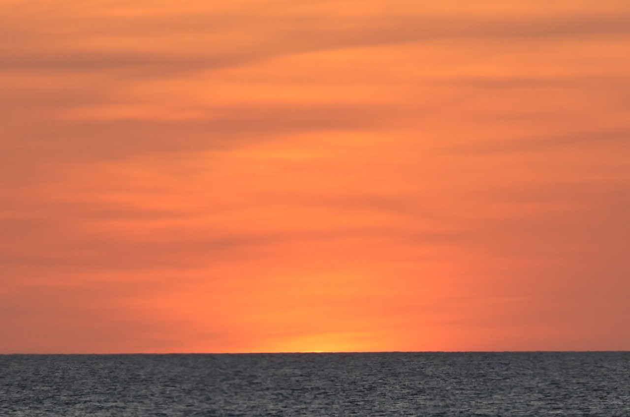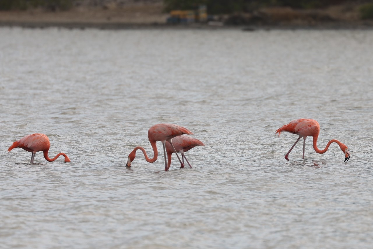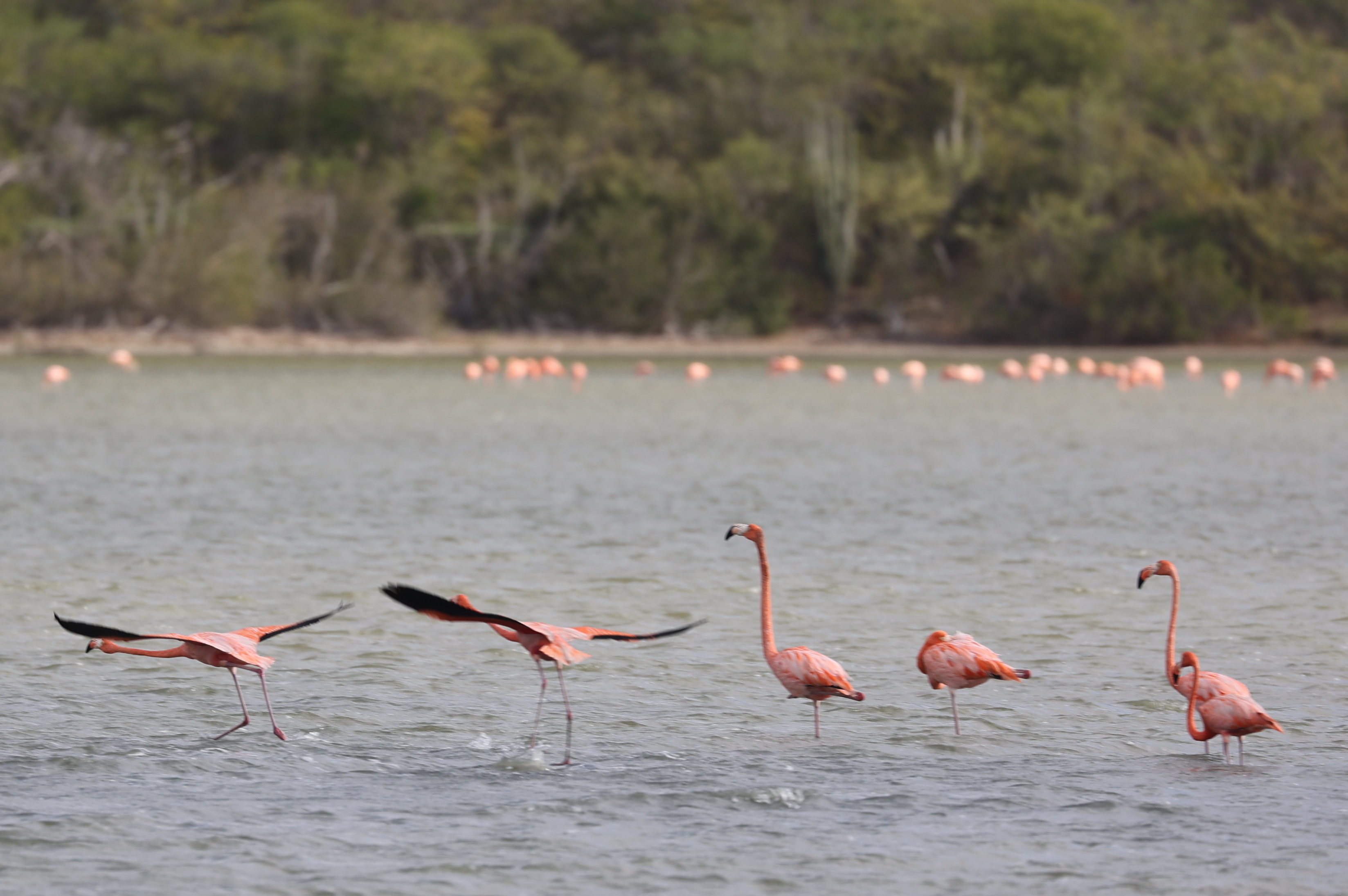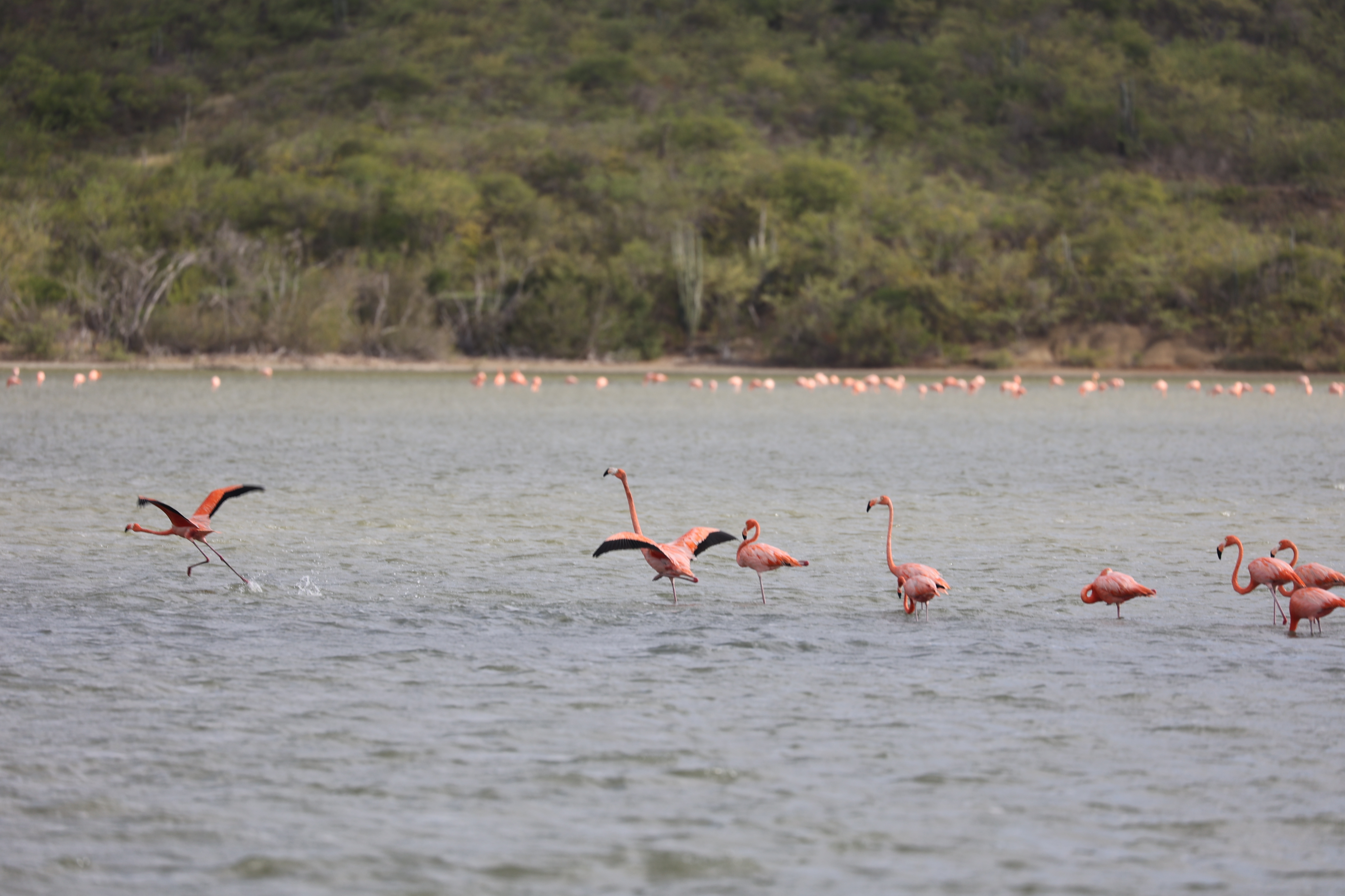 From there, we stopped back at the hotel for a quick moment and then headed back out. We drove up further up the western shoreline, and had to take a picture of the city sign for Sint Michiel - complete with a dog who felt it was an excellent place to wait. We also were able to stop and see a large water inlet where flamingos can be found. And we found them! Most were further off shore, but some were close enough for Mike to get excellent pictures with the zoom lens. We then drove to the shoreline to see the sunset, but that was a couple hours off yet. So we navigated to a place further up the shore (with Google maps that were downloaded offline, we weren't using phone coverage). At one point, we commmented how the road looked brand new or at least newly paved. Then after by-passing the turn off for a gated community, we realized we were driving "off the map". Apparently the road was so new, it was not yet on Google. We turned around and drove toward the gated community - that happened to be where the sea-front restaraunt was located. We had to stop at a guard shack but after explaining we were headed for the restaurant, they waved us through. There was parking and pictures of condos for sale, and houses you could build and buy. They were NOT cheap to say the least! We walked down to the shoreline and looked at the water for a bit. The restaurant there was rather expensive and we weren't quite ready for dinner yet. We walked back up the stairs to Koraal Rooftop Terrace, and had a couple of beers and bitterballen. From there we watched the sunset - perfect.
