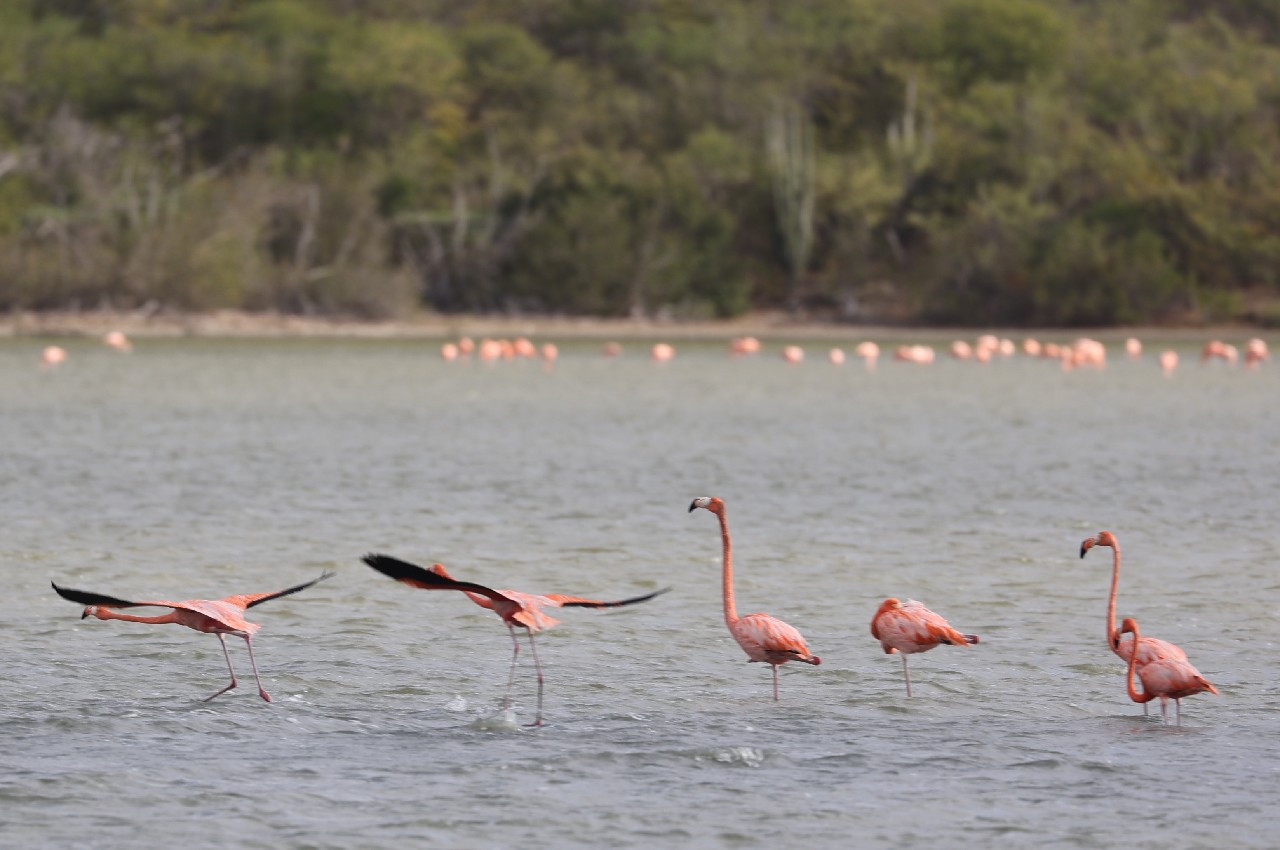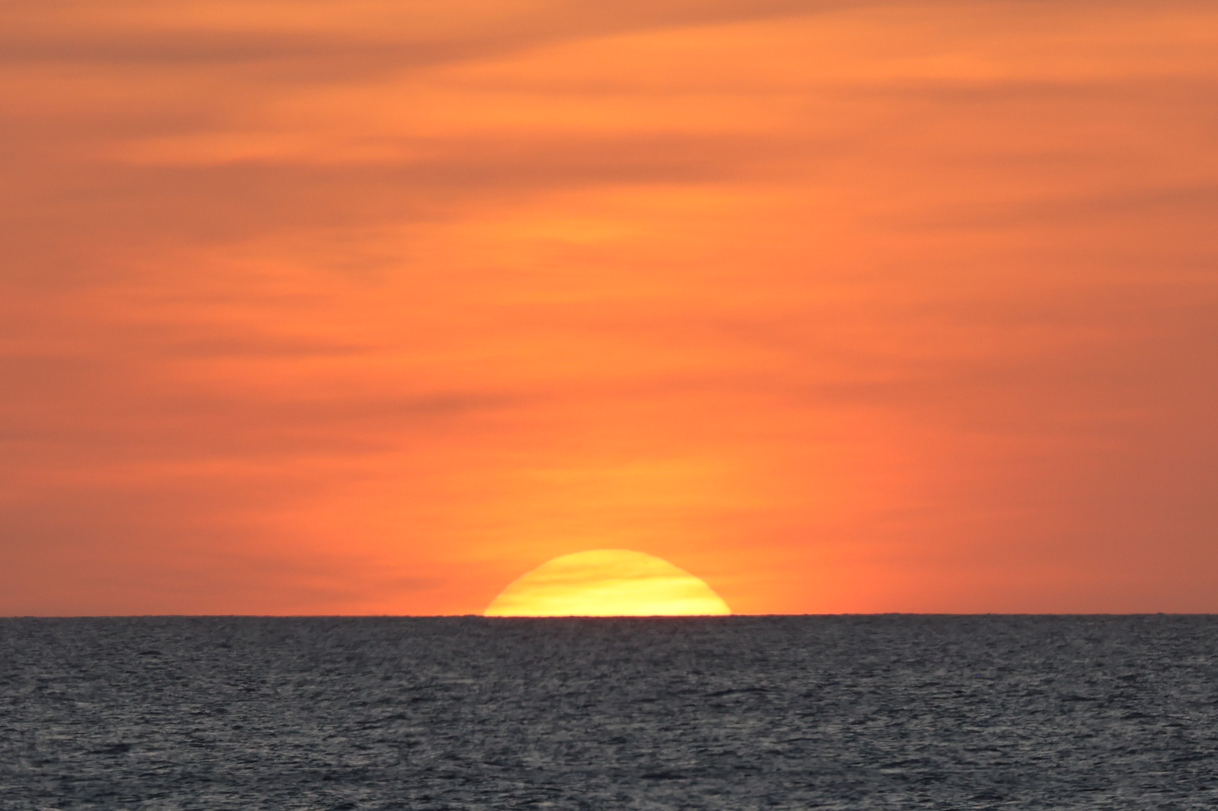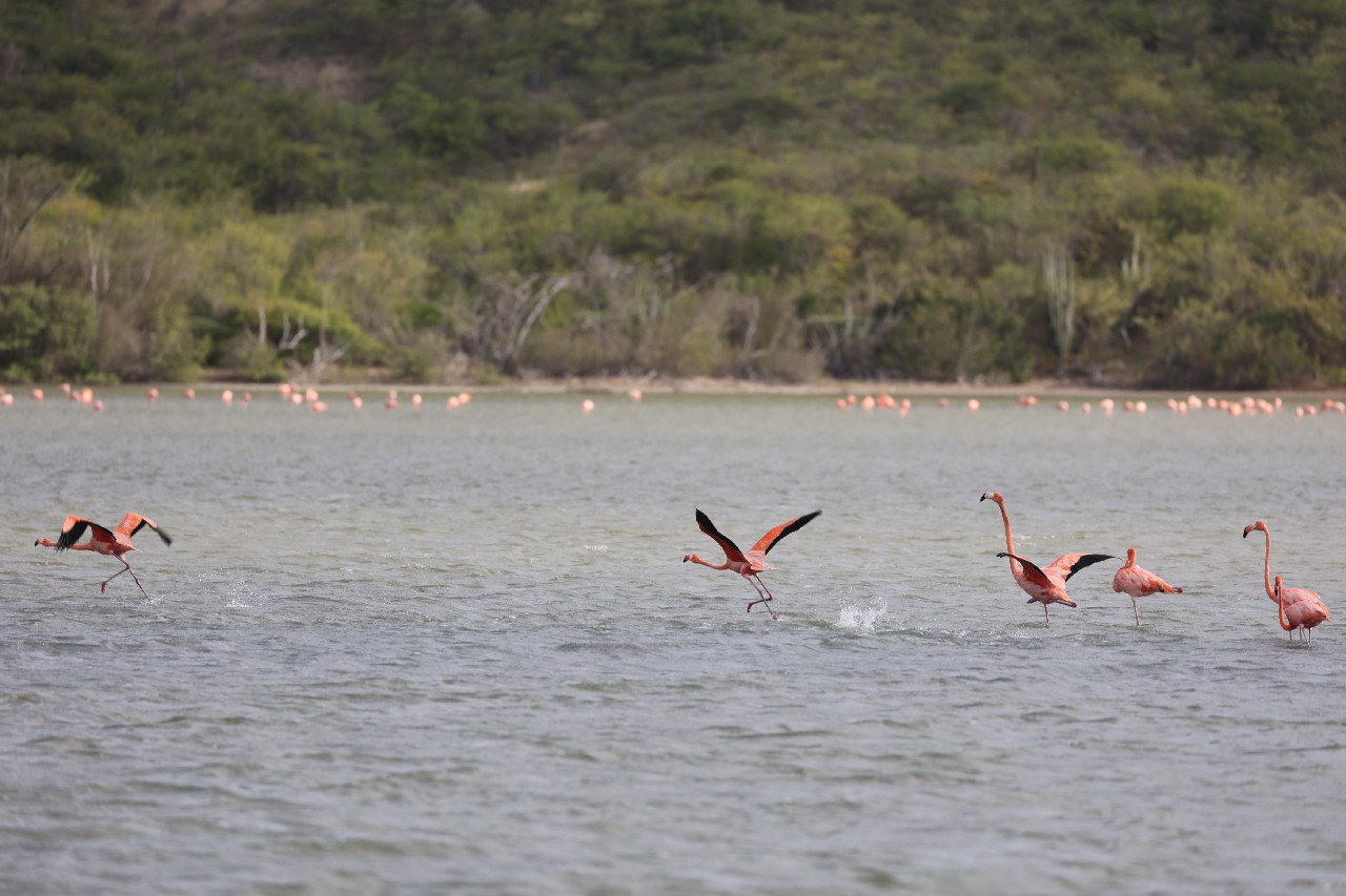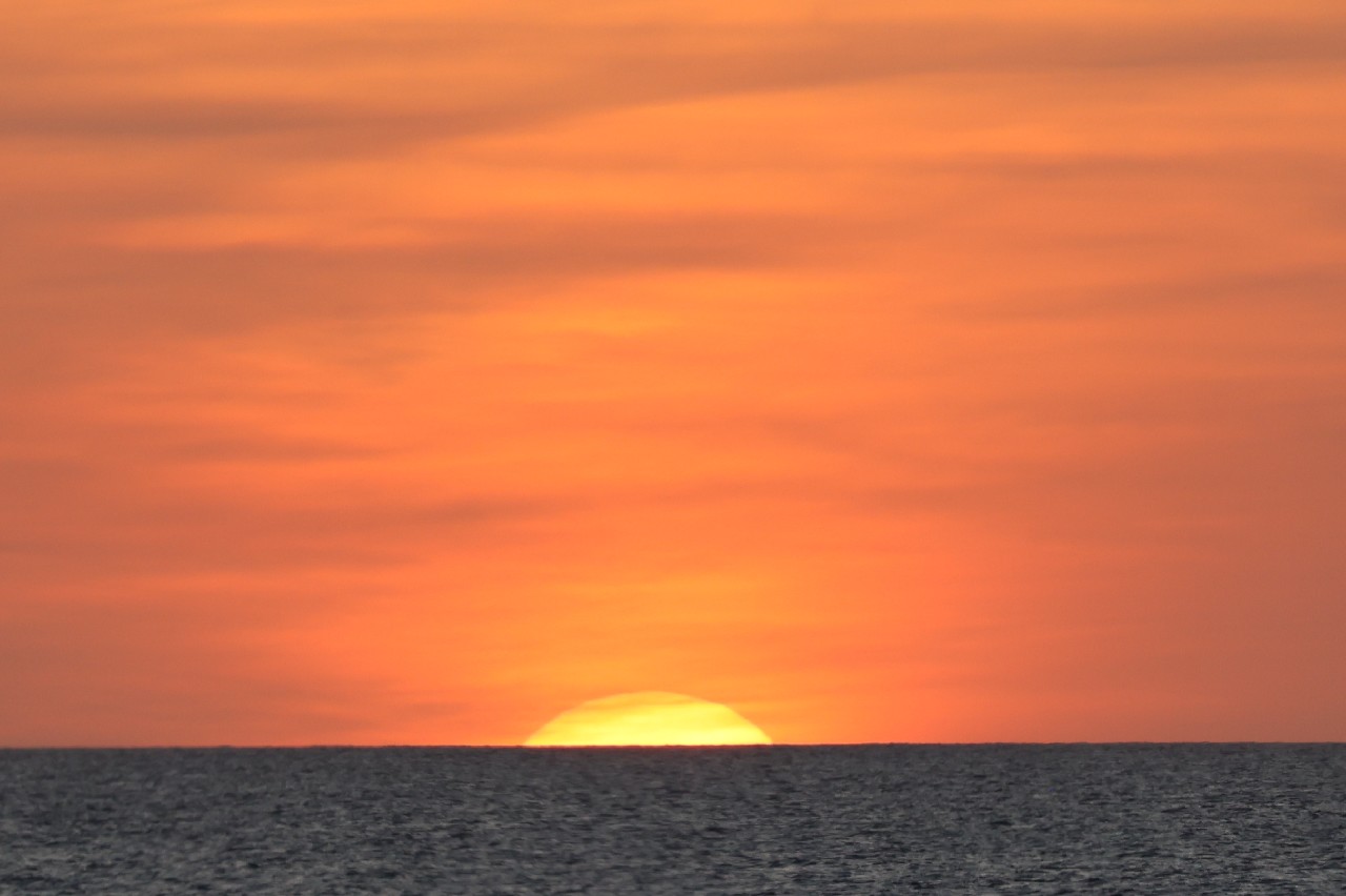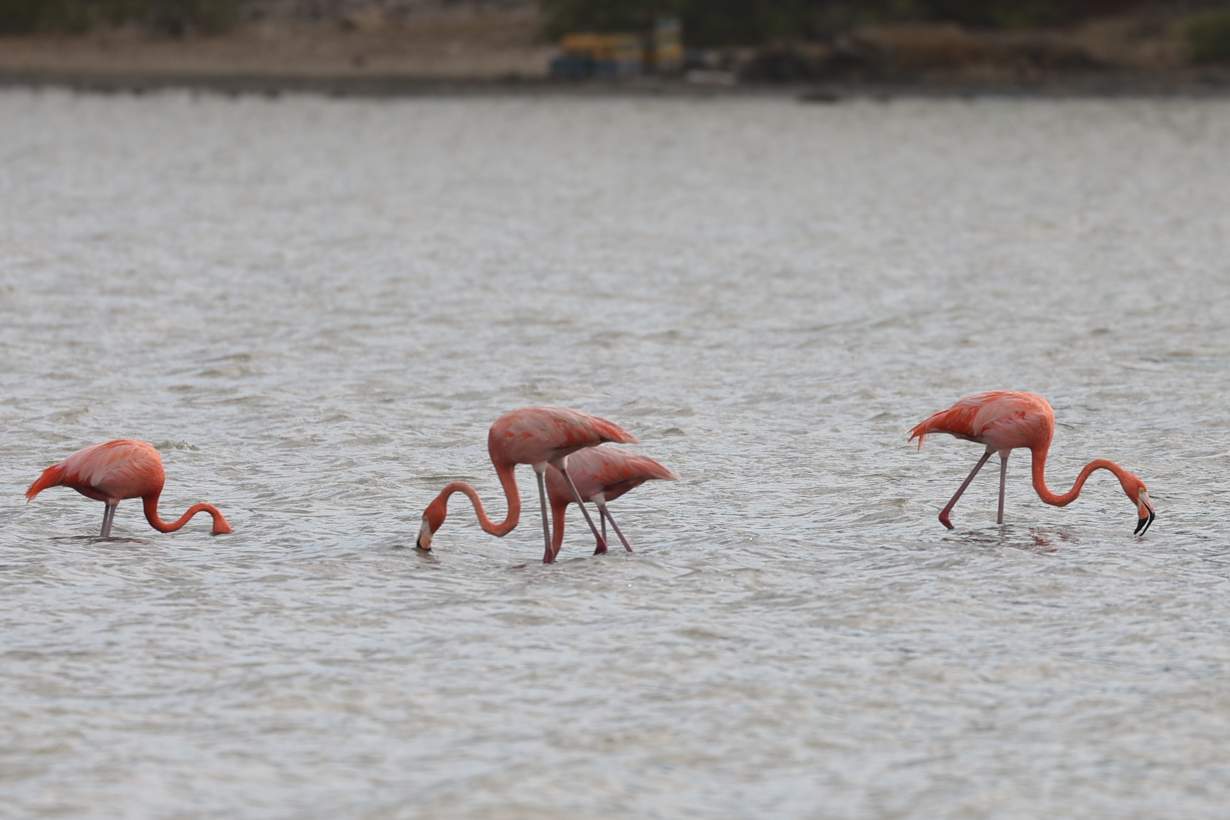 From there, we stopped back at the hotel for a quick moment and then headed back out. We drove up further up the western shoreline, and had to take a picture of the city sign for Sint Michiel - complete with a dog who felt it was an excellent place to wait. We also were able to stop and see a large water inlet where flamingos can be found. And we found them! Most were further off shore, but some were close enough for Mike to get excellent pictures with the zoom lens. We then drove to the shoreline to see the sunset, but that was a couple hours off yet. So we navigated to a place further up the shore (with Google maps that were downloaded offline, we weren't using phone coverage). At one point, we commmented how the road looked brand new or at least newly paved. Then after by-passing the turn off for a gated community, we realized we were driving "off the map". Apparently the road was so new, it was not yet on Google. We turned around and drove toward the gated community - that happened to be where the sea-front restaraunt was located. We had to stop at a guard shack but after explaining we were headed for the restaurant, they waved us through. There was parking and pictures of condos for sale, and houses you could build and buy. They were NOT cheap to say the least! We walked down to the shoreline and looked at the water for a bit. The restaurant there was rather expensive and we weren't quite ready for dinner yet. We walked back up the stairs to Koraal Rooftop Terrace, and had a couple of beers and bitterballen. From there we watched the sunset - perfect.