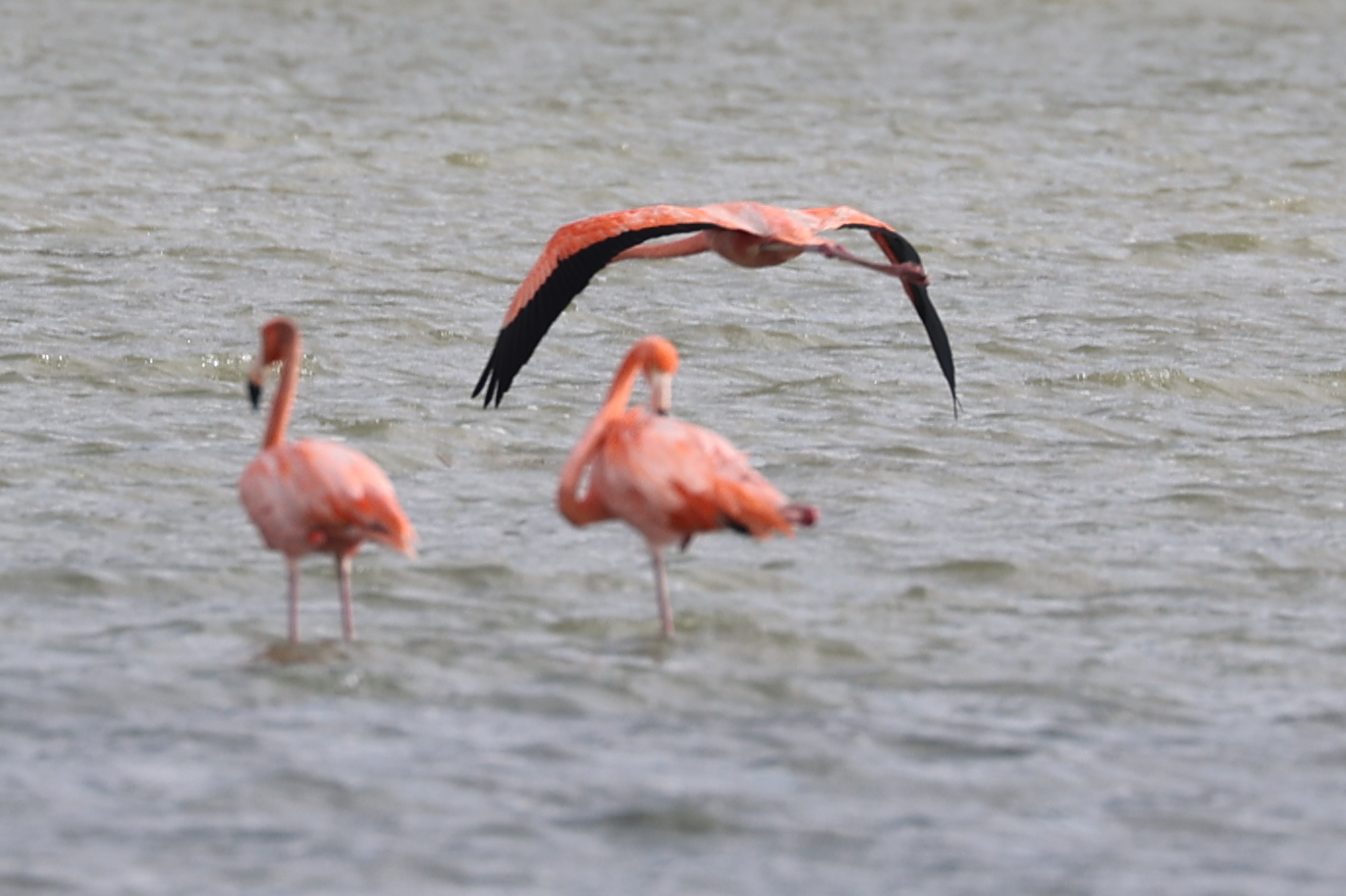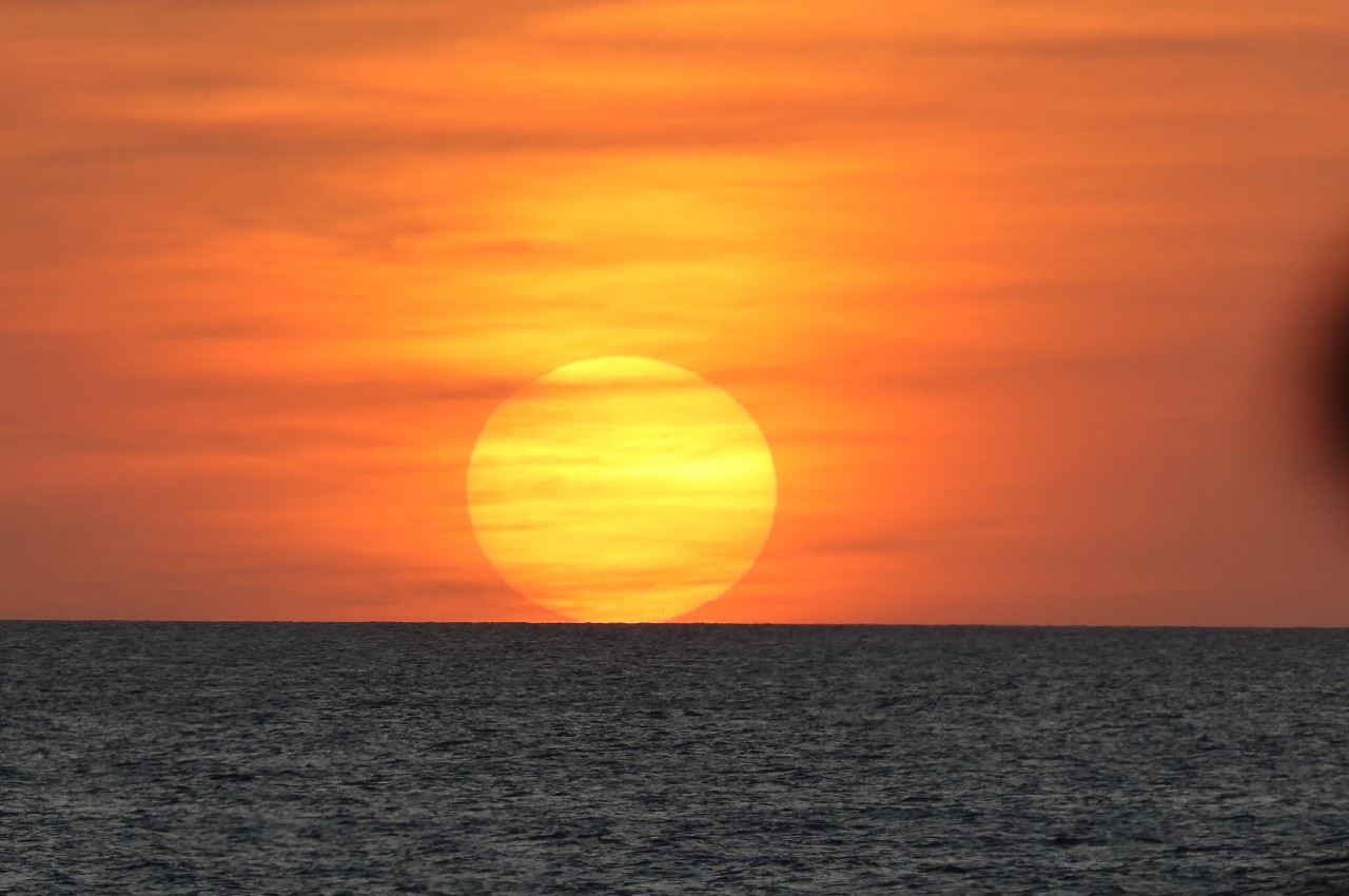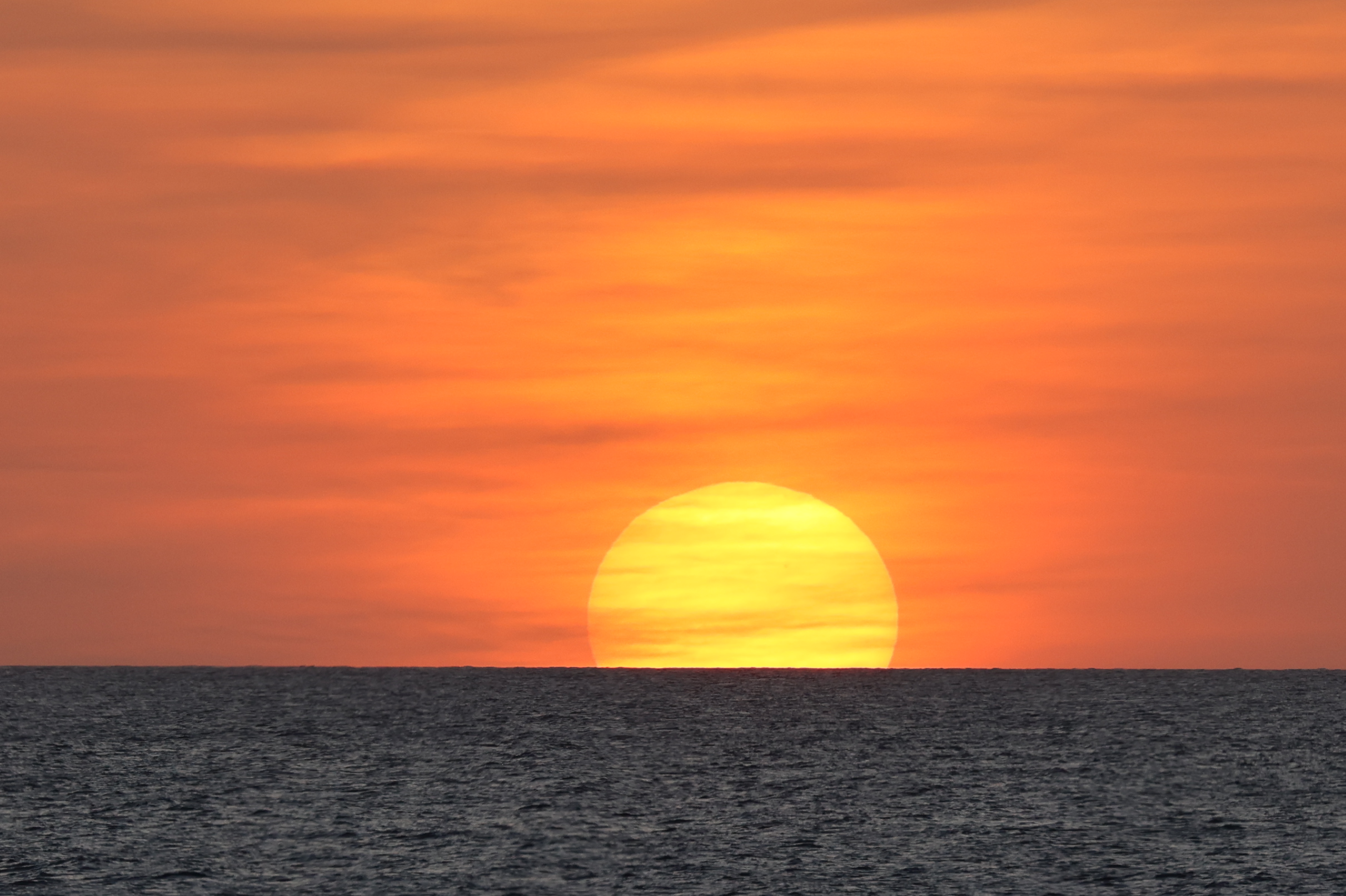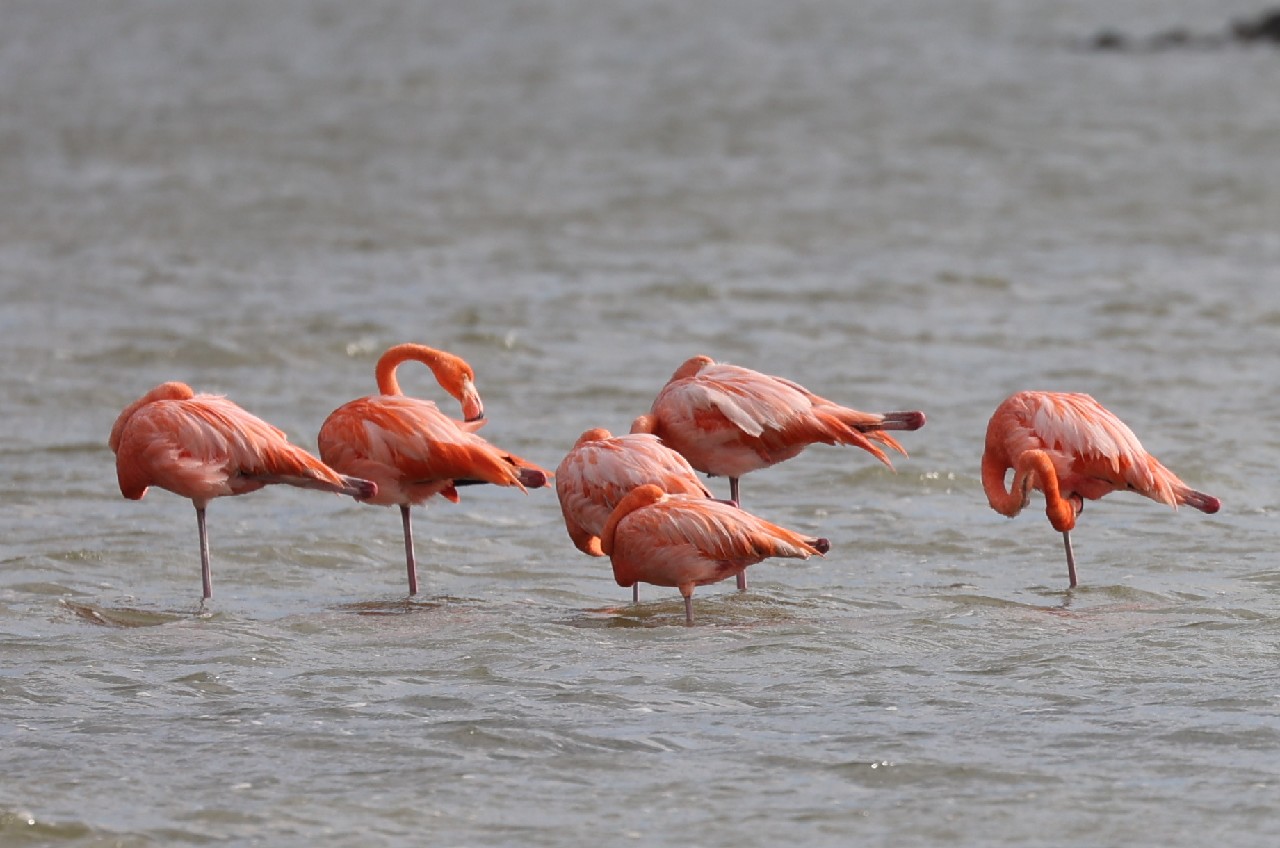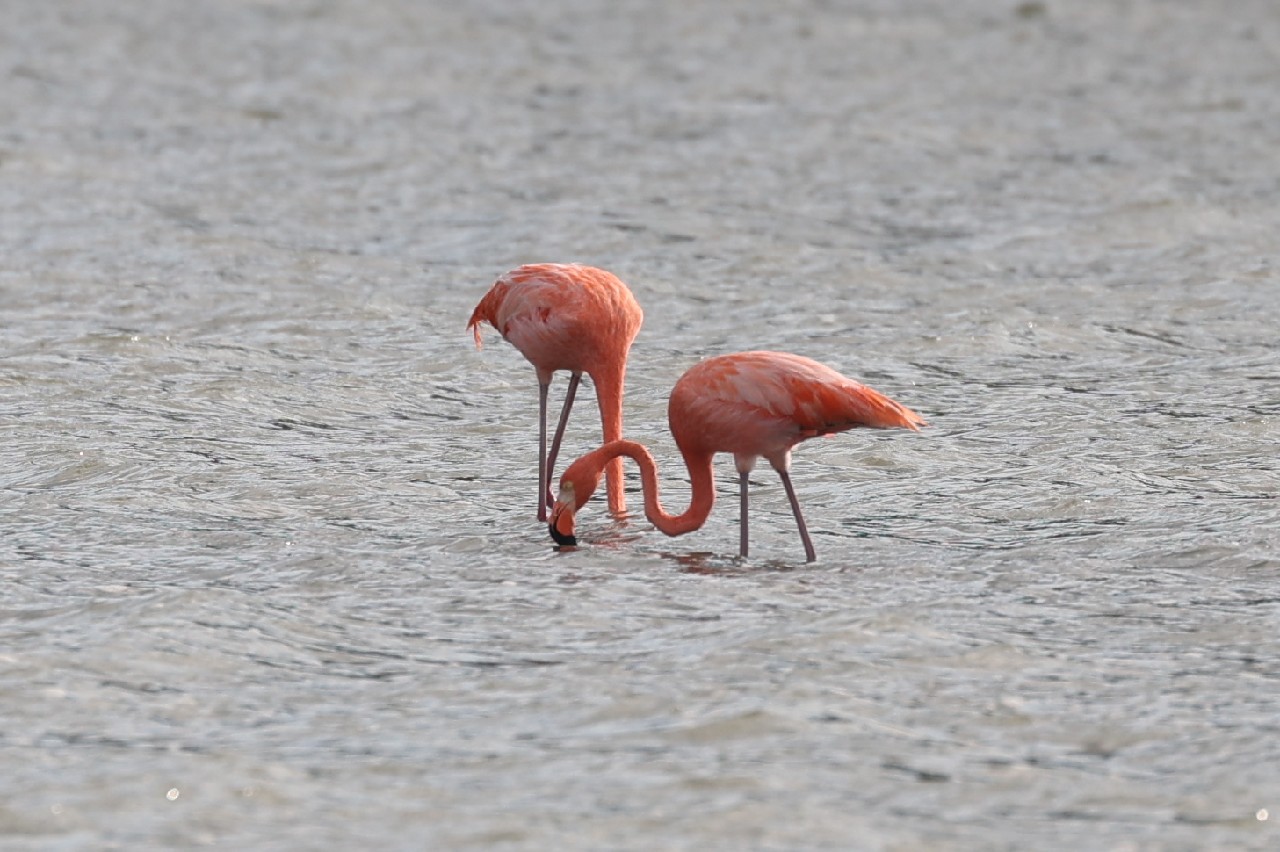 From there, we stopped back at the hotel for a quick moment and then headed back out. We drove up further up the western shoreline, and had to take a picture of the city sign for Sint Michiel - complete with a dog who felt it was an excellent place to wait. We also were able to stop and see a large water inlet where flamingos can be found. And we found them! Most were further off shore, but some were close enough for Mike to get excellent pictures with the zoom lens. We then drove to the shoreline to see the sunset, but that was a couple hours off yet. So we navigated to a place further up the shore (with Google maps that were downloaded offline, we weren't using phone coverage). At one point, we commmented how the road looked brand new or at least newly paved. Then after by-passing the turn off for a gated community, we realized we were driving "off the map". Apparently the road was so new, it was not yet on Google. We turned around and drove toward the gated community - that happened to be where the sea-front restaraunt was located. We had to stop at a guard shack but after explaining we were headed for the restaurant, they waved us through. There was parking and pictures of condos for sale, and houses you could build and buy. They were NOT cheap to say the least! We walked down to the shoreline and looked at the water for a bit. The restaurant there was rather expensive and we weren't quite ready for dinner yet. We walked back up the stairs to Koraal Rooftop Terrace, and had a couple of beers and bitterballen. From there we watched the sunset - perfect.