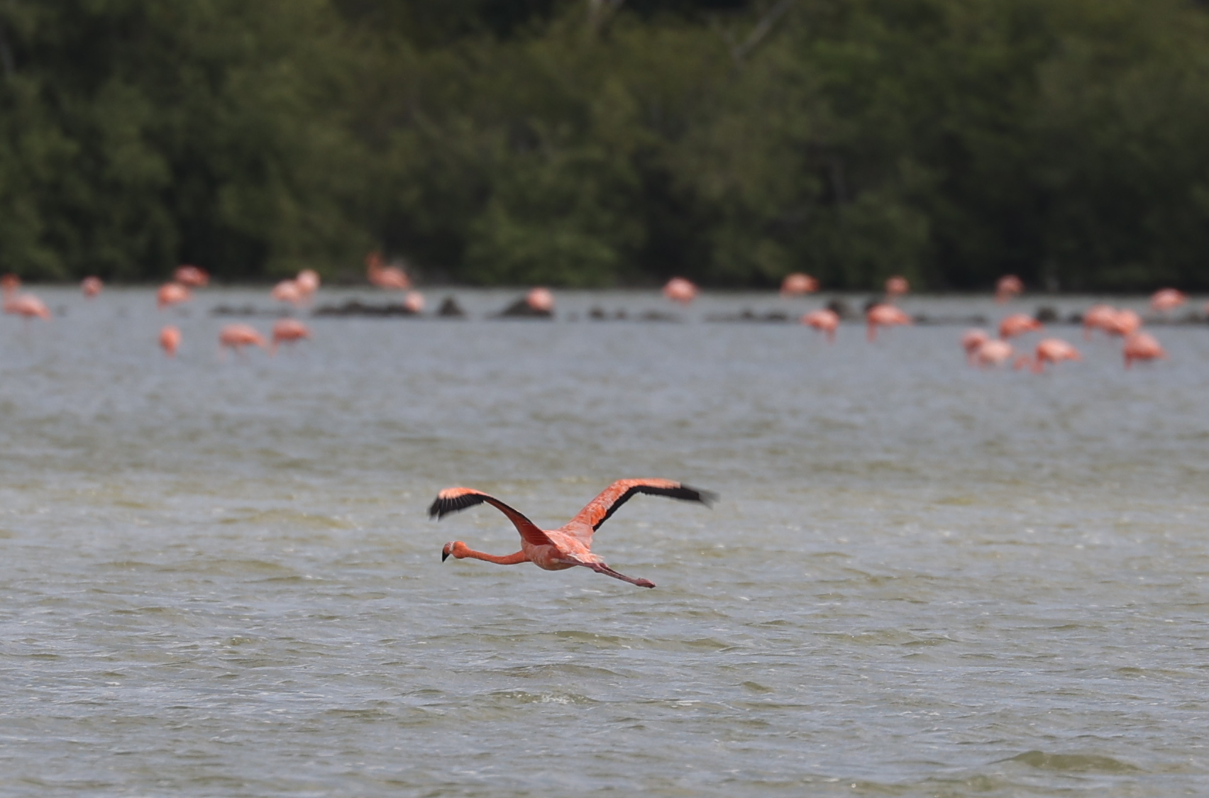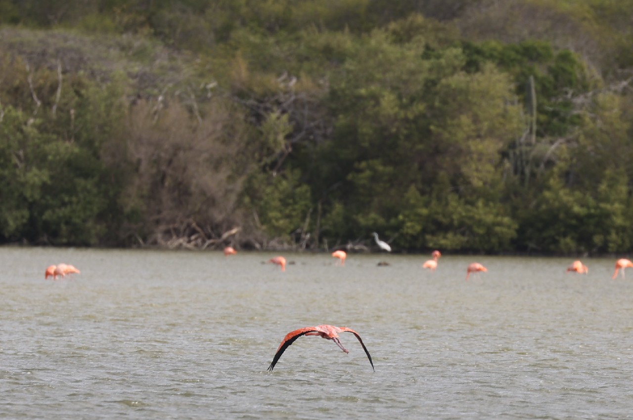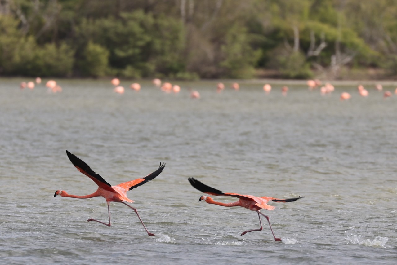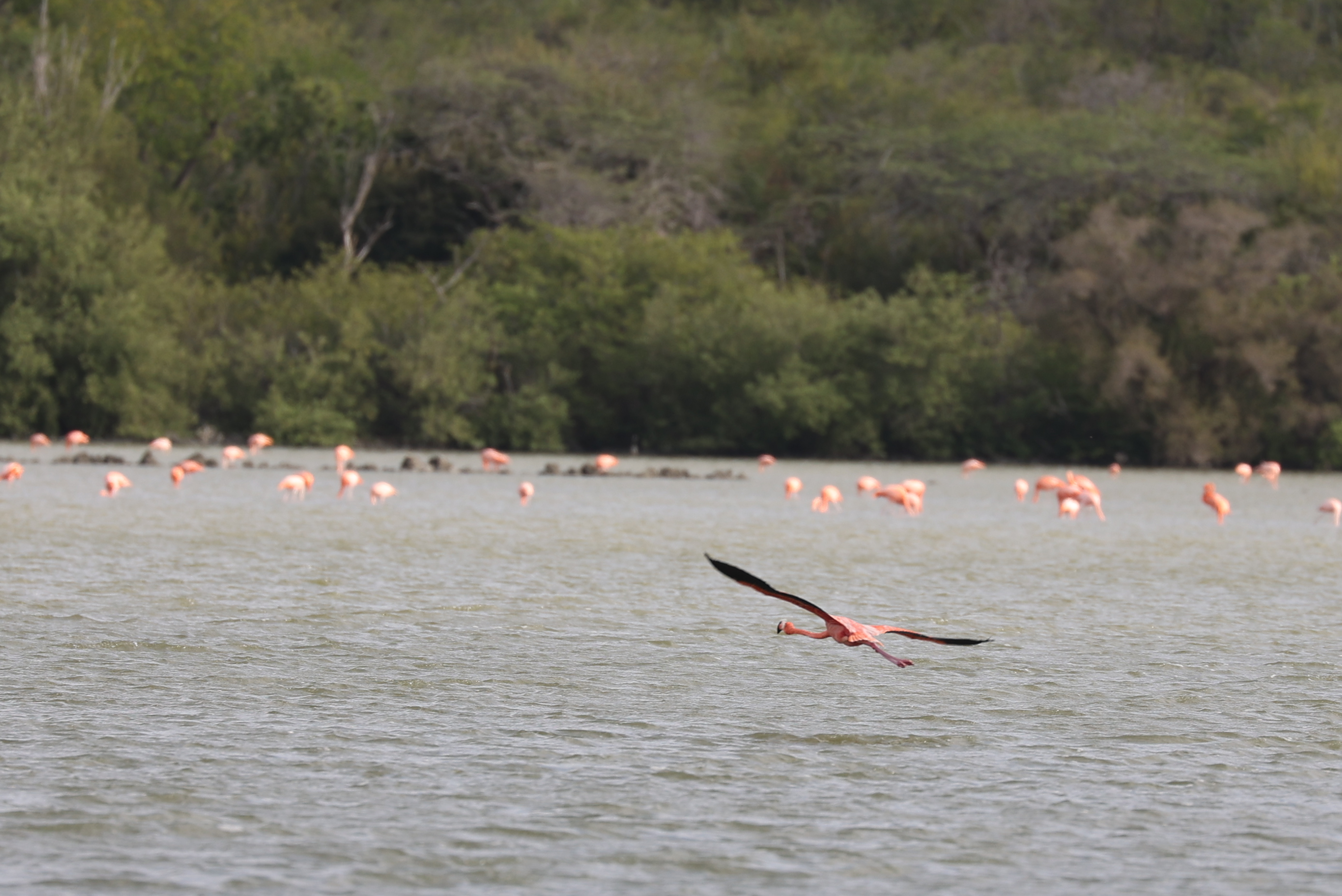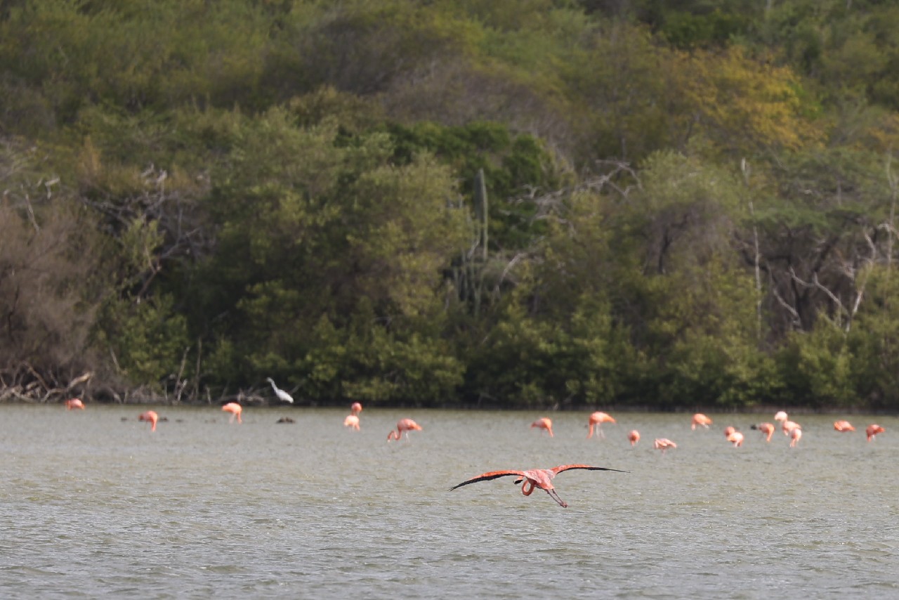 From there, we stopped back at the hotel for a quick moment and then headed back out. We drove up further up the western shoreline, and had to take a picture of the city sign for Sint Michiel - complete with a dog who felt it was an excellent place to wait. We also were able to stop and see a large water inlet where flamingos can be found. And we found them! Most were further off shore, but some were close enough for Mike to get excellent pictures with the zoom lens. We then drove to the shoreline to see the sunset, but that was a couple hours off yet. So we navigated to a place further up the shore (with Google maps that were downloaded offline, we weren't using phone coverage). At one point, we commmented how the road looked brand new or at least newly paved. Then after by-passing the turn off for a gated community, we realized we were driving "off the map". Apparently the road was so new, it was not yet on Google. We turned around and drove toward the gated community - that happened to be where the sea-front restaraunt was located. We had to stop at a guard shack but after explaining we were headed for the restaurant, they waved us through. There was parking and pictures of condos for sale, and houses you could build and buy. They were NOT cheap to say the least! We walked down to the shoreline and looked at the water for a bit. The restaurant there was rather expensive and we weren't quite ready for dinner yet. We walked back up the stairs to Koraal Rooftop Terrace, and had a couple of beers and bitterballen. From there we watched the sunset - perfect.