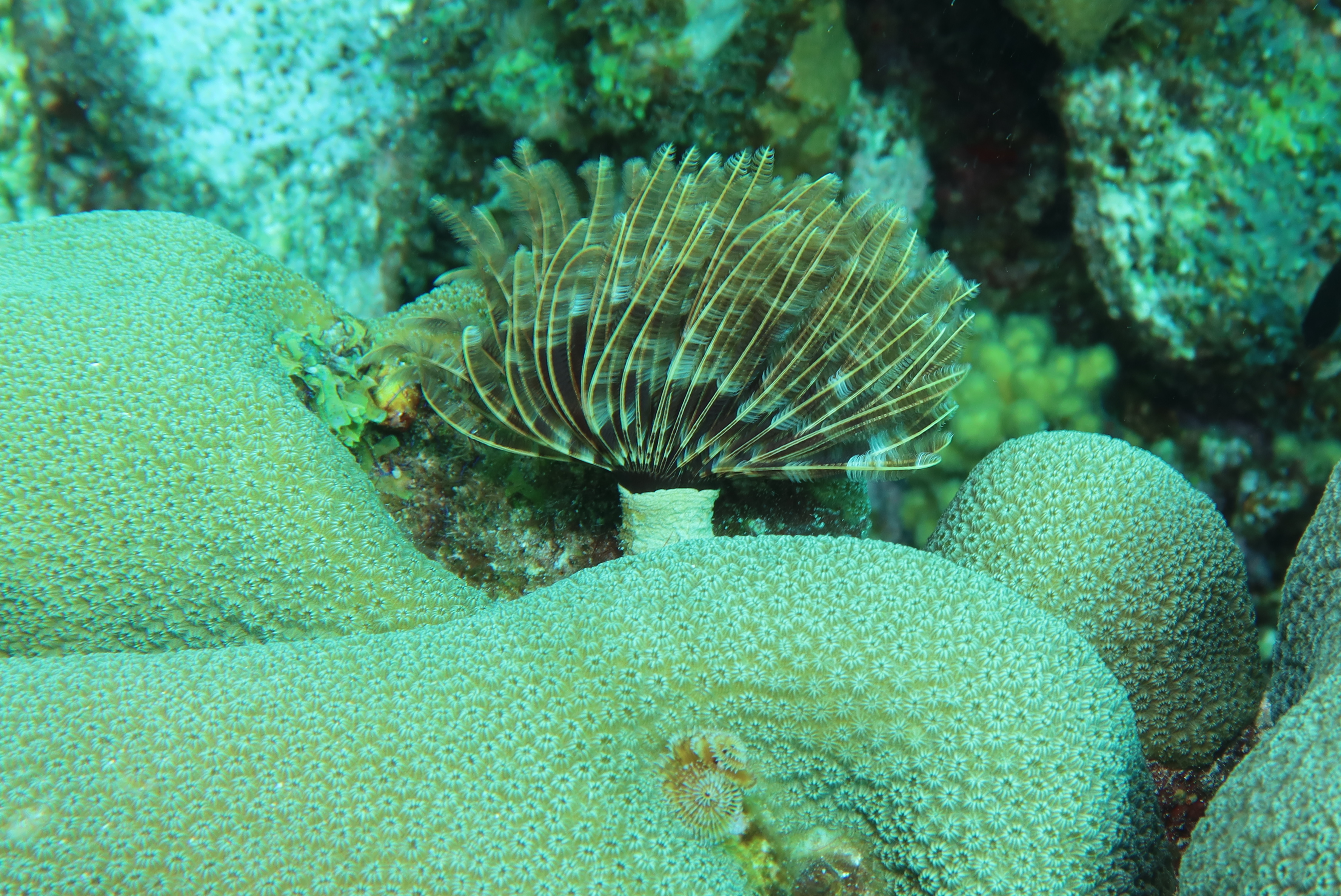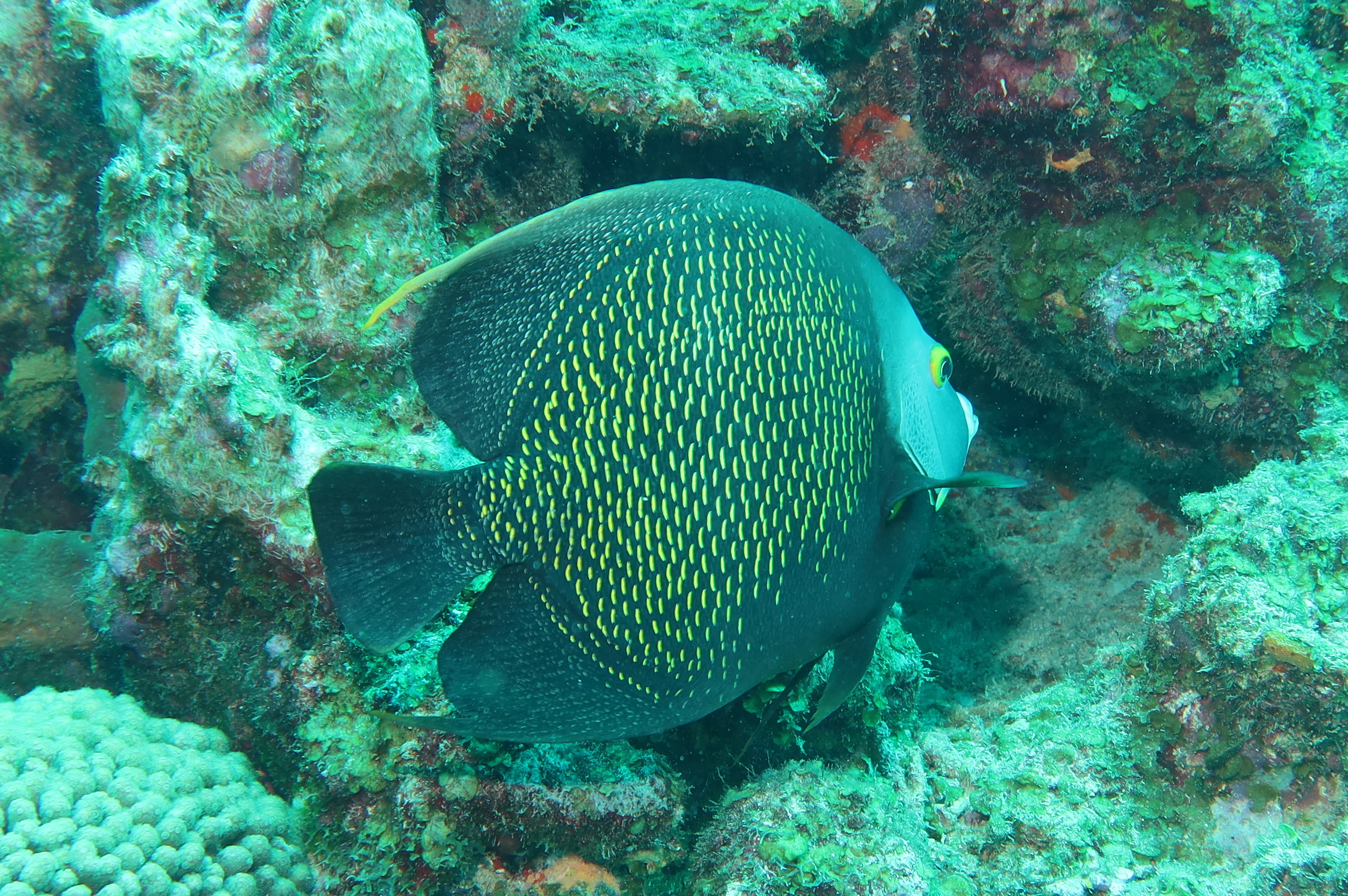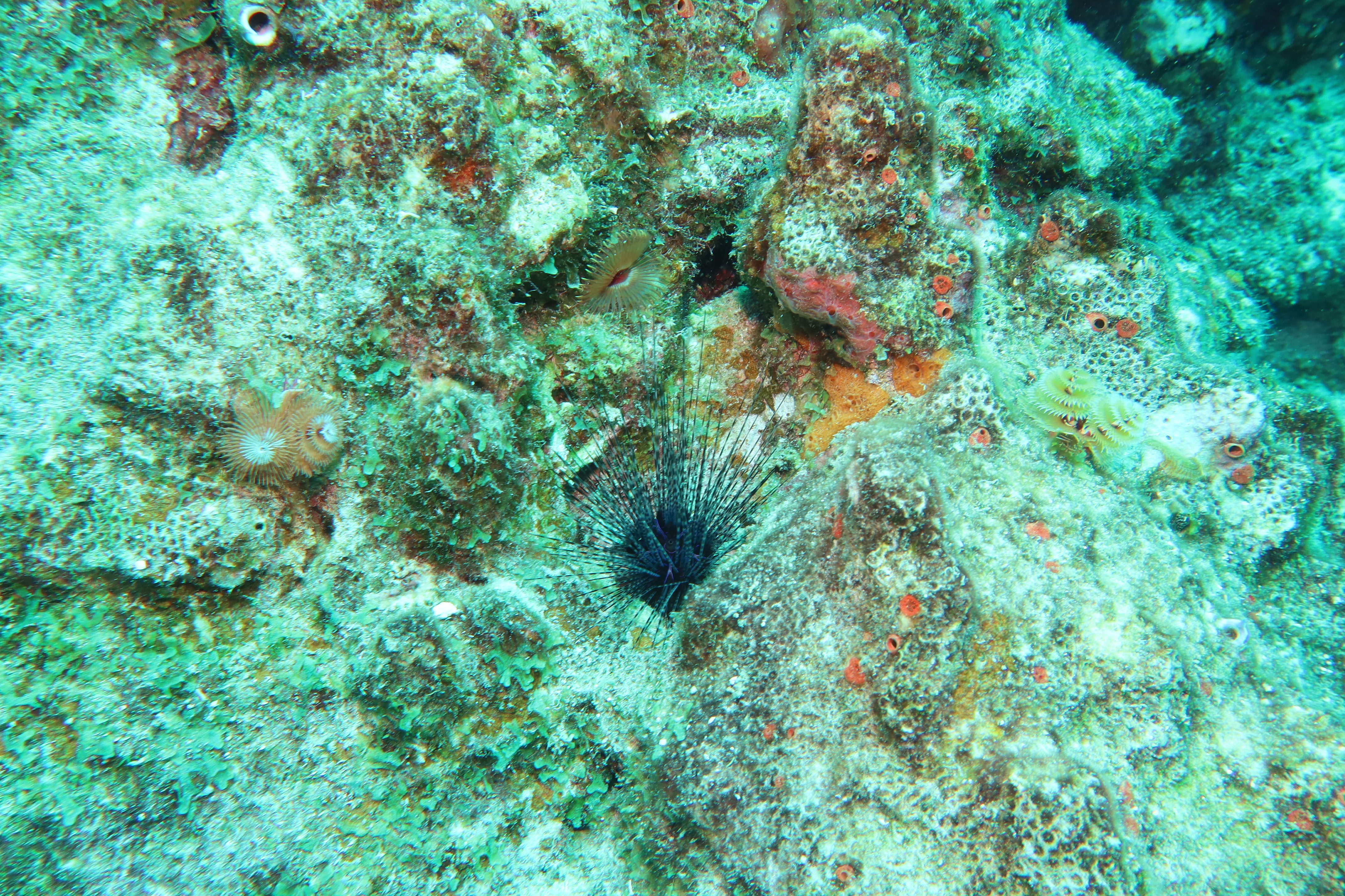 The first stop was Small Wall, which Alex said was his favorite. We swam up and then back down part of the wall. The coral looked very healthy here and we were pleasantly surprised at the number of different fish we saw. The boat took us back to Ocean Encounters for a short time and then we headed out for a second dive at Shipwreck Point. There you could see a few pieces of long lost ship parts, including a propeller and anchor. There used to be part of a ship as well, but has been moved to be part of the Underwater Aquarium.