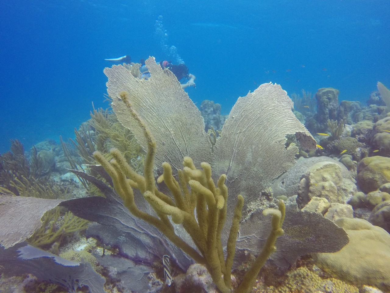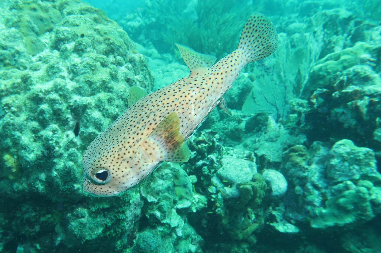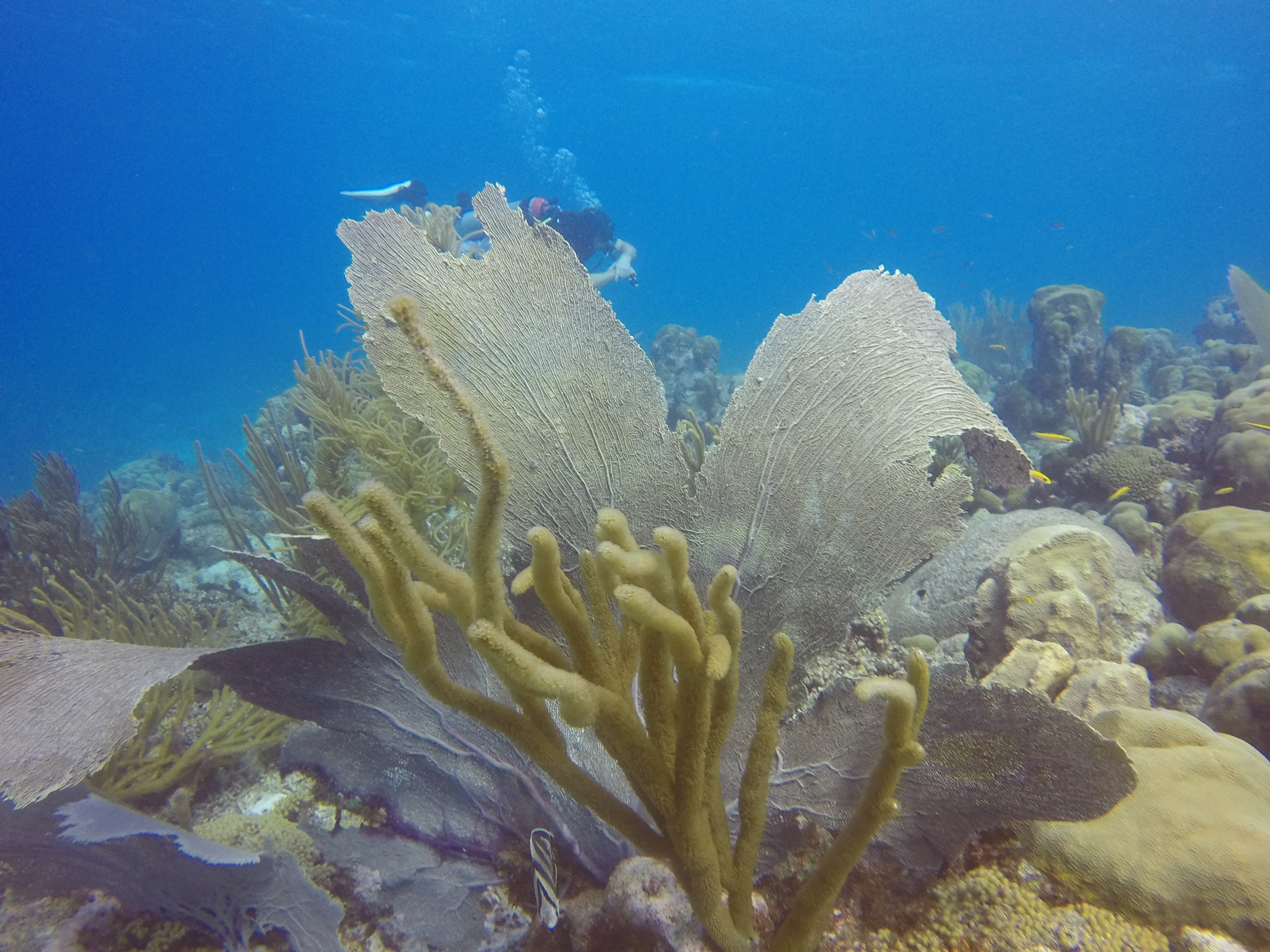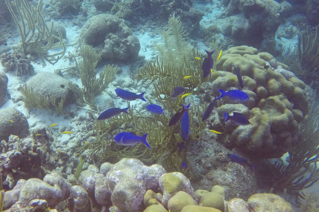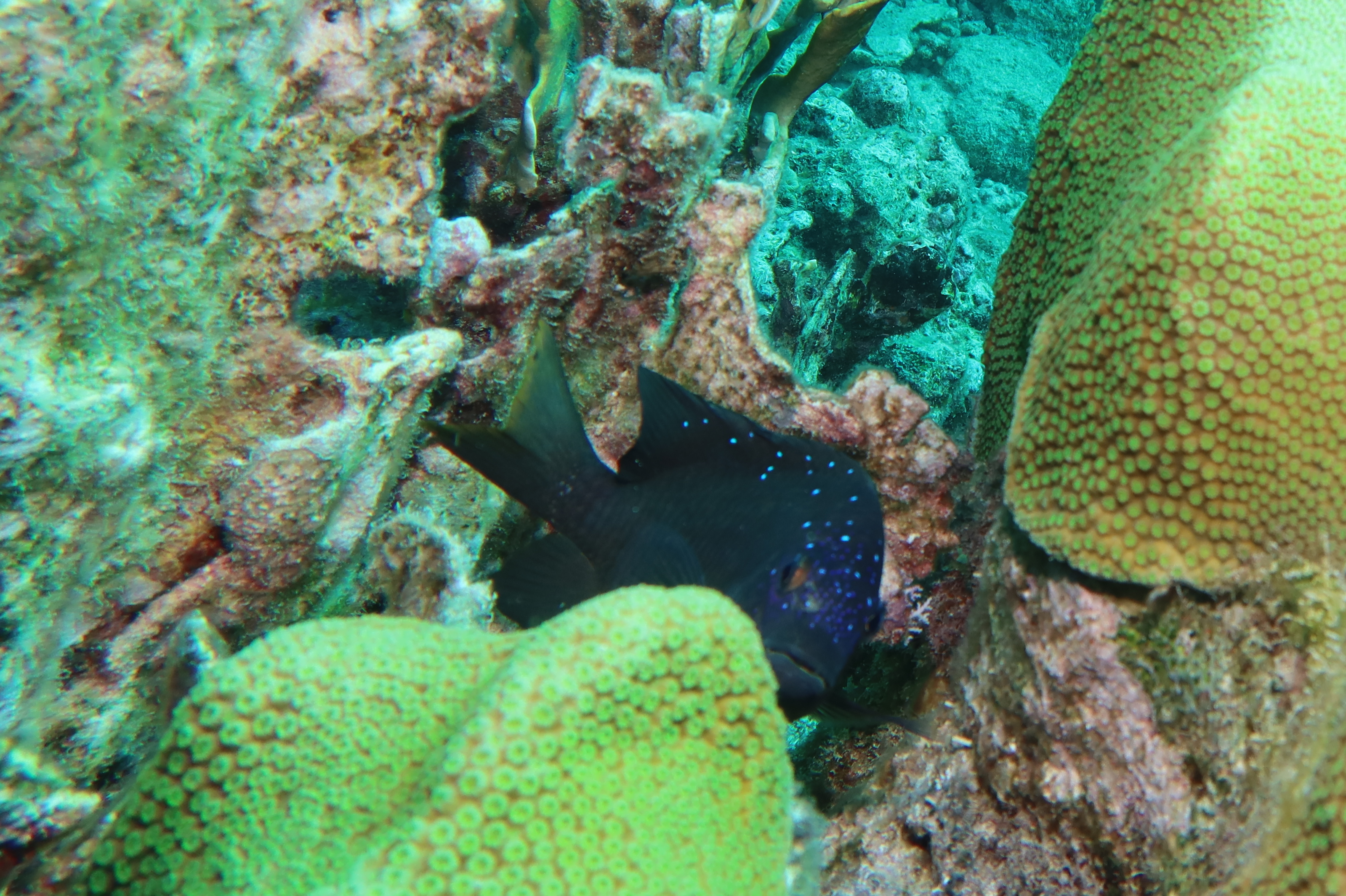 We had two dives - Smokey's and Newport. Both were near the south end of the island, beyond where anyone is settled, so the coral is healthy and underwater is pristine. The visibility this week has been OK - not the greatest, but you can still see quite a ways. There was rough water and extra wind last week that had everything stirred up. Today we saw a little bit of everything. Mike saw a red fish with white spots on both dives - he got a picture of it at one point but the DM couldn't ID it and it wasn't in the fish book. We also saw a very large southern sting ray that was resting on the bottom. It watched us all swim over it but didn't move. It was easily 6ish feet long but partially buried in the sand. That was quite the highlight. We also saw a Princess Triggerfish a ways off, a couple different adult drums, some Flamingo Tounges (snails), and the list goes on & on. Both dives had so much different life in them, they were really impressive. Back on shore, we had to go to the desk to get a partial refund from the night dive (as it was changed from a boat dive to shore dive) and we used the credit to buy lion-fish-fin earrings for Greta. That's now 87 dives for each of us.
