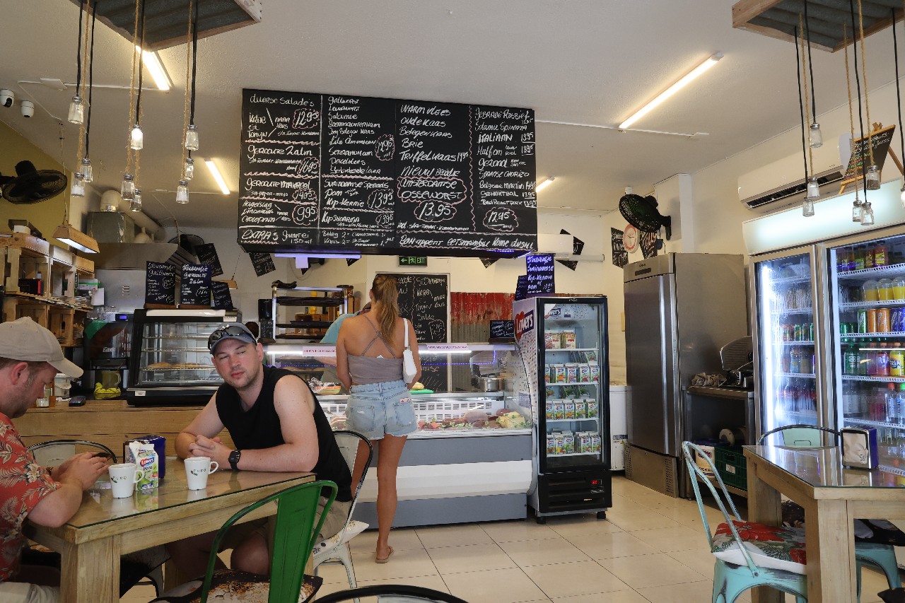 Valentine's Day & our last full day on the island. We headed out for breakfast. The first place we stopped at was a pick-up place only (no seating) so we opted to try Mijn Broodje just down the road. What a find that was! It a little sandwich shop that was VERY Dutch. All the menus on the walls were in Dutch, so Mike handled the ordering. Greta had a roast-beef and hard-boiled egg sandwich with OJ. Mike had a chicken curry sandwich with coffee. The freshly-made bread was amazing, and made wonderful sandwiches. If we would have found this place earlier, it would have been hard not to go every day!