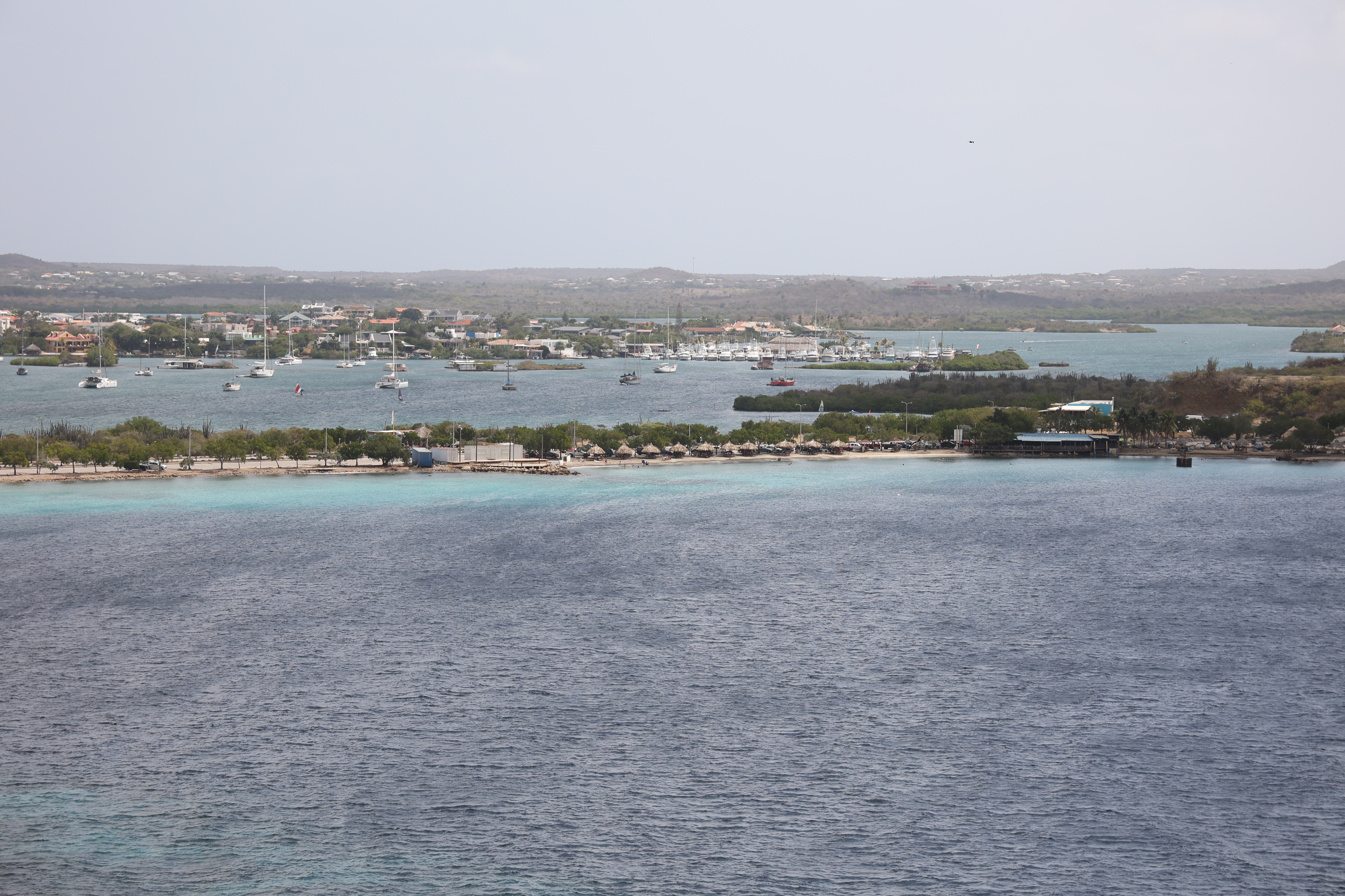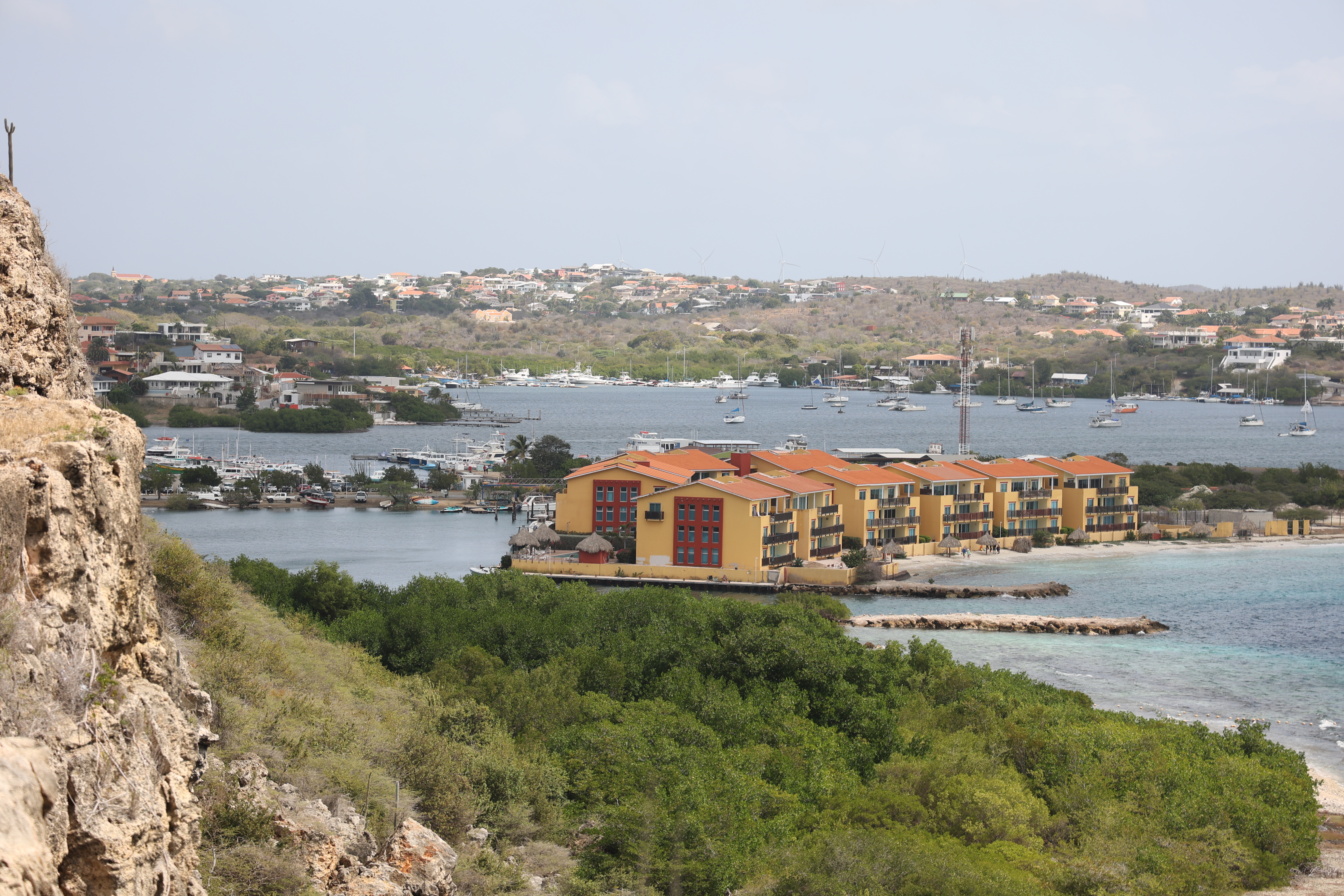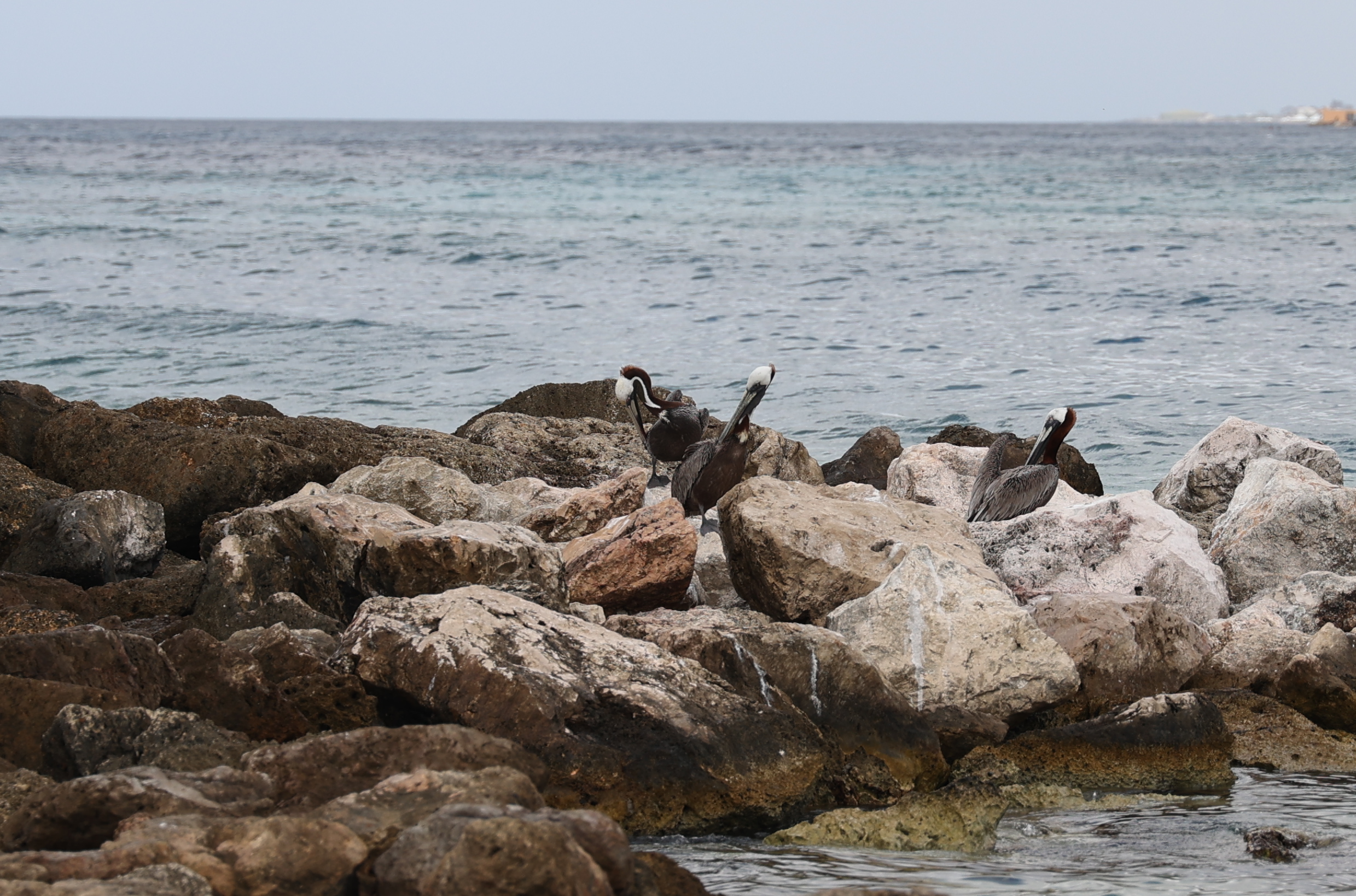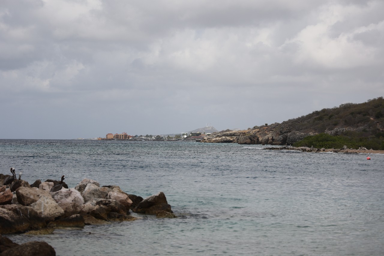 After that, we wanted to try drive the southern part of the island. Our first stop was the beach town of Jan Thiel. We walked around at the beach area for a bit and got some pictures of pelicans on the rocks. Our next plan was to drive to the area of the Sandals Resort, and the cities of Santa Barbara and Newport. This did not turn out very well. The Sandals resort area had a guard shack that wouldn't let you through if you weren't staying there unless you paid a $25 fee. The fee was reimbursable if you ate at one of the restaurants but we'd just had breakfast and weren't really interesting, so we thought we'd bypass that. But as far as we could tell, both Santa Barbara and Newport were only accessible by private roads. We'd read that a lot of the island was privately owned but didn't realize that extended to the cities.