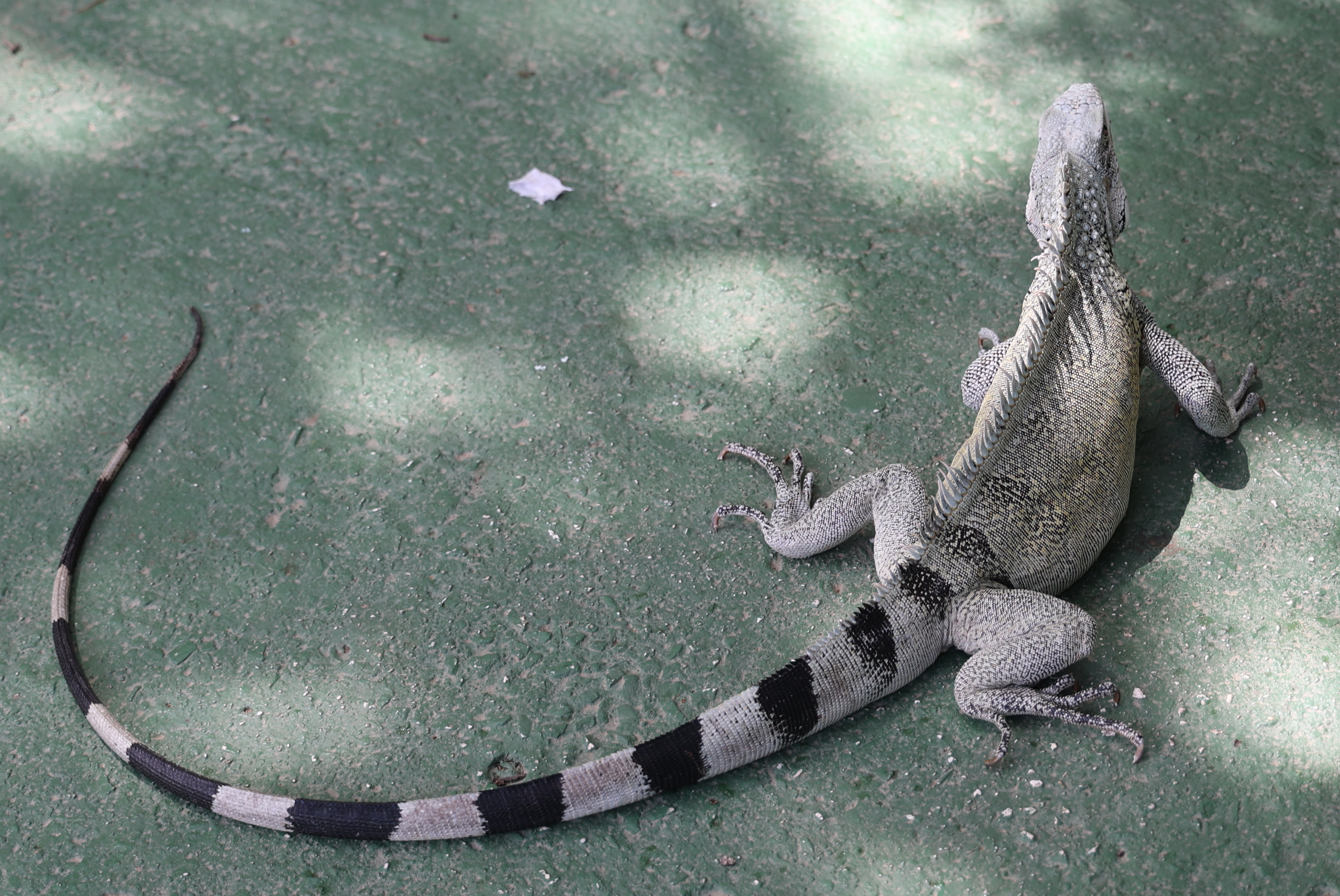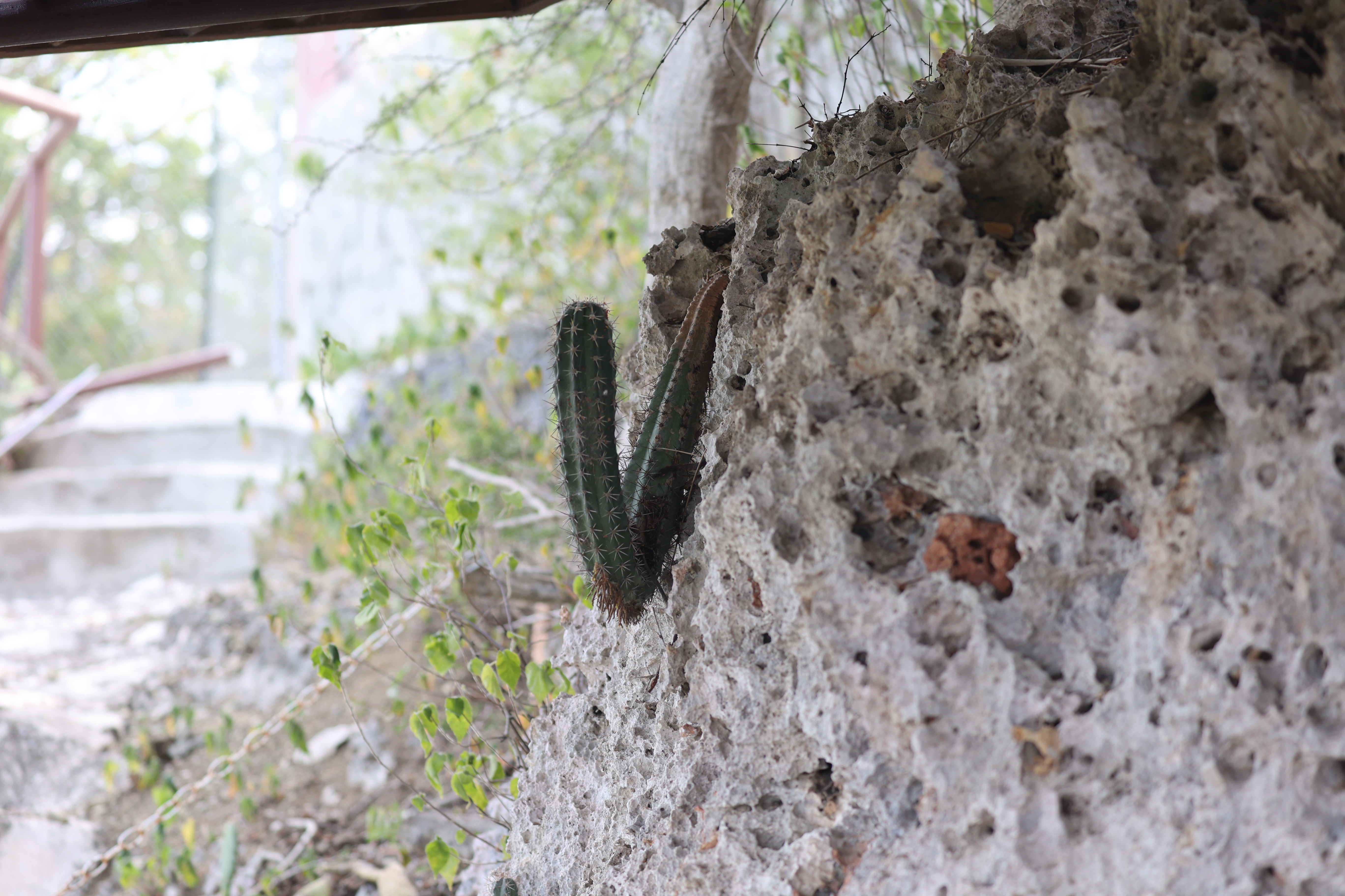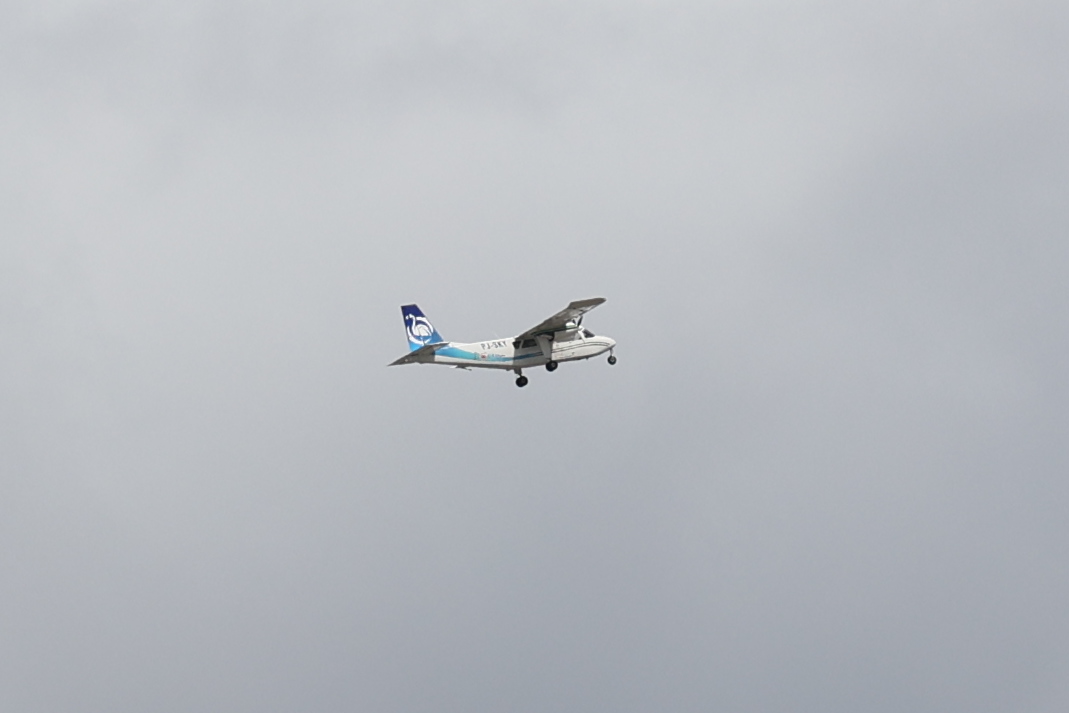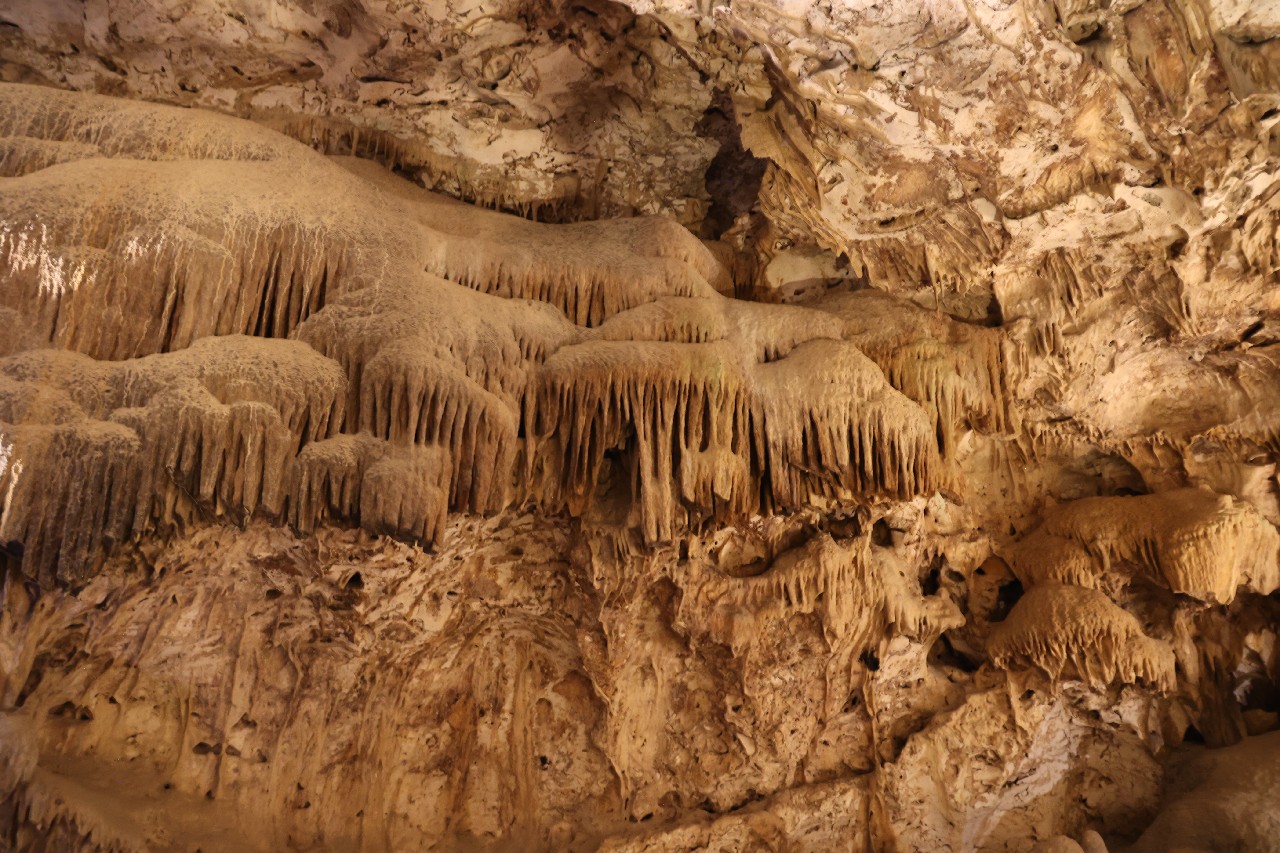 We bought tickets for the next tour and were fortunate that it was starting in 10 minutes. Right in front of the bathrooms we FINALLY got to see a big iguana. We've been surprised we haven't seen more of them, but this guy was beautiful. The tour started and we went up a number of steps to get in. Because it's all above ground, it's not as cool as underground caves we've toured before, and they had fans running throughout the tour to help with the ventilation. The cave itself is actually several miles long but the public tour is of course just a small part of that. Right after entering, we saw a colony of bats hanging from the ceiling, and sometimes we'd see one flit past. We walked through various "rooms" within the cave, including the "fantasy room" were the guide pointed out various rock formations that could be imagined to be something else, including a witch, a donkey and the Virgin Mary. It was very interesting and a very different view of the island than what we'd seen so far. Also including in the ticket price was a self-guided "Indian Walk". It was a nature trail with numbered markers next to various plants and rock formations, and you could download a guide that explain each item. After we got back to the car, we drove across the road, and were able to watch some planes taxiing after landing and took some pictures there as well.