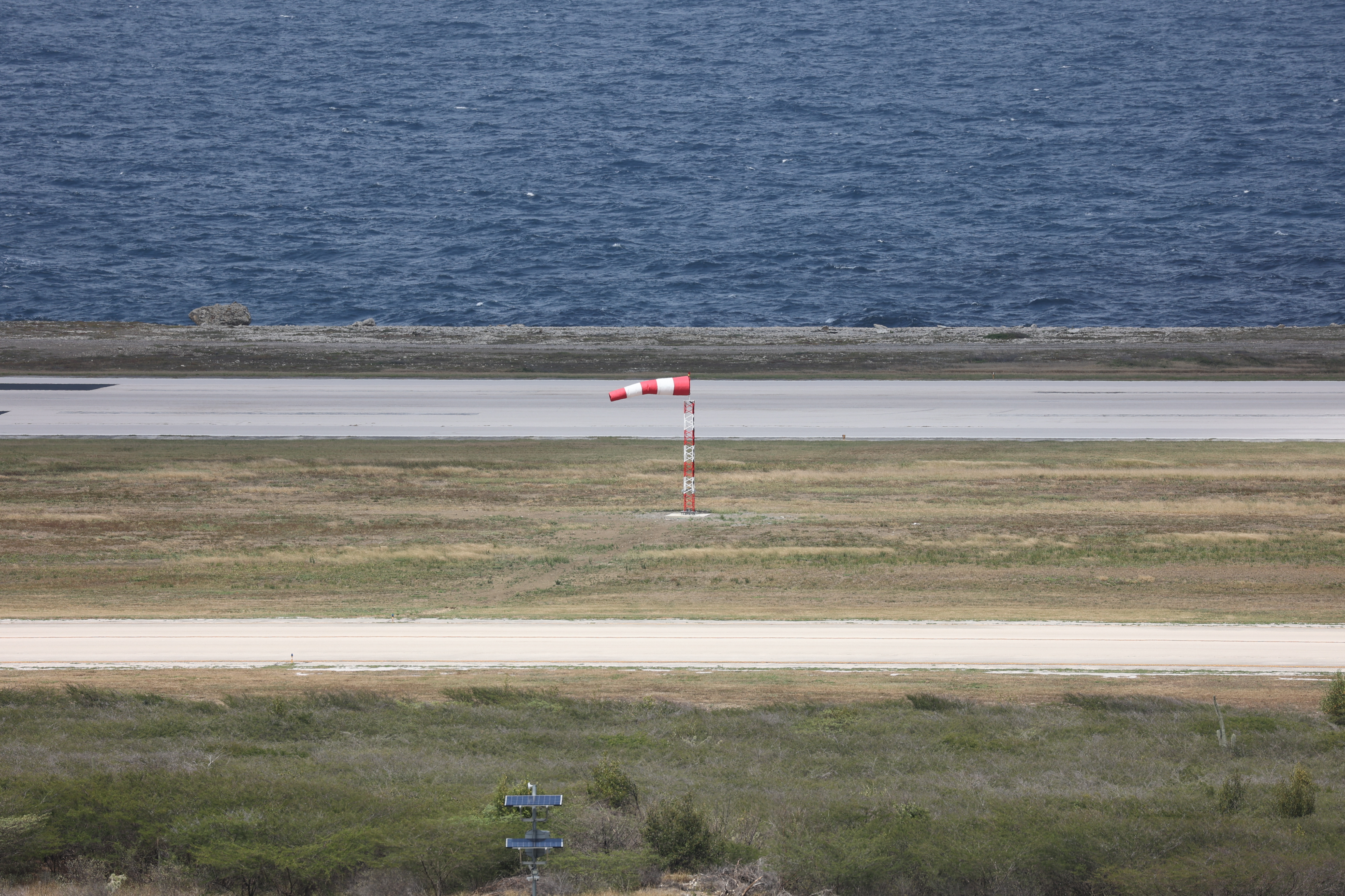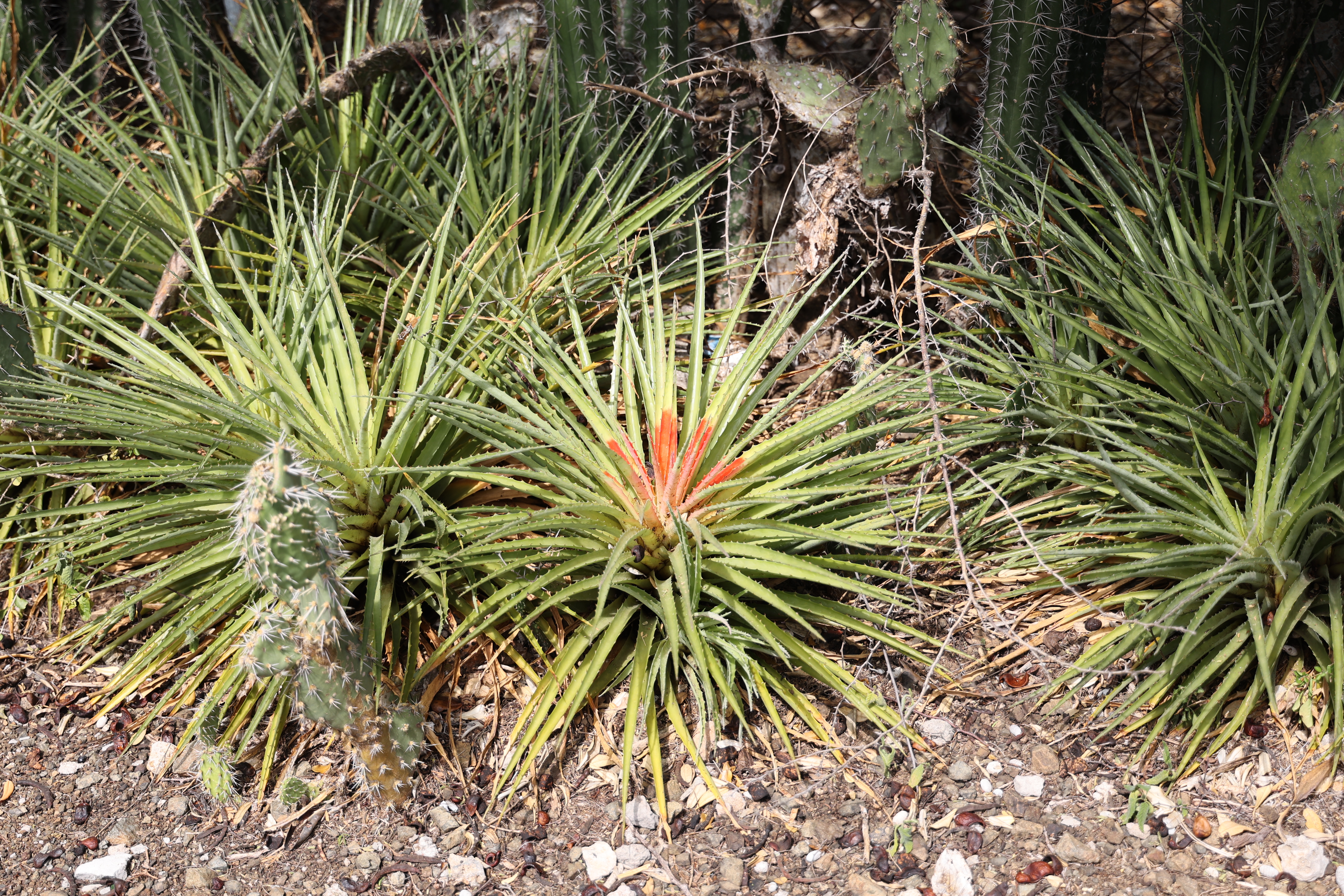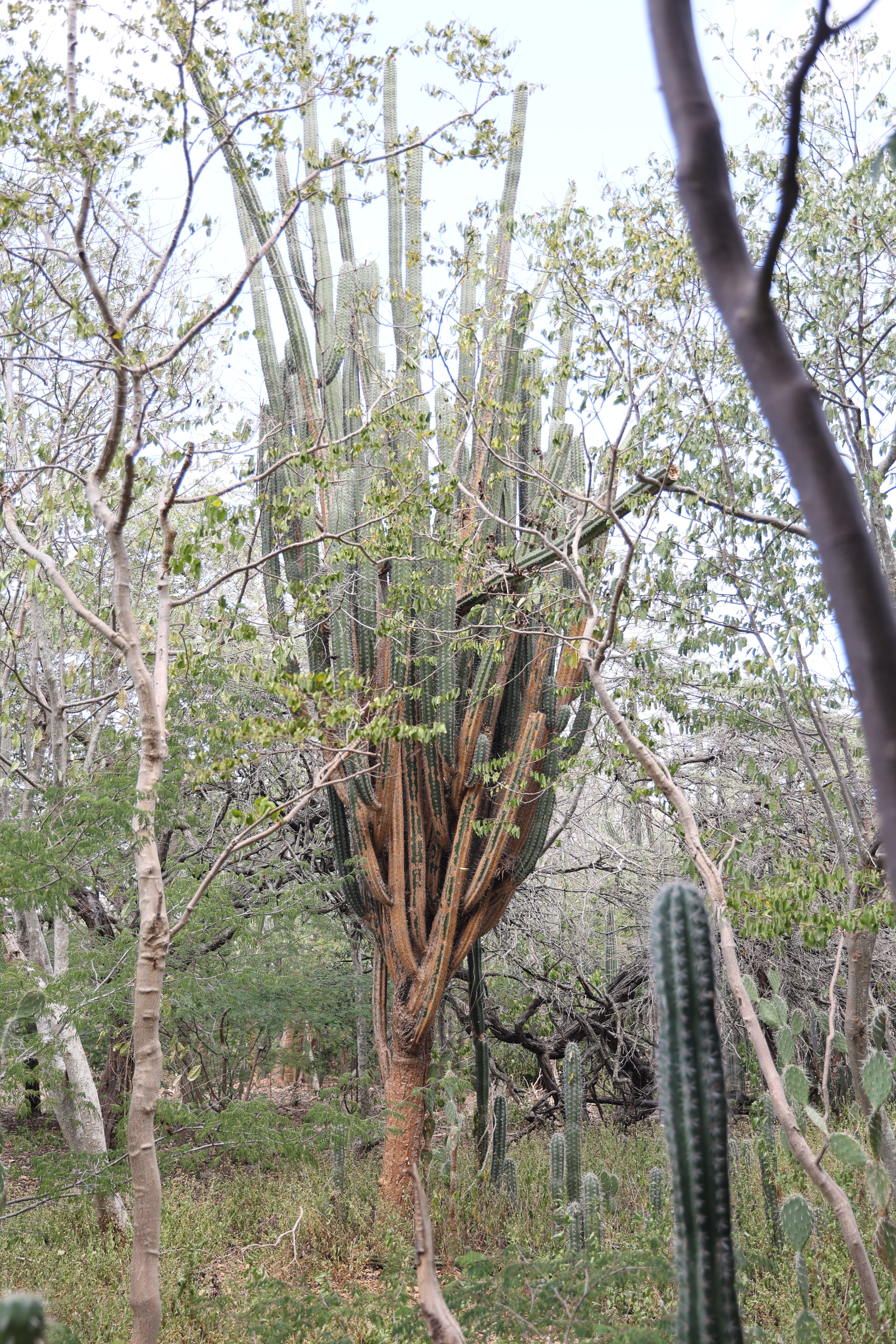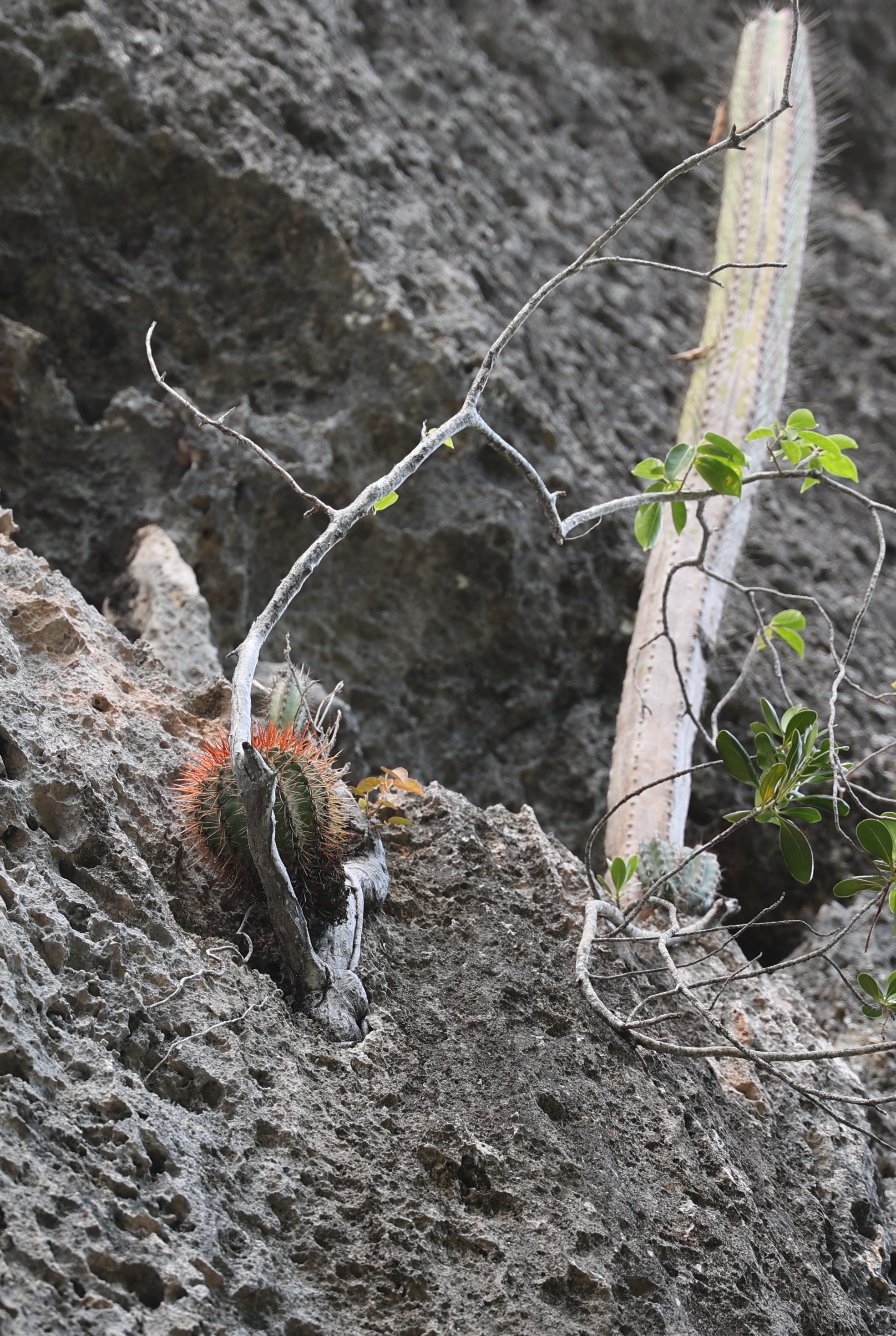 We bought tickets for the next tour and were fortunate that it was starting in 10 minutes. Right in front of the bathrooms we FINALLY got to see a big iguana. We've been surprised we haven't seen more of them, but this guy was beautiful. The tour started and we went up a number of steps to get in. Because it's all above ground, it's not as cool as underground caves we've toured before, and they had fans running throughout the tour to help with the ventilation. The cave itself is actually several miles long but the public tour is of course just a small part of that. Right after entering, we saw a colony of bats hanging from the ceiling, and sometimes we'd see one flit past. We walked through various "rooms" within the cave, including the "fantasy room" were the guide pointed out various rock formations that could be imagined to be something else, including a witch, a donkey and the Virgin Mary. It was very interesting and a very different view of the island than what we'd seen so far. Also including in the ticket price was a self-guided "Indian Walk". It was a nature trail with numbered markers next to various plants and rock formations, and you could download a guide that explain each item. After we got back to the car, we drove across the road, and were able to watch some planes taxiing after landing and took some pictures there as well.