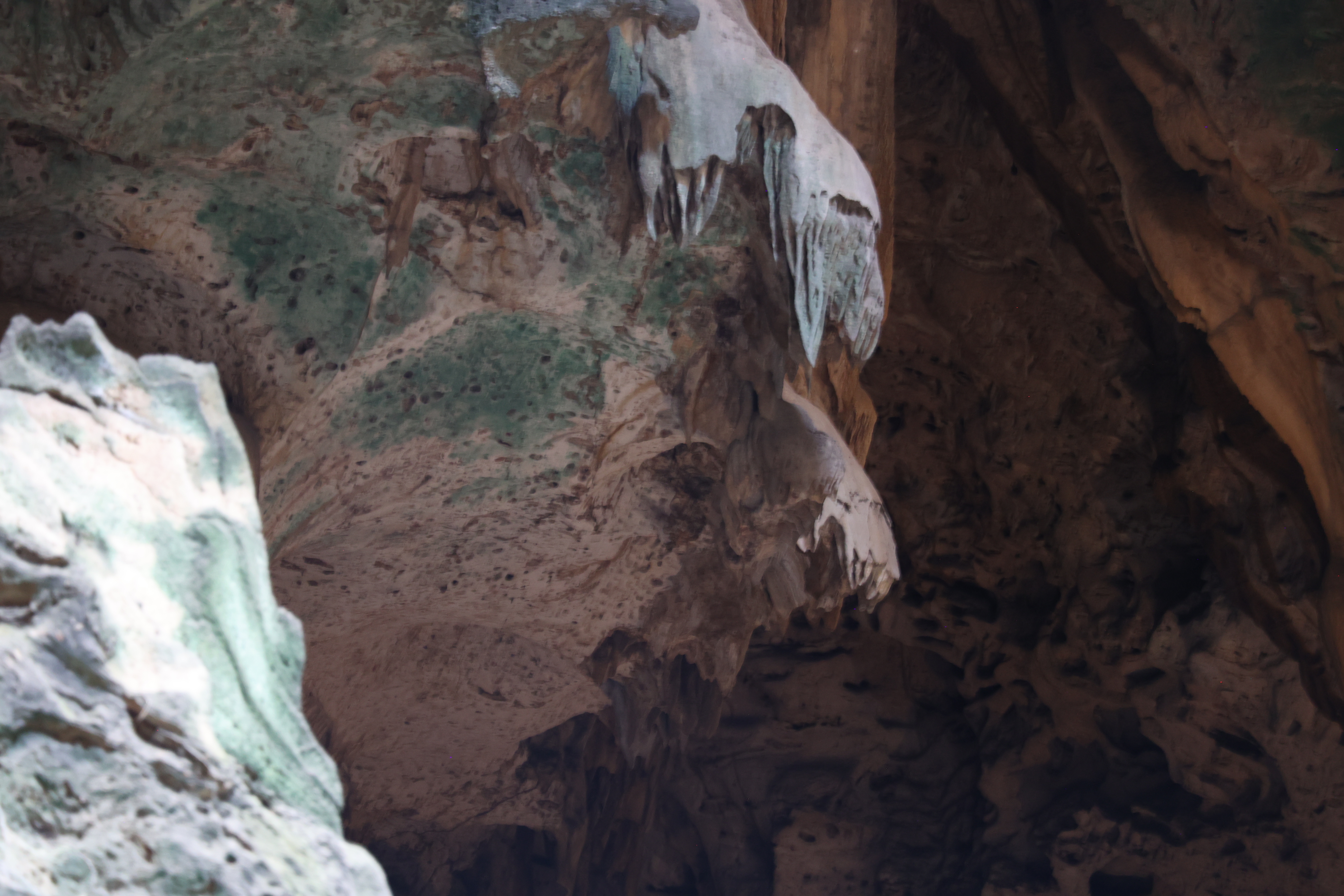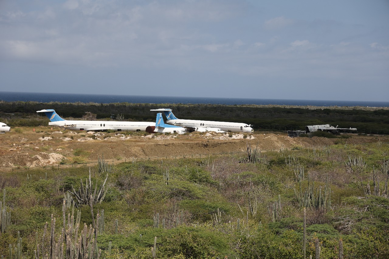 From there we attempted to drive around a bit, but it just seemed to be a maze of residential streets. Eventually we put Hato Cave into Google Maps which was near the airport. We'd assumed we'd be taken on a main road to the location for some reason, Google took us on narrow residential streets and even to a closed road. It was a lot of driving on tiny roads but eventually got to the cave. It's across the road from the far end of the runway, as well as a plane graveyard.